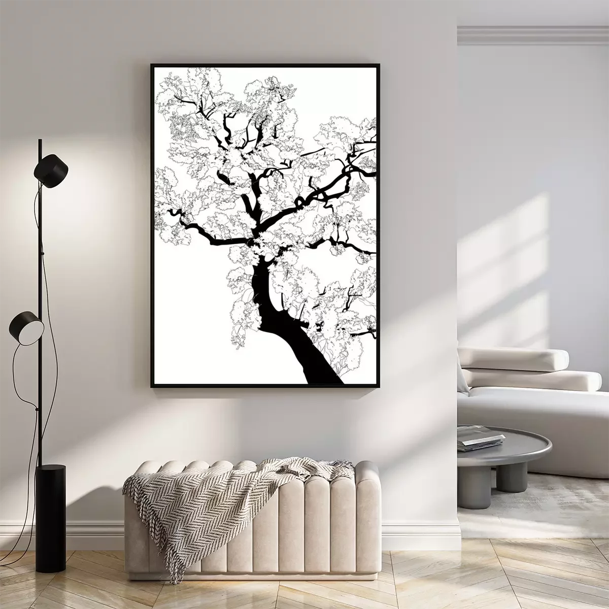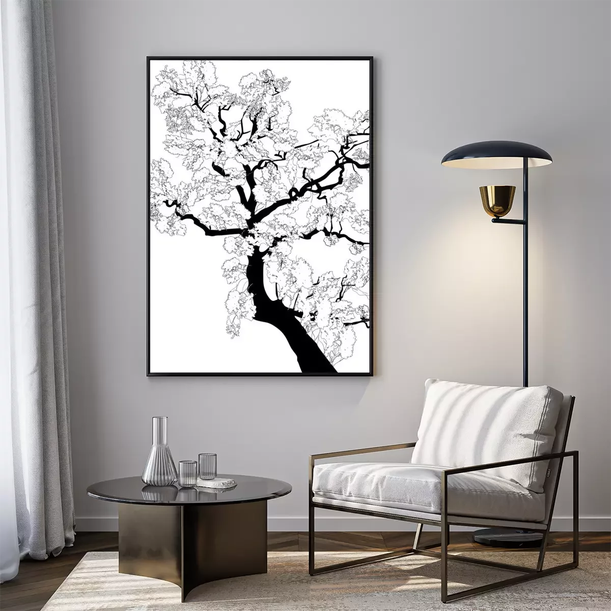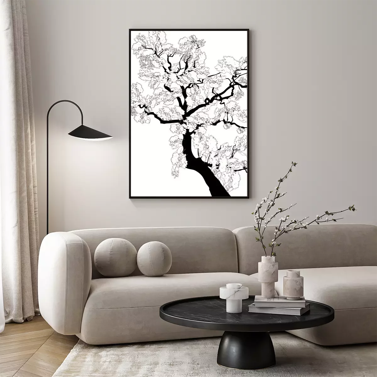 Poster: Zwart-witte grafiek met een tak van een boom