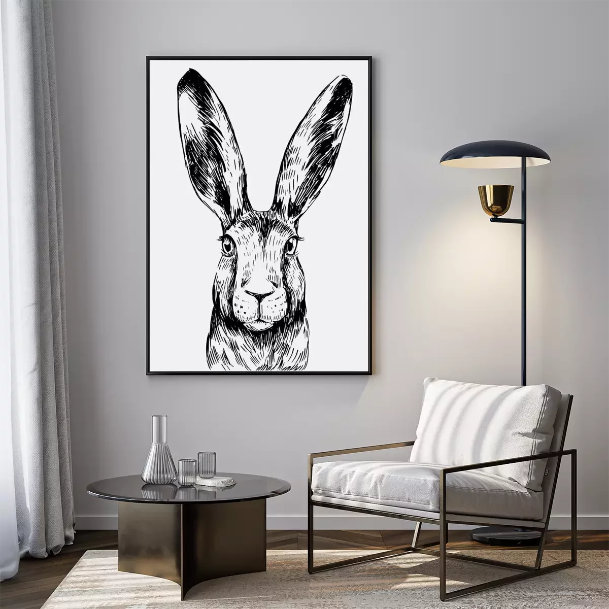 Poster Zwart-witte haas