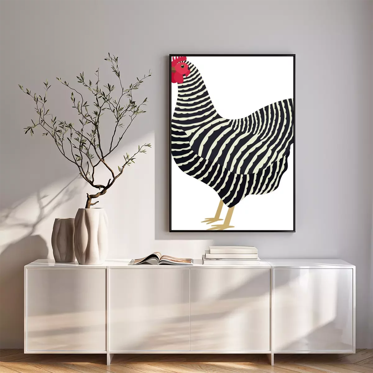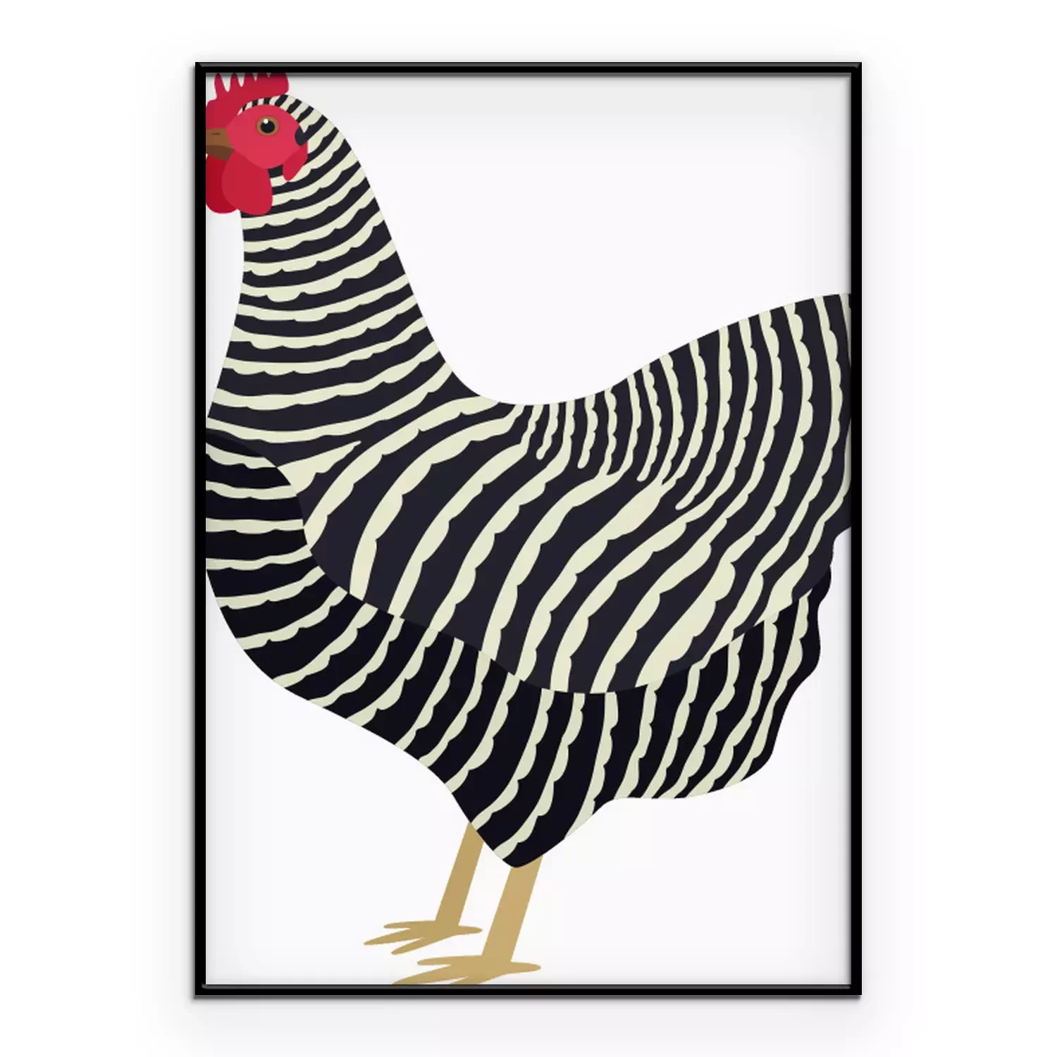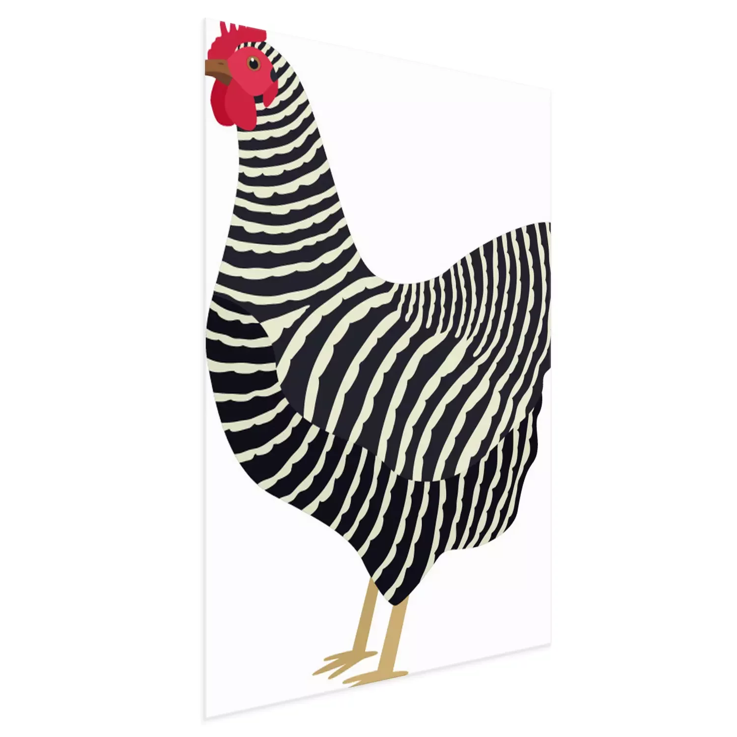 Poster: Zwart-witte hen met een rode kam