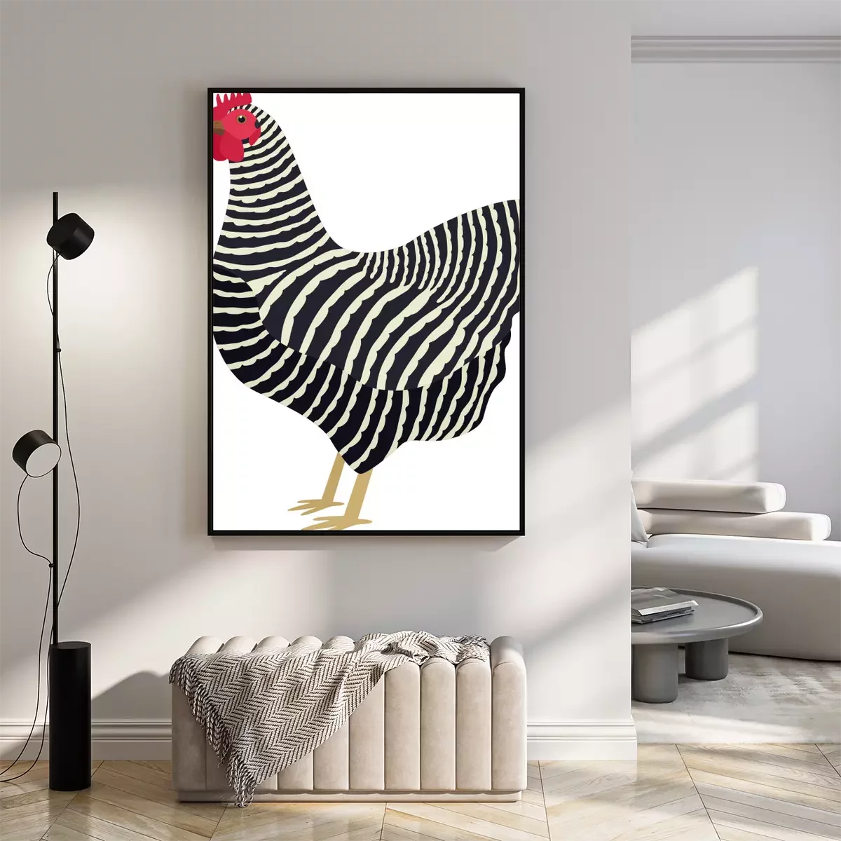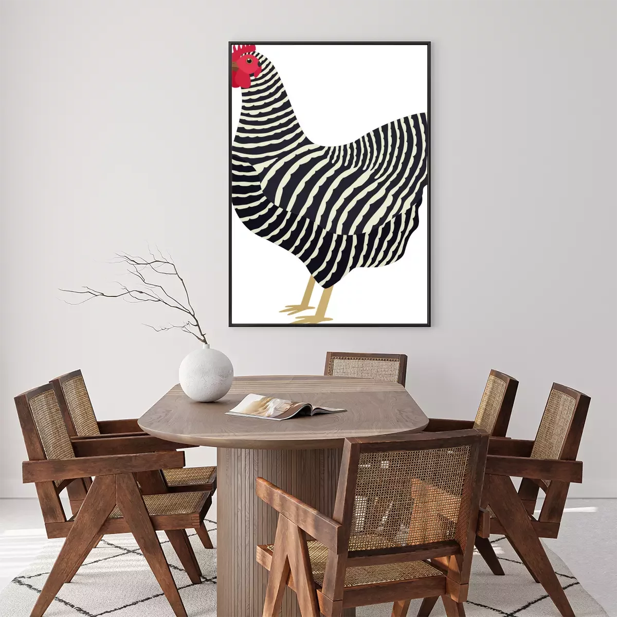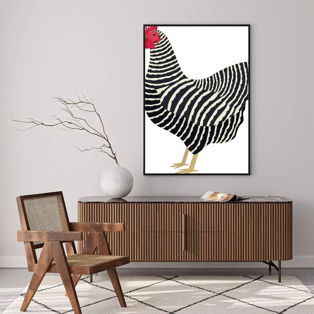 Poster: Zwart-witte hen met een rode kam
