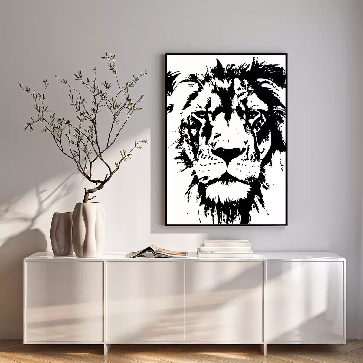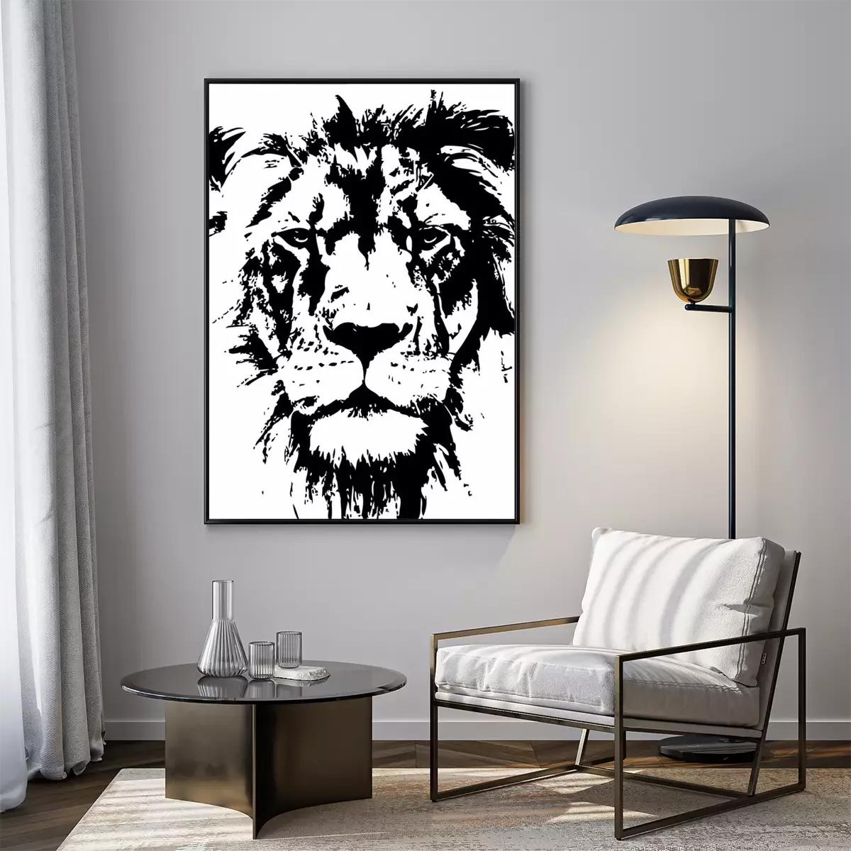 Poster: Zwart-witte leeuwenkop