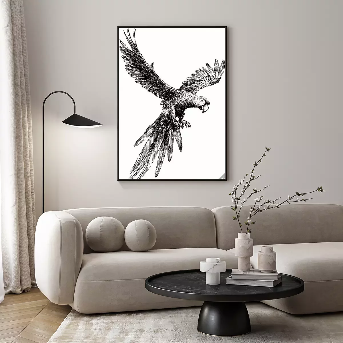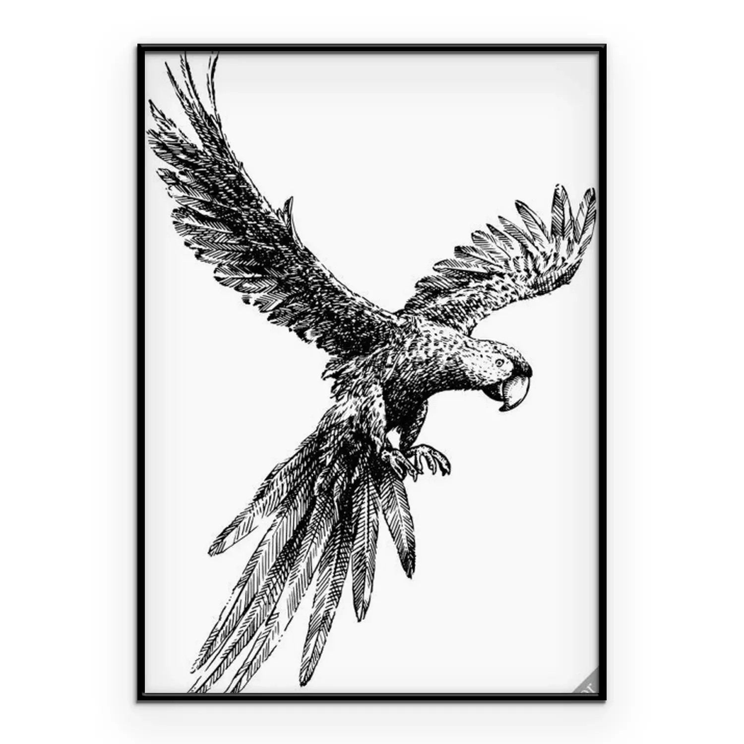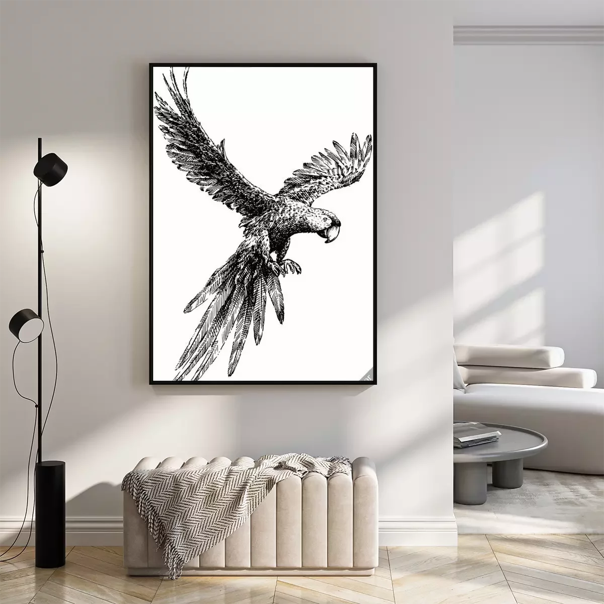 Poster: Zwart-witte papegaai tijdens de vlucht