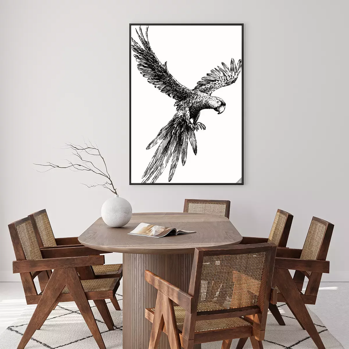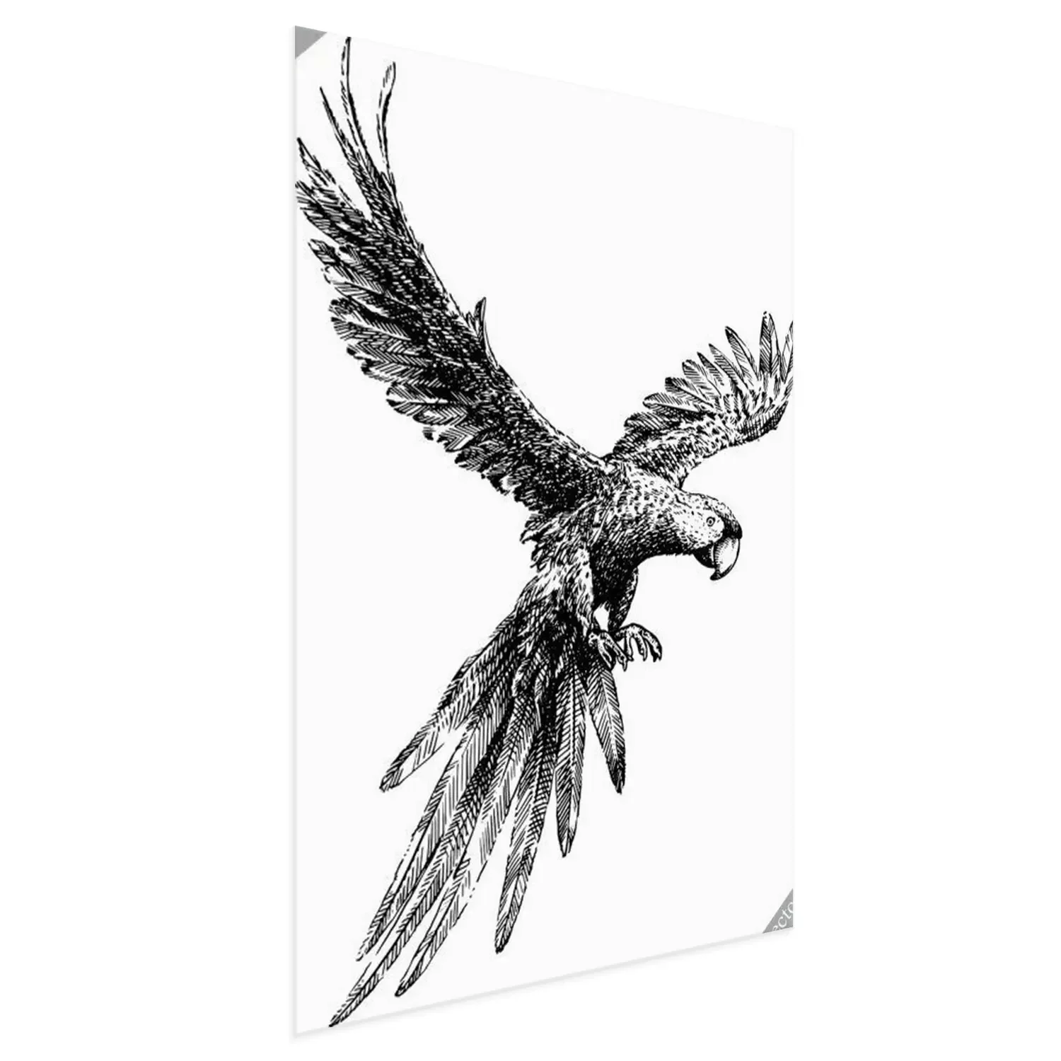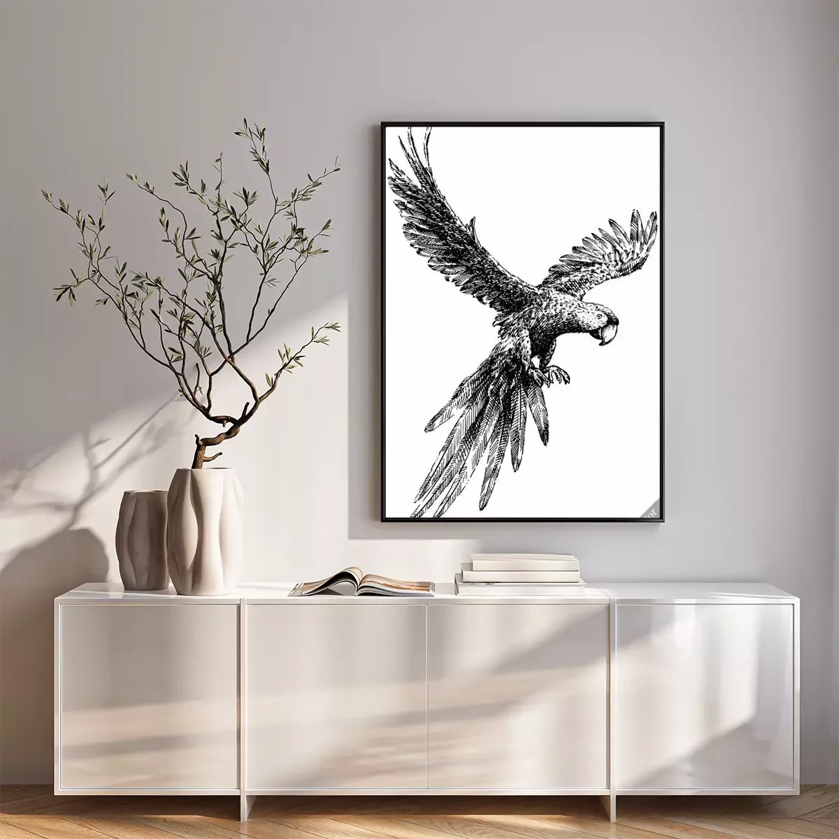 Poster: Zwart-witte papegaai tijdens de vlucht