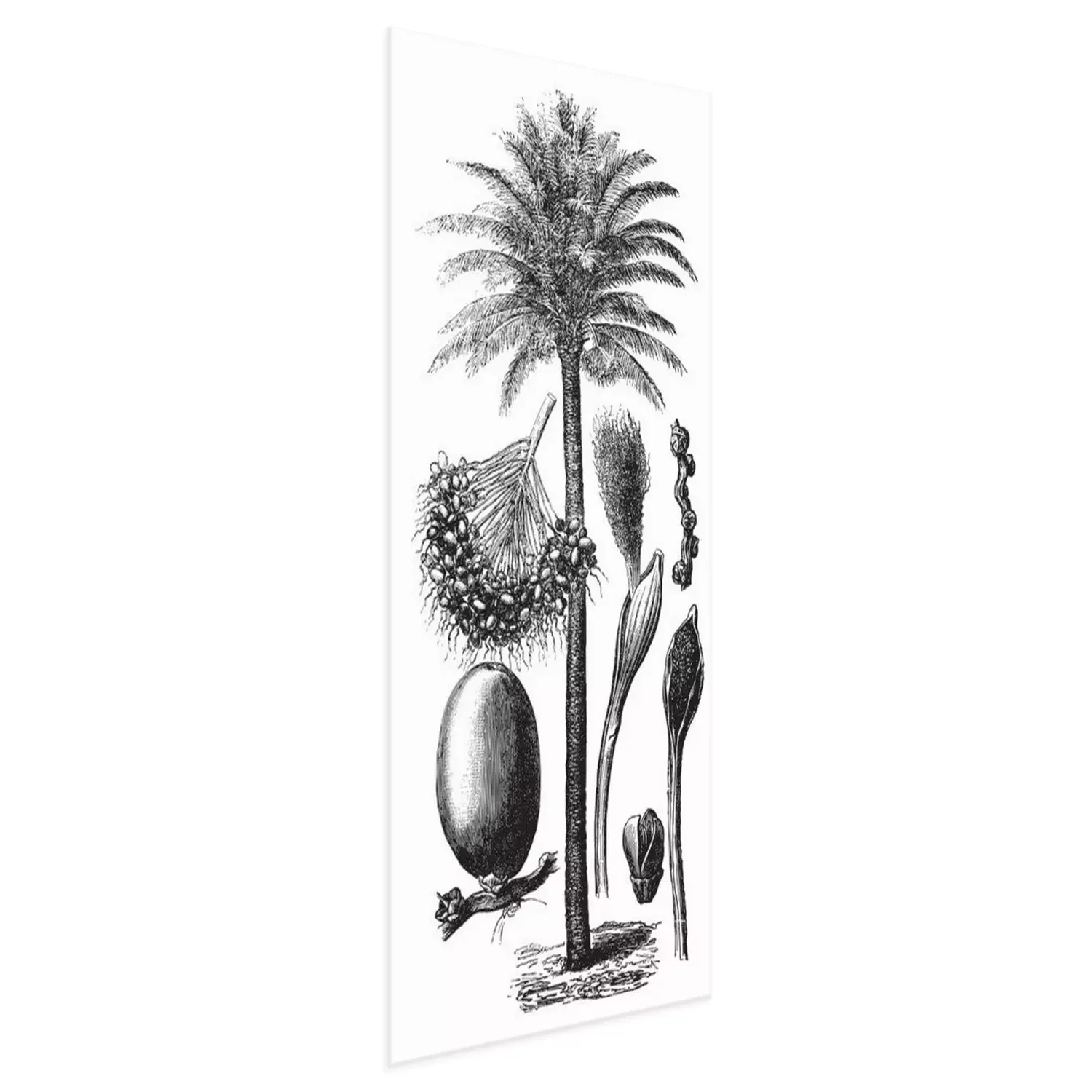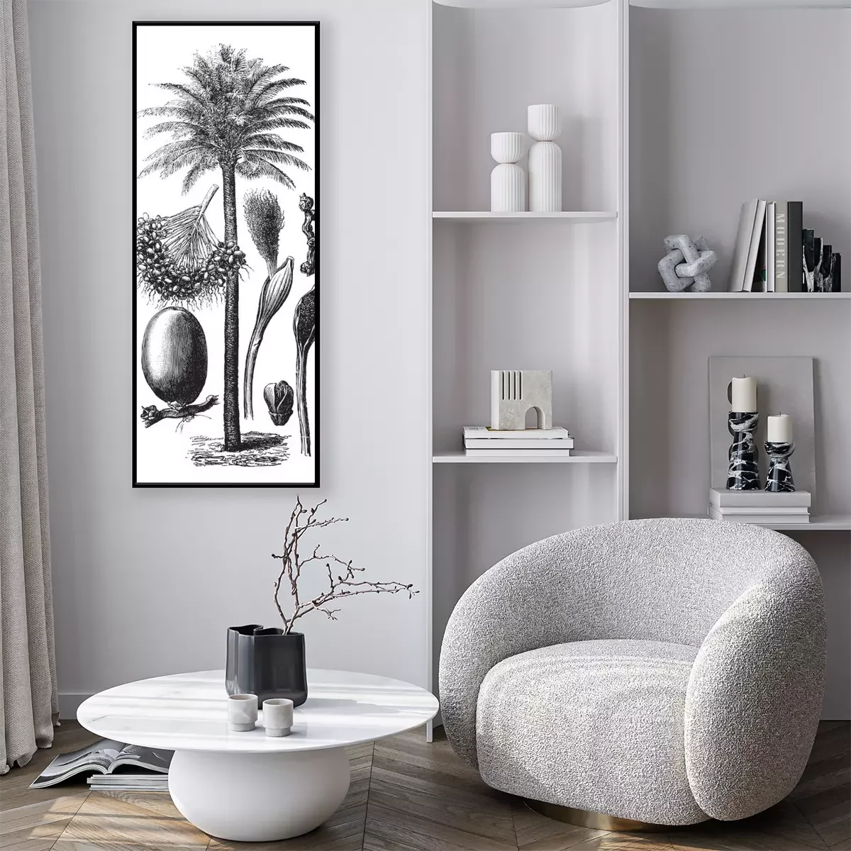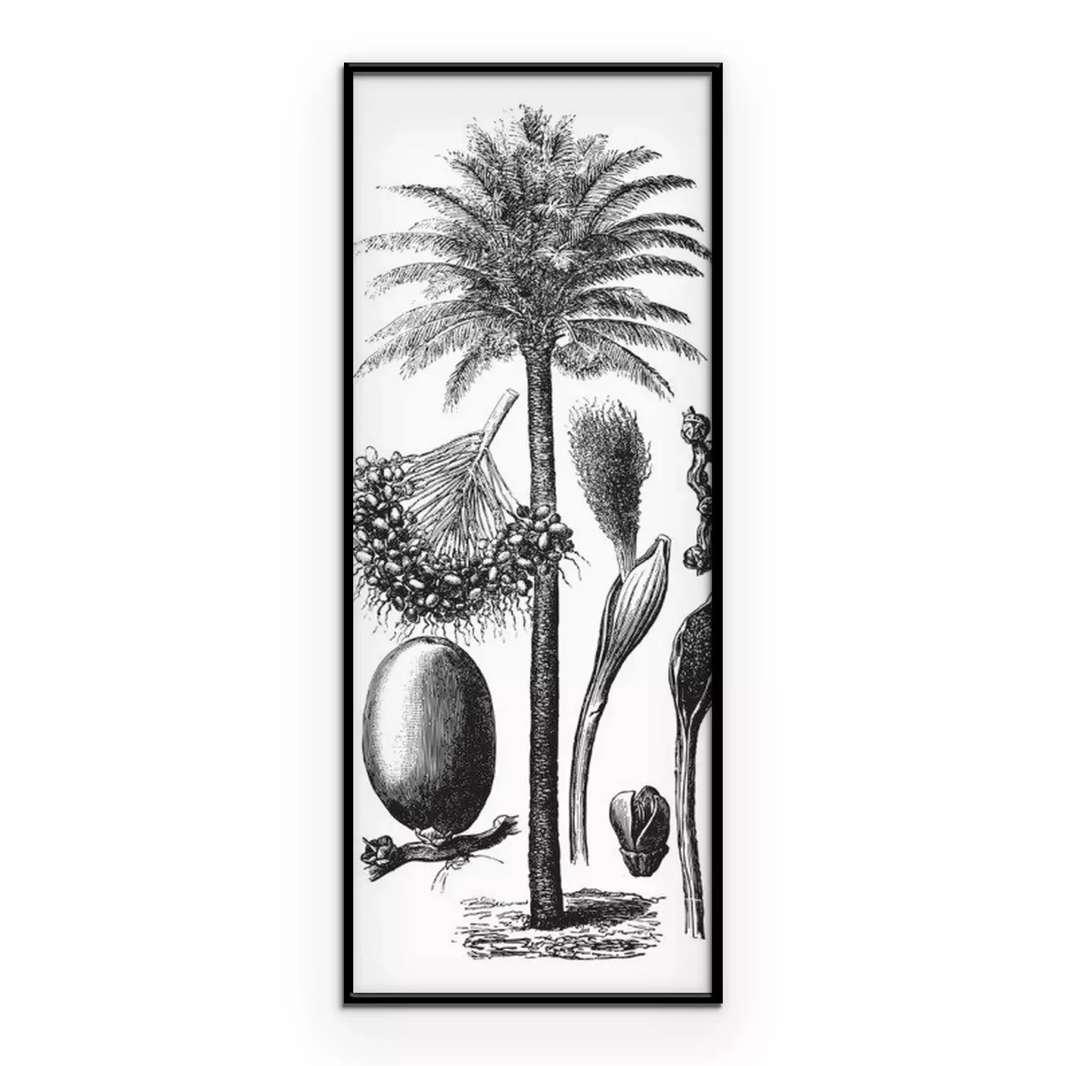 Poster: Zwarte en witte illustratie van een palmboom uit een atlas
