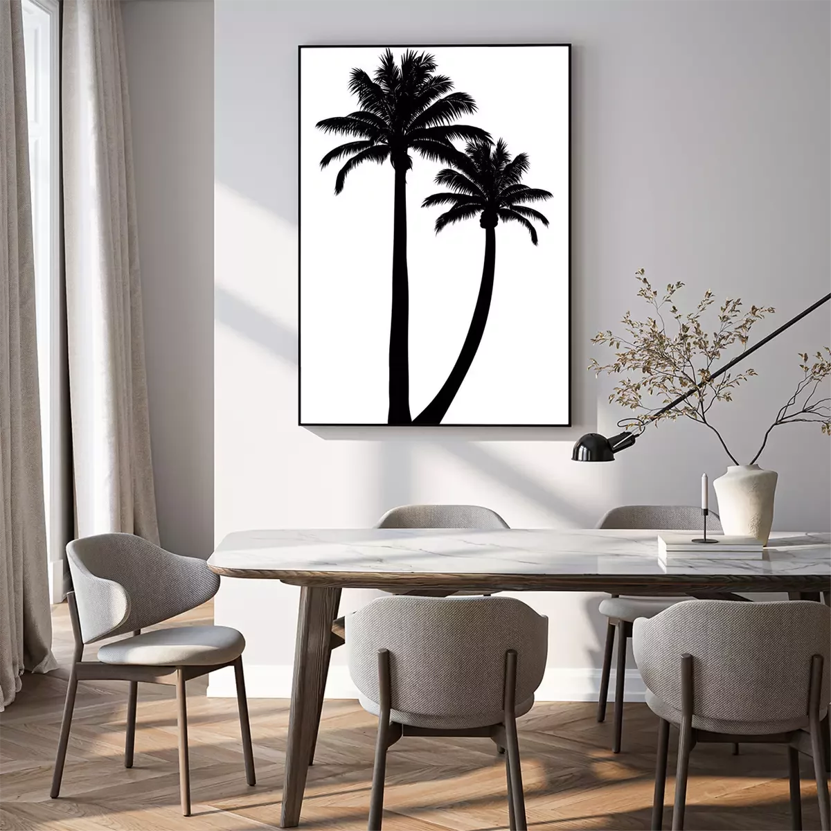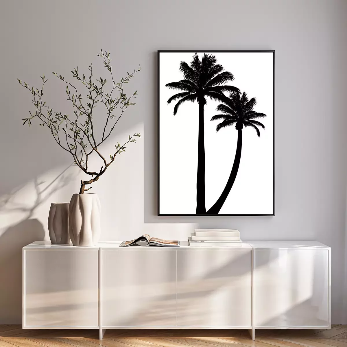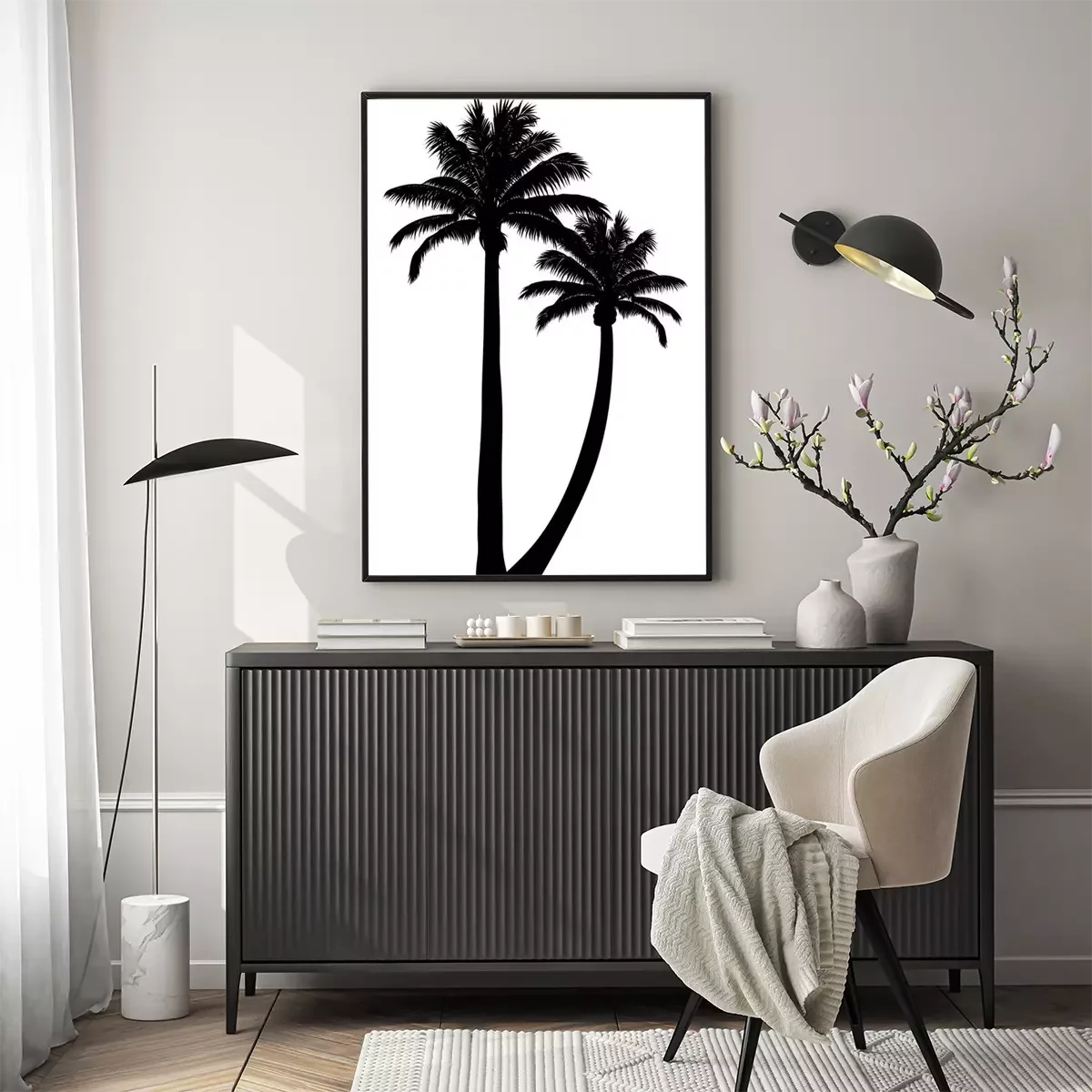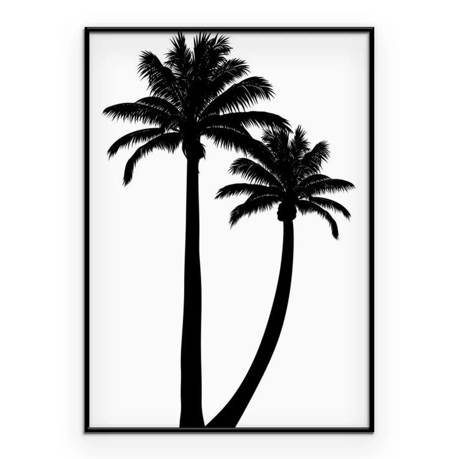 Poster: Zwarte palmcontouren op een witte achtergrond