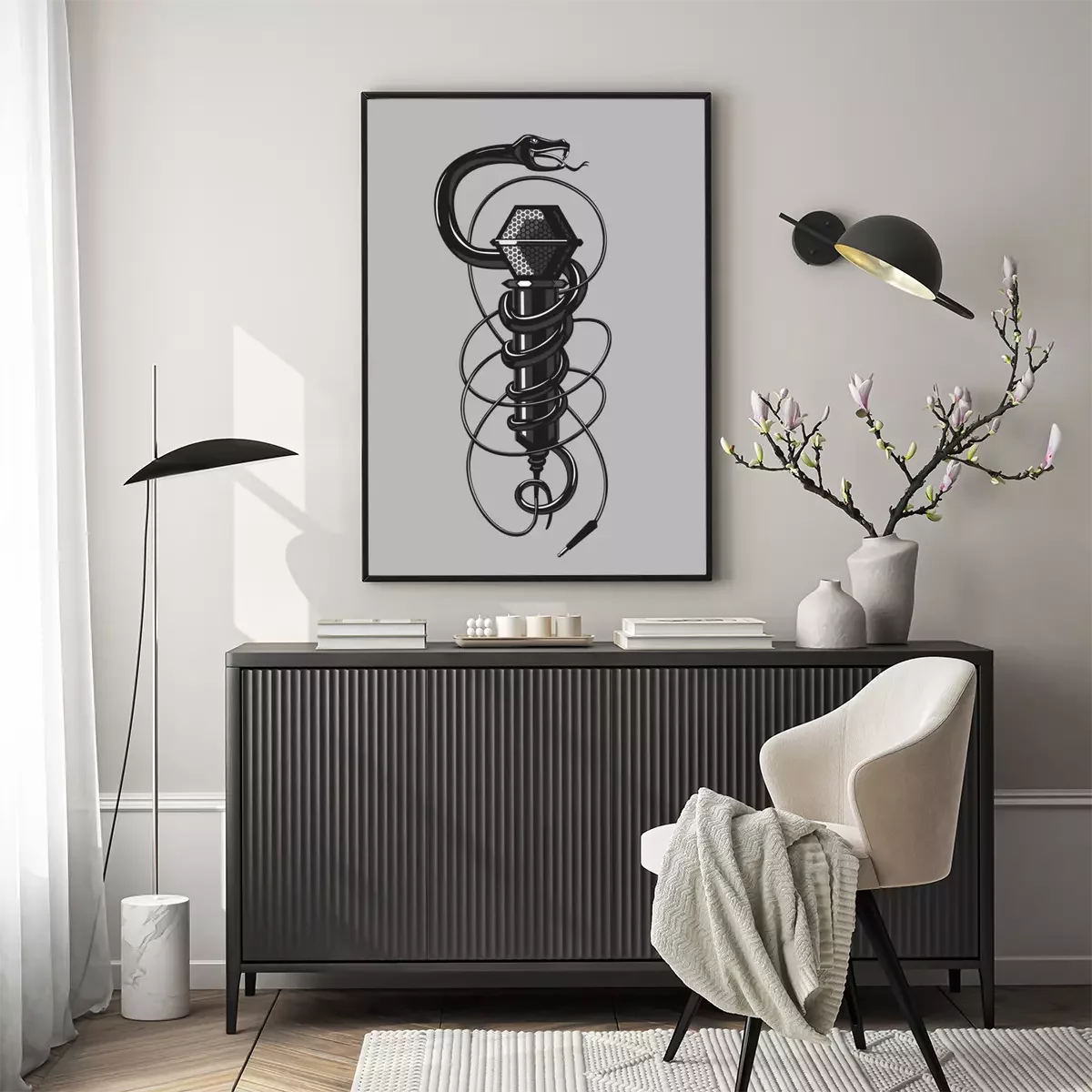 Poster Zwarte slang met een microfoon