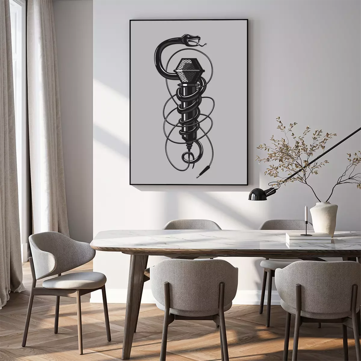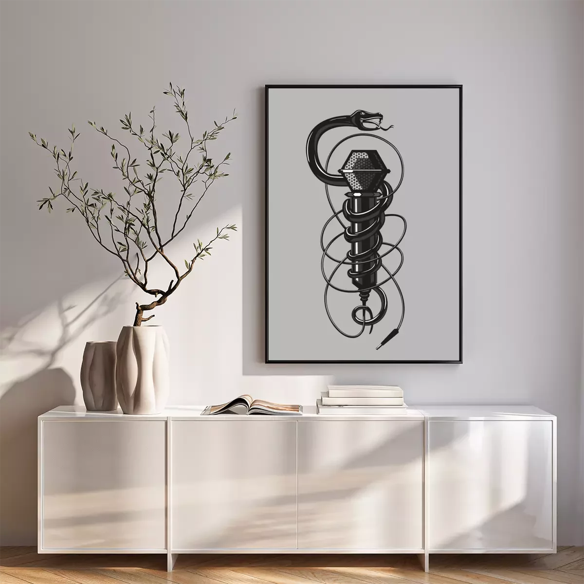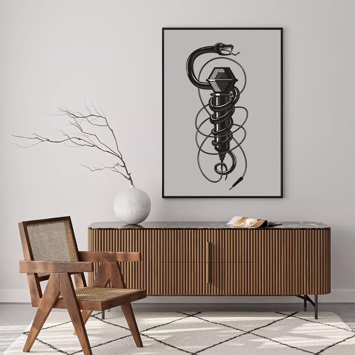 Poster: Zwarte slang met een microfoon