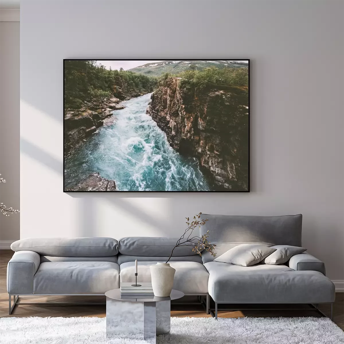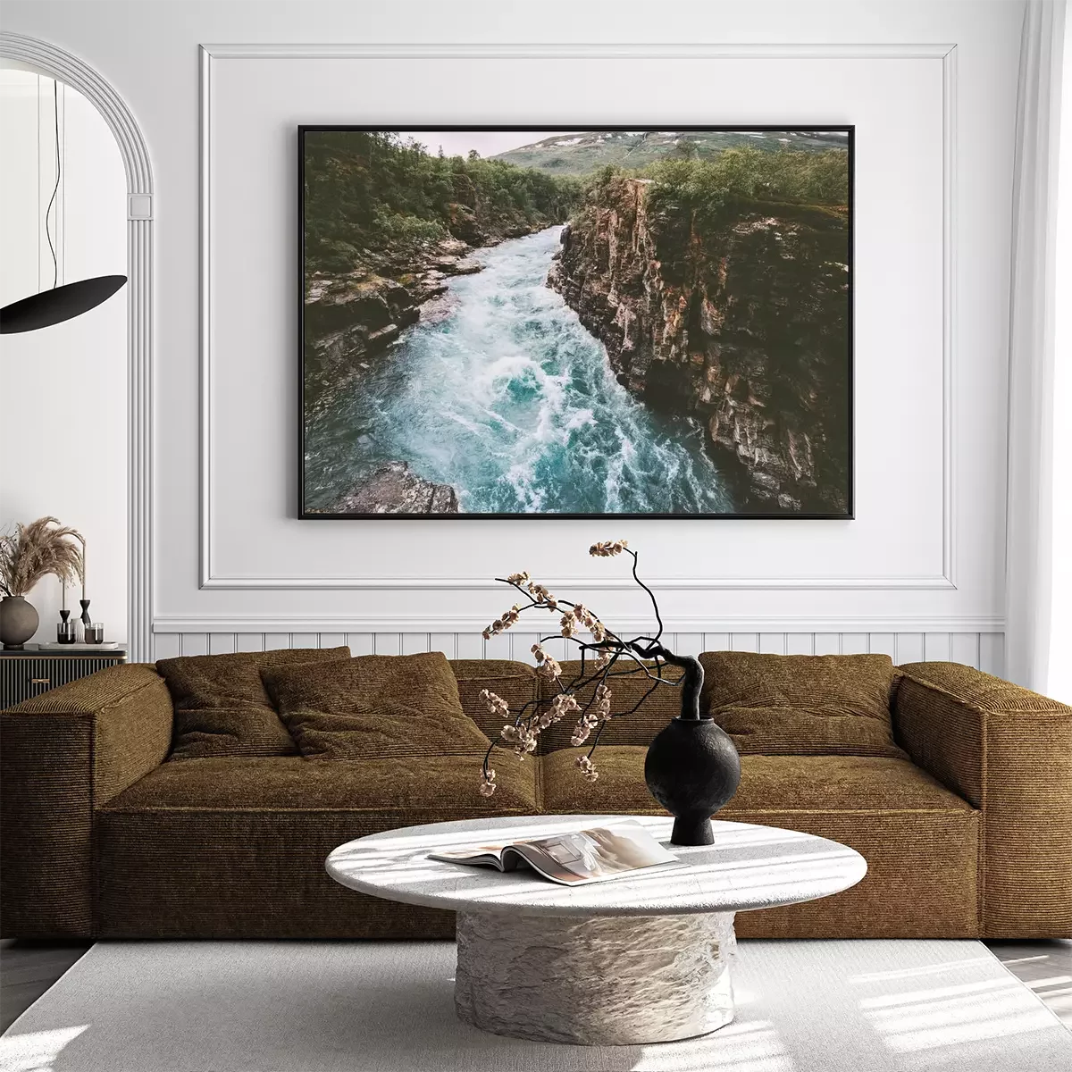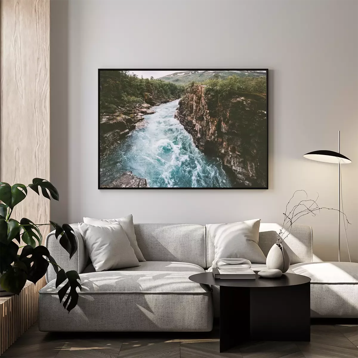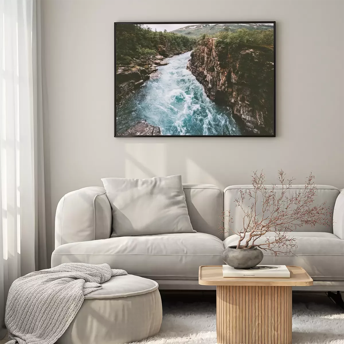 Poster: Zweden landschap canion rivier Abiskojakka reizen luchtfoto Abisko nationaal park wildernis natuur zomer Scandinavisch landschap