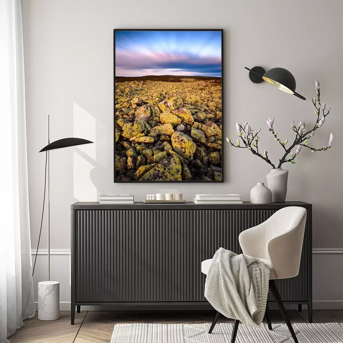 Deze posters zijn gedrukt in zeer hoge resolutie (1440 dpi) op papier van uitstekende kwaliteit. Het gebruik van HP Latex-technologie zorgt voor jarenlang levendige kleuren die bestand zijn tegen de schadelijke effecten van UV-straling. Posters zien er geweldig uit in aluminium lijsten met een plexiglas plaat, wat het een elegant karakter geeft. Premium posters worden gedrukt op halfglanzend papier.