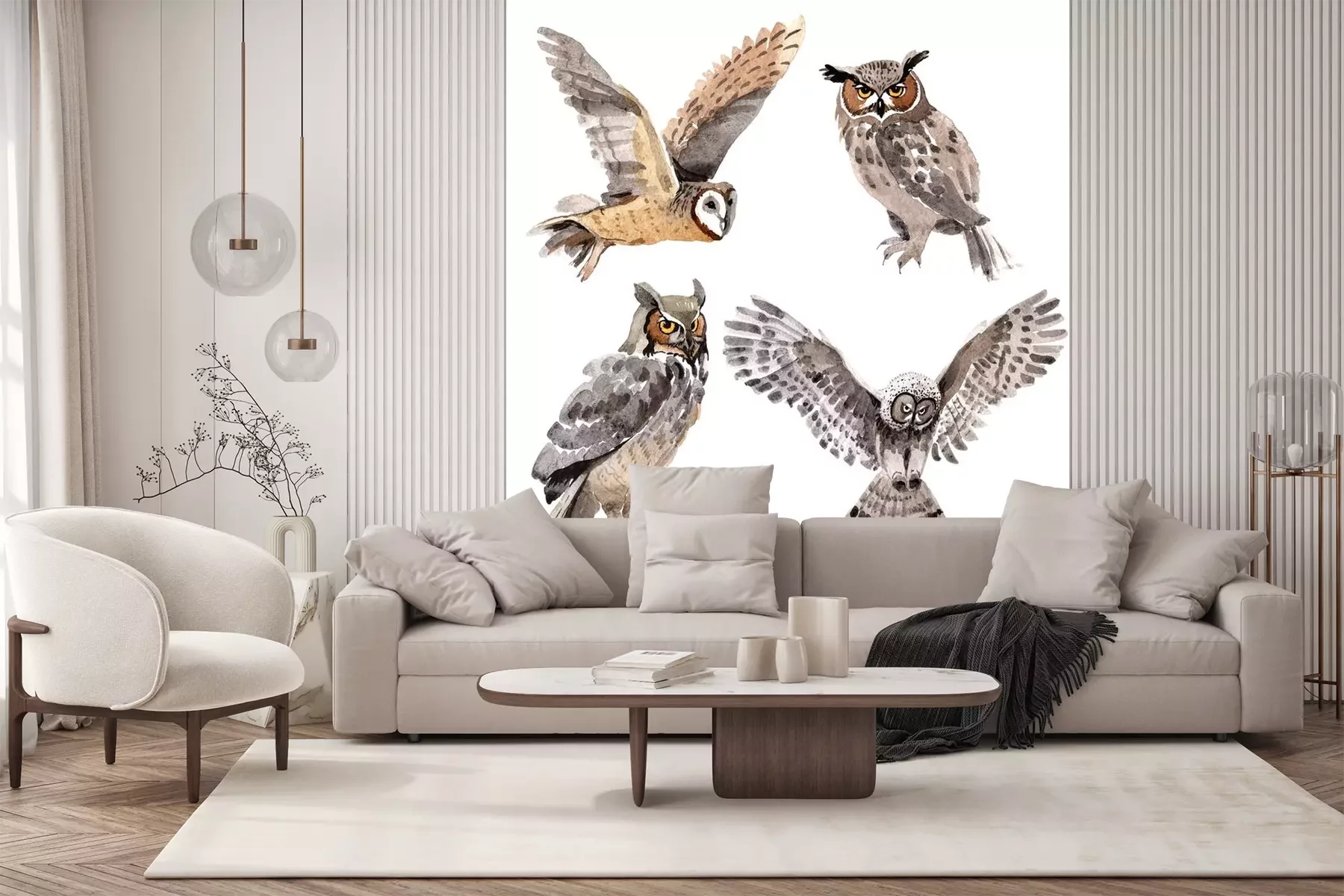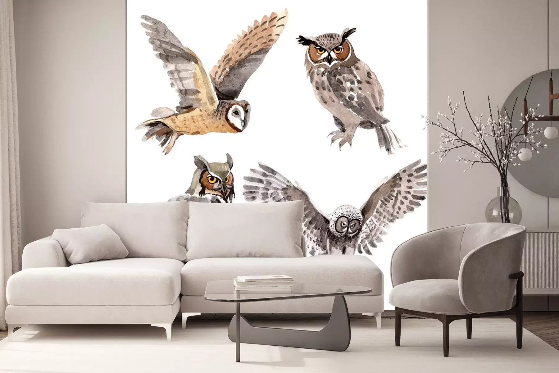 Aquarelpatroon met uilenProbleemloze bezorging verzorgd door vertrouwde vervoerders