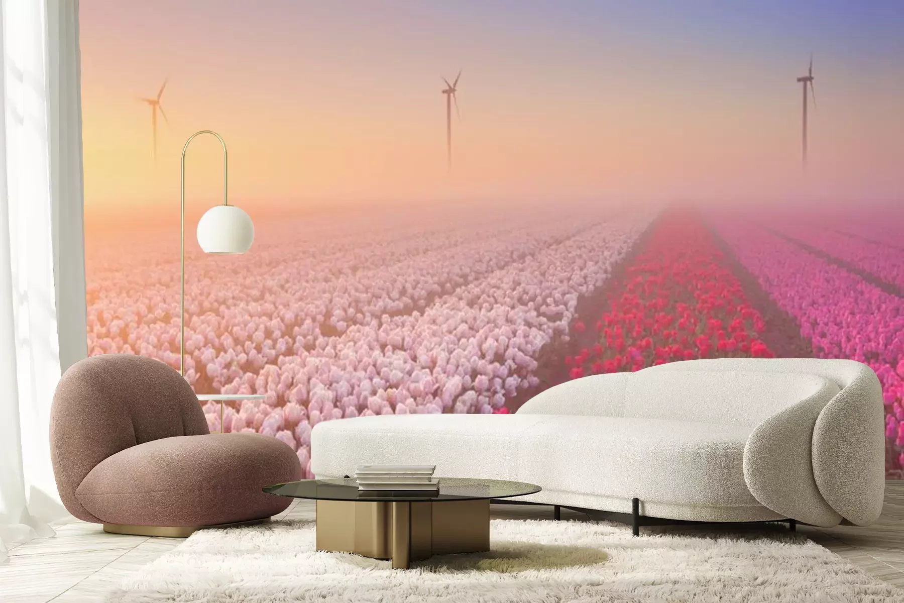 Lavendelplantage bij zonsondergangFotobehang