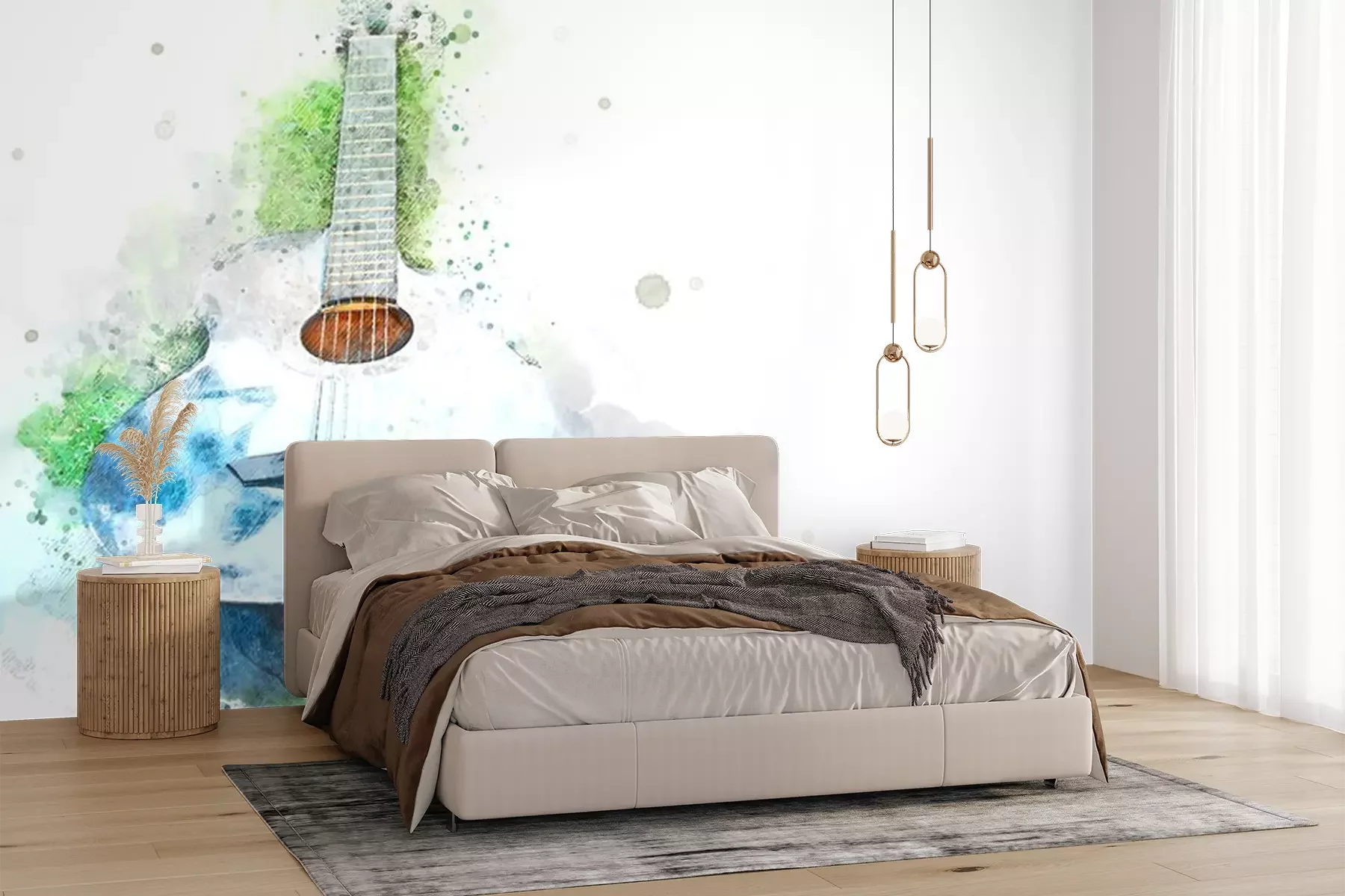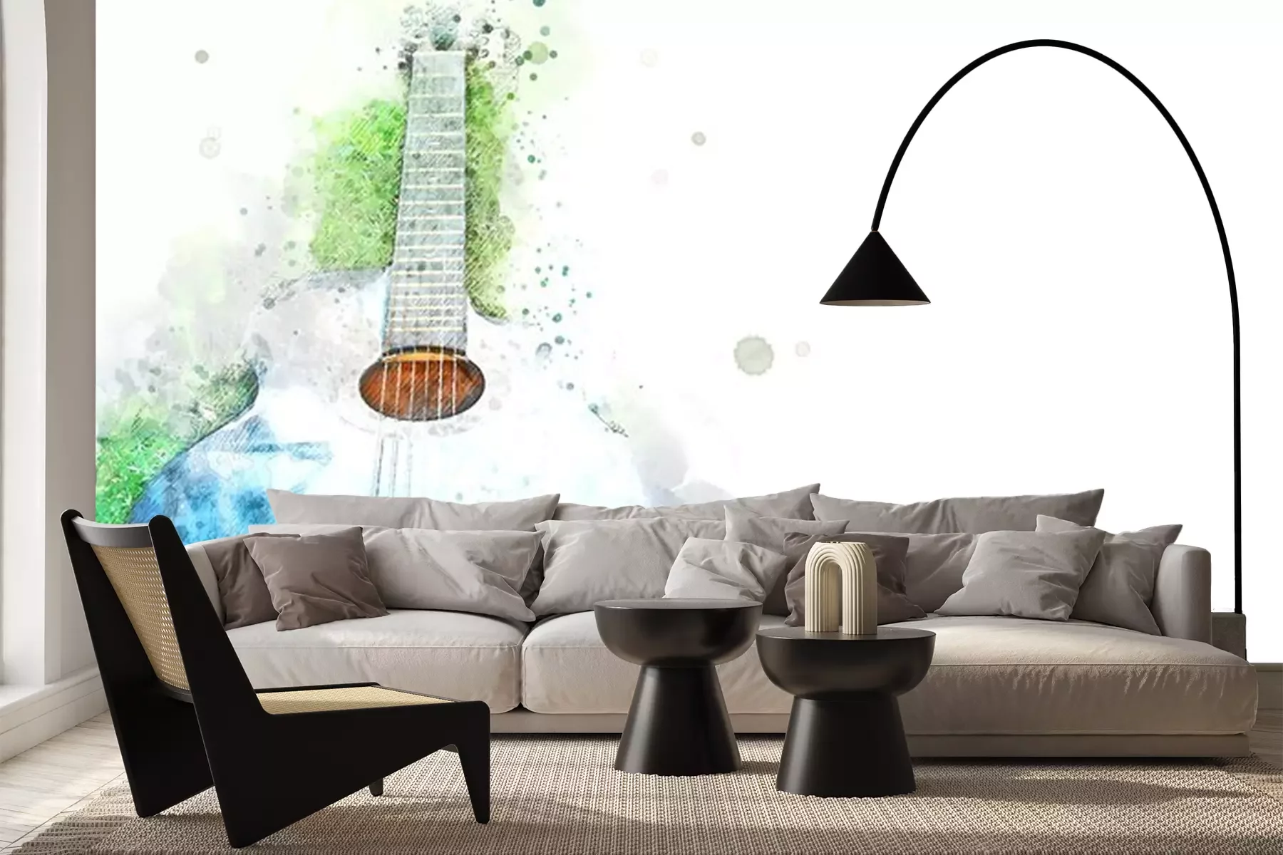 Blauwe aquarelgitaar op witte achtergrondSticker