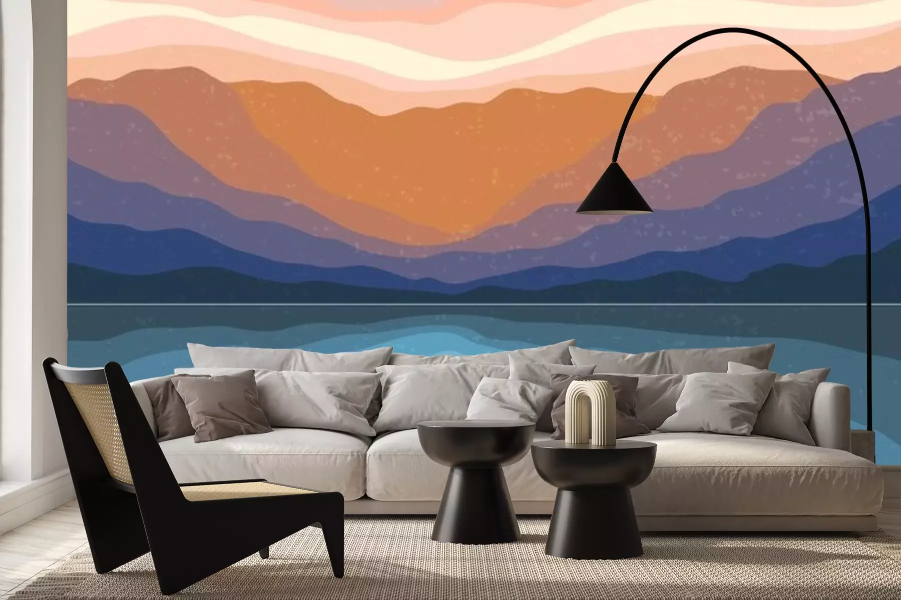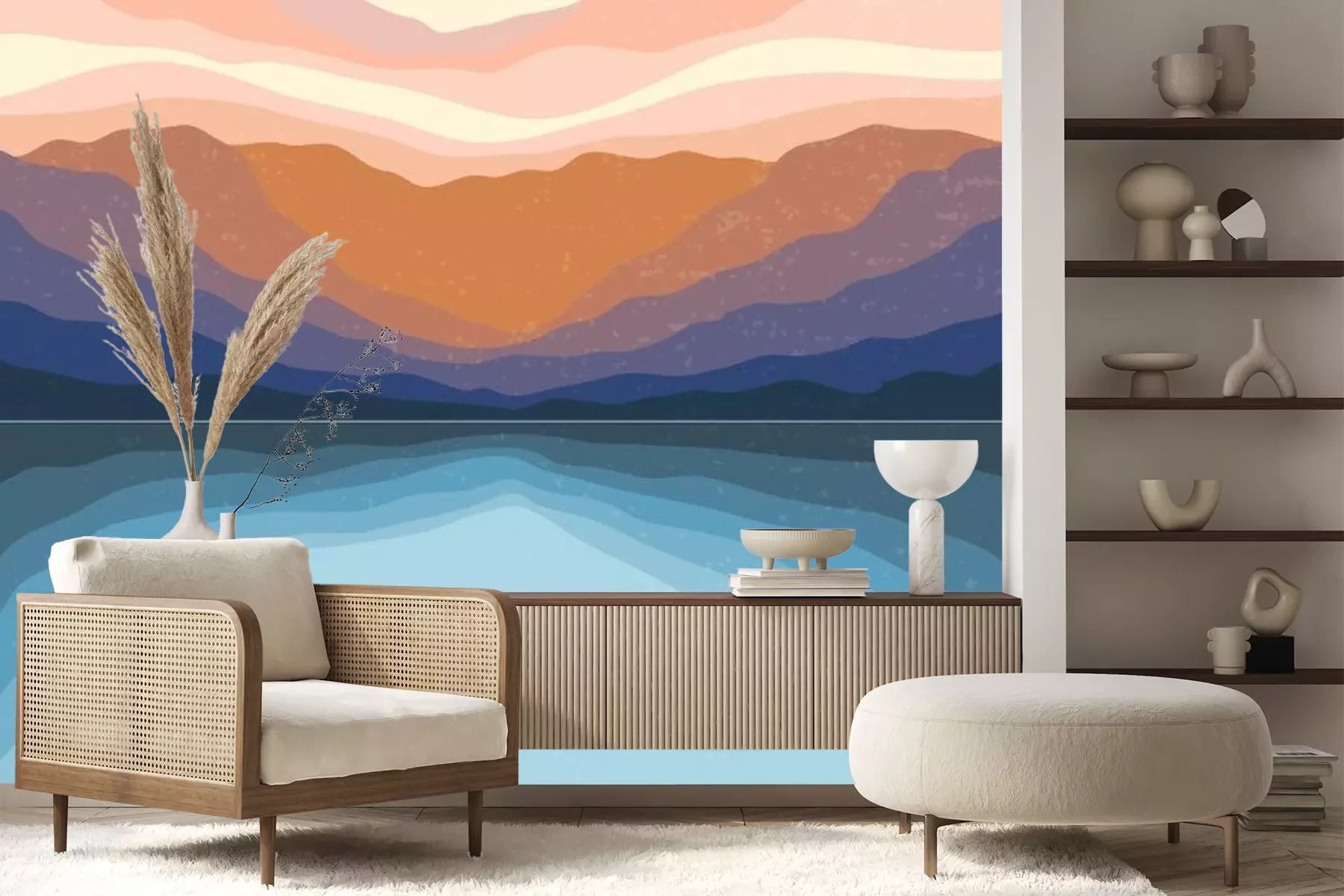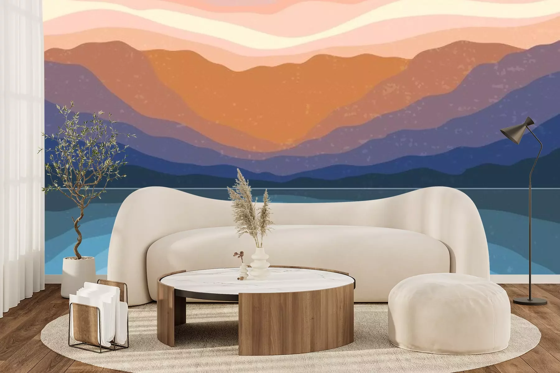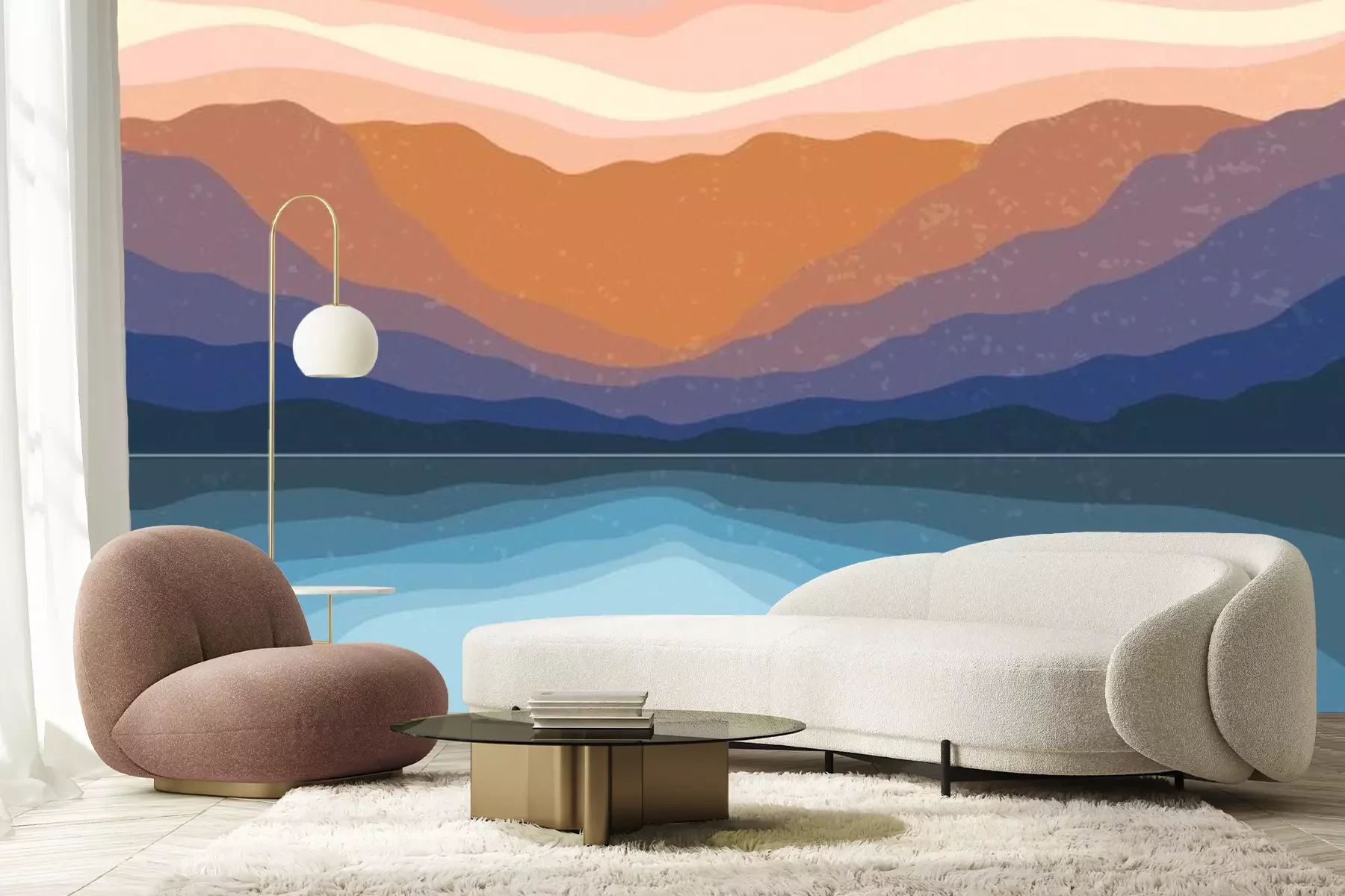 Sticker Abstract Aesthetic mid century modern landscape Contemporary boho poster cover template. Minimal and natural Illustrations for art print, postcard, wallpaper, wall art.
