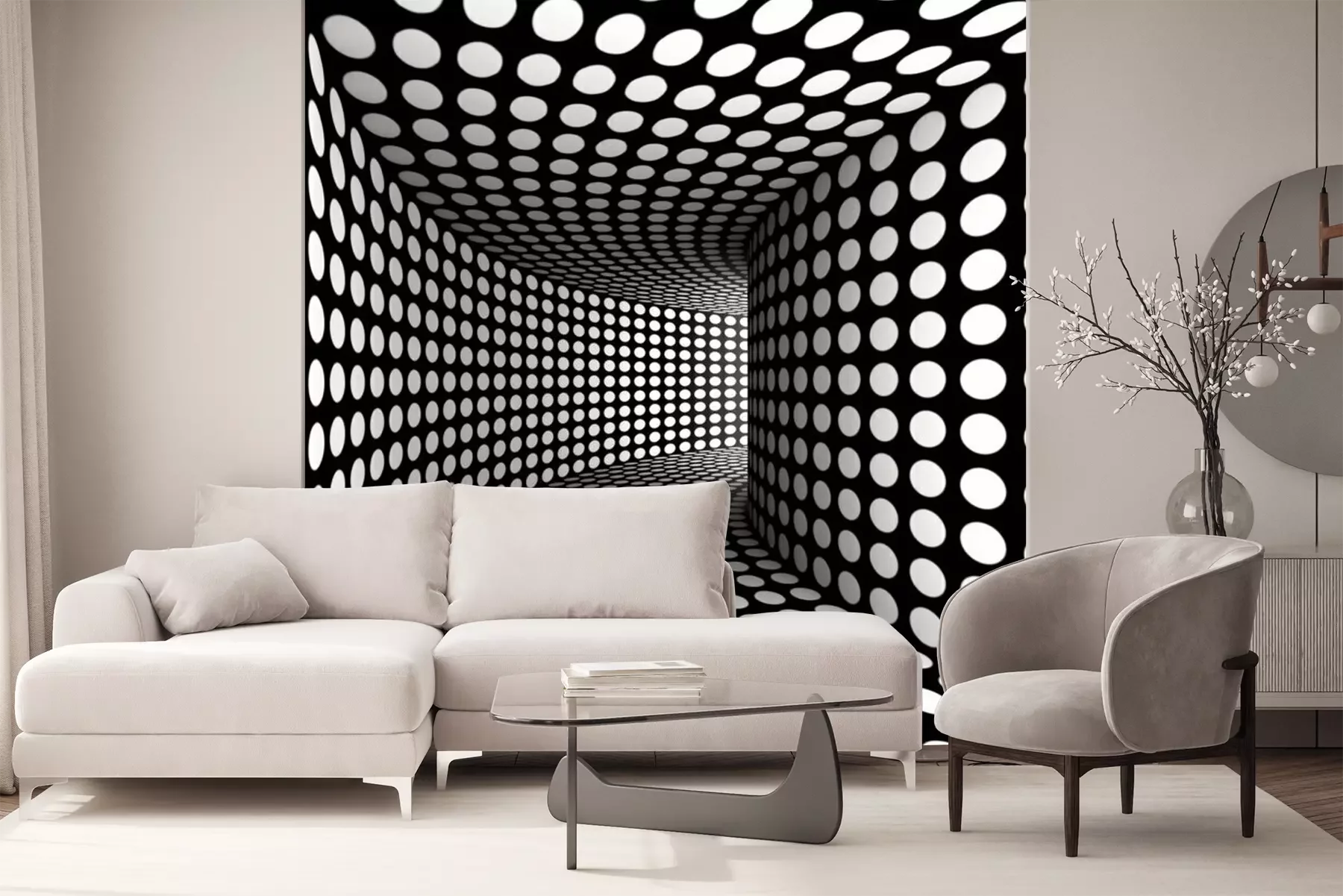 Zwart-wit tunnel op-art.Probleemloze bezorging verzorgd door vertrouwde vervoerders