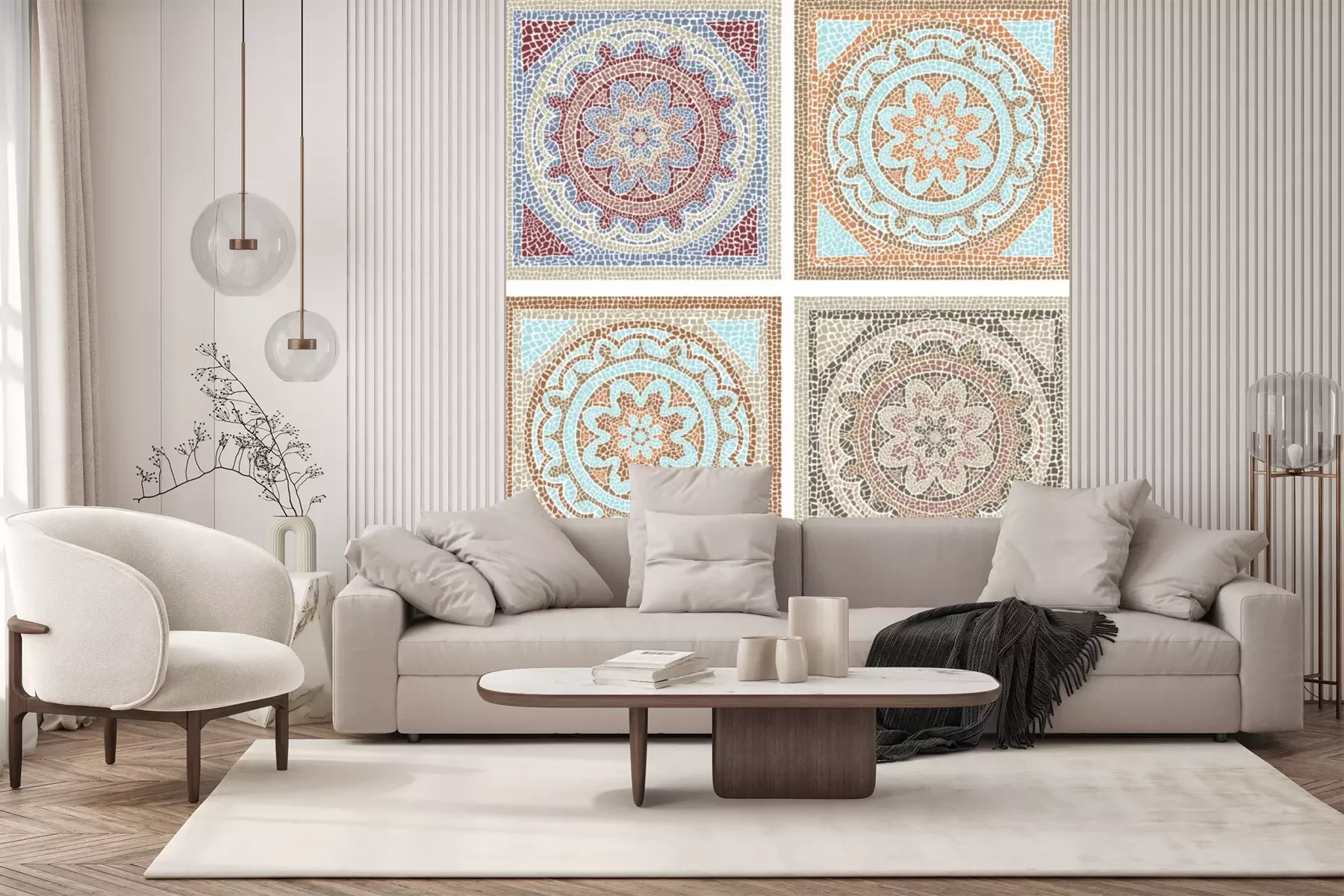 Vier decoratieve mozaïekenSticker