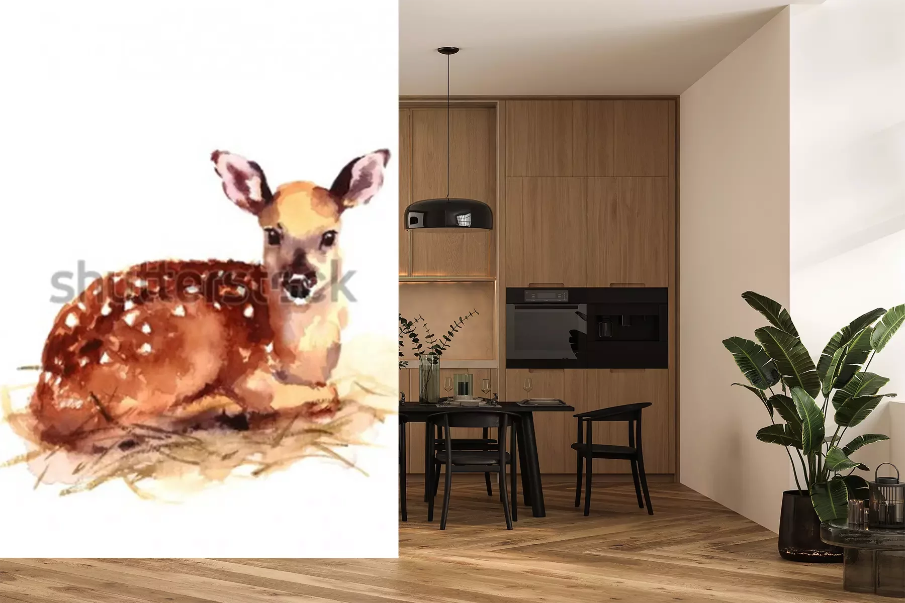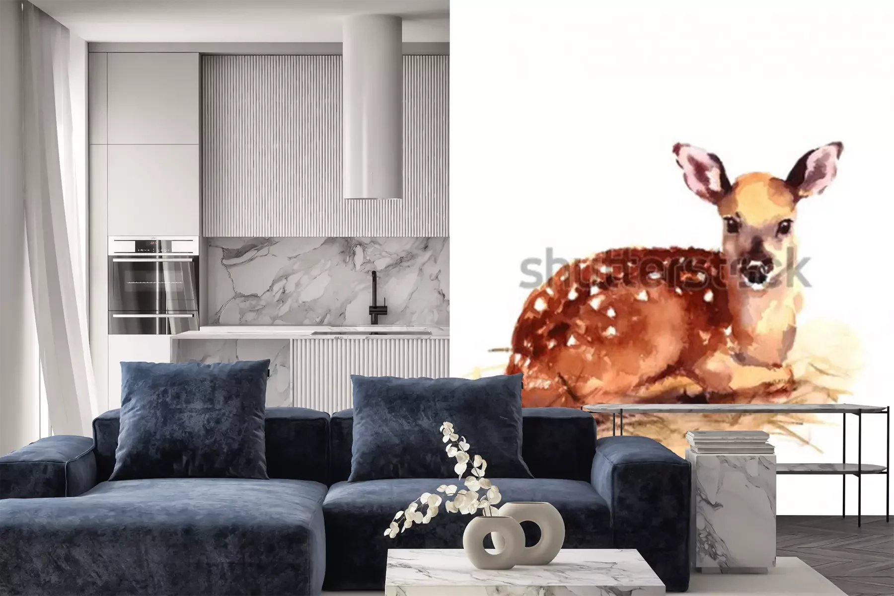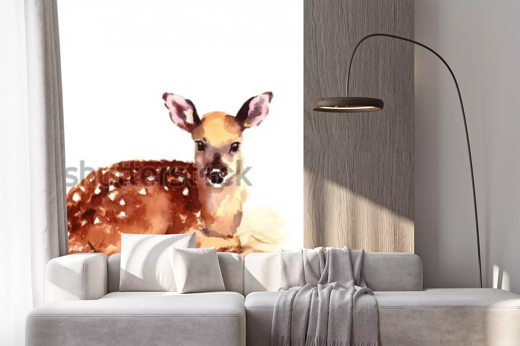 Sticker Aquarel baby herten handgeschilderd Fawn illustratie geïsoleerd op een witte achtergrond