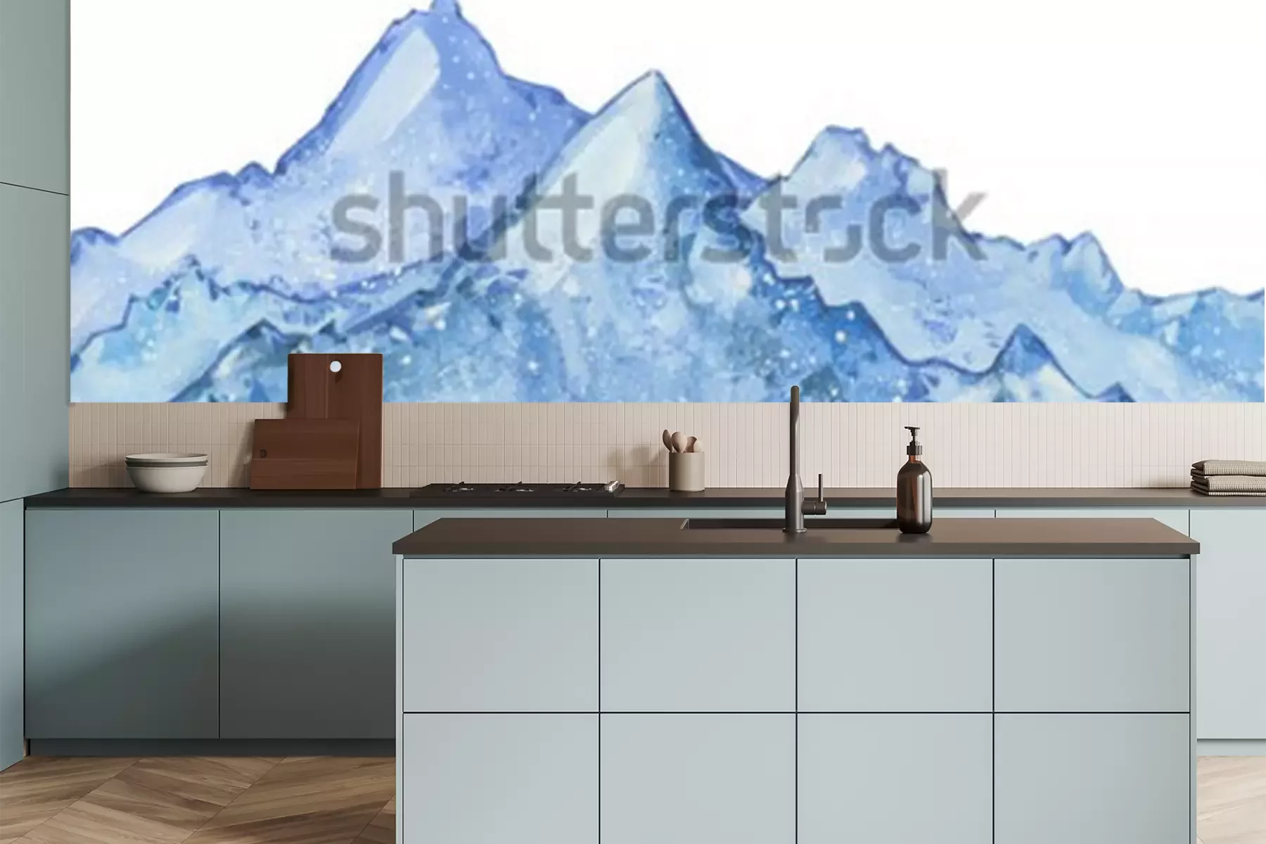 Sticker aquarel besneeuwde blauwe winter piek. Hand getekend winter illustratie op witte achtergrond.