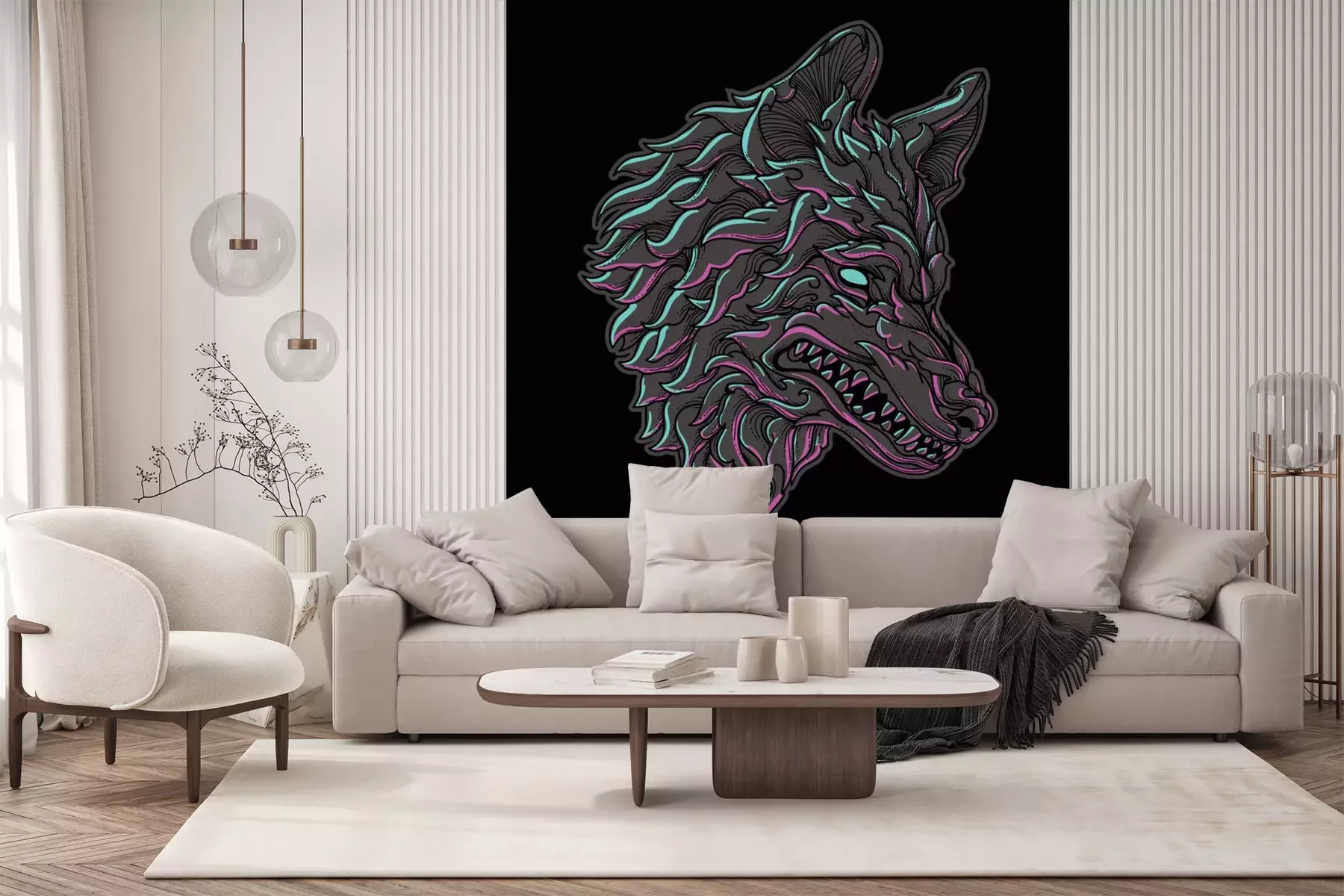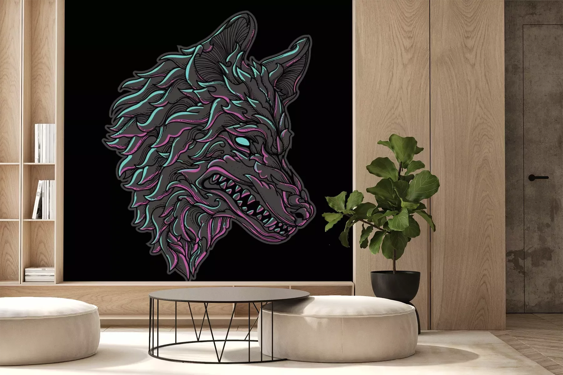 Sticker artwork illustration and t-shirt design wolf head engraving ornament premium vector
