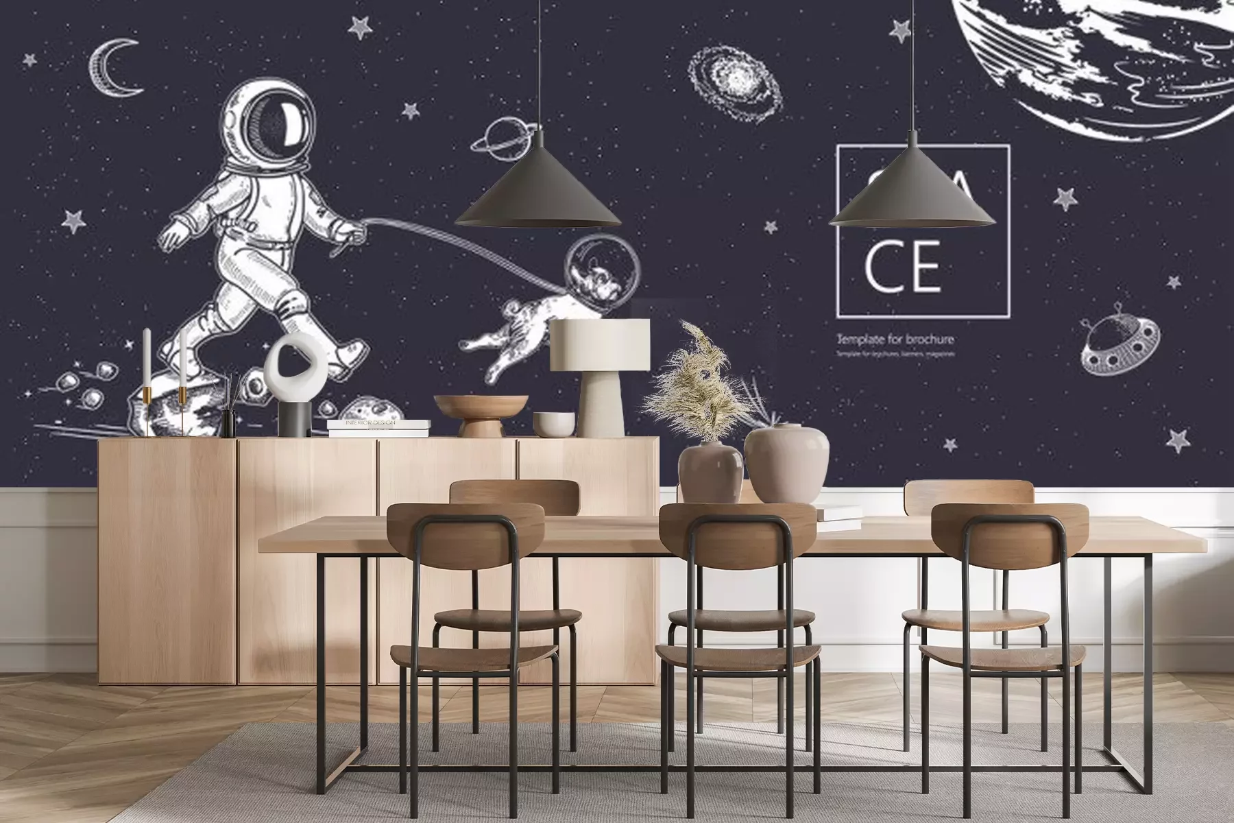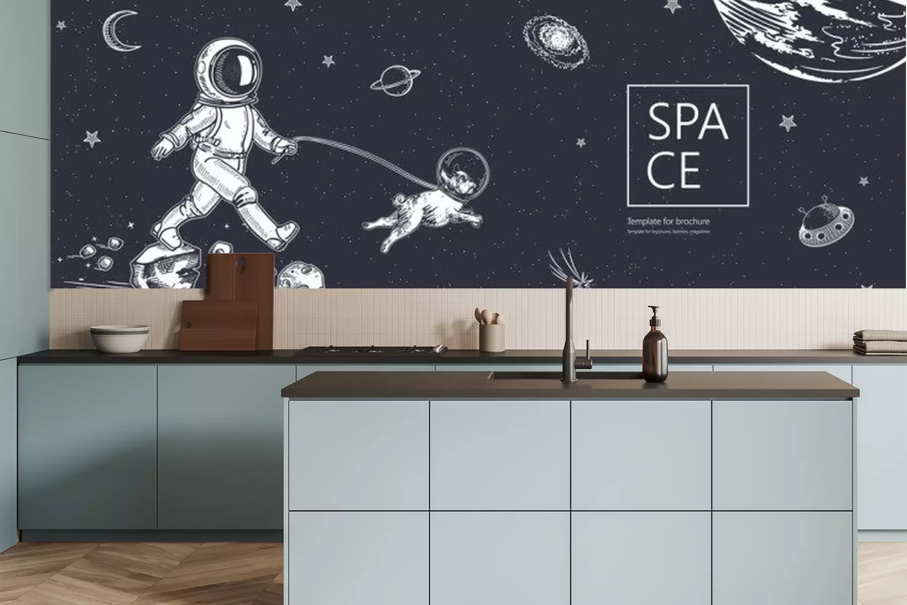 Sticker Astronaut in de ruimte die zijn hond uitlaat