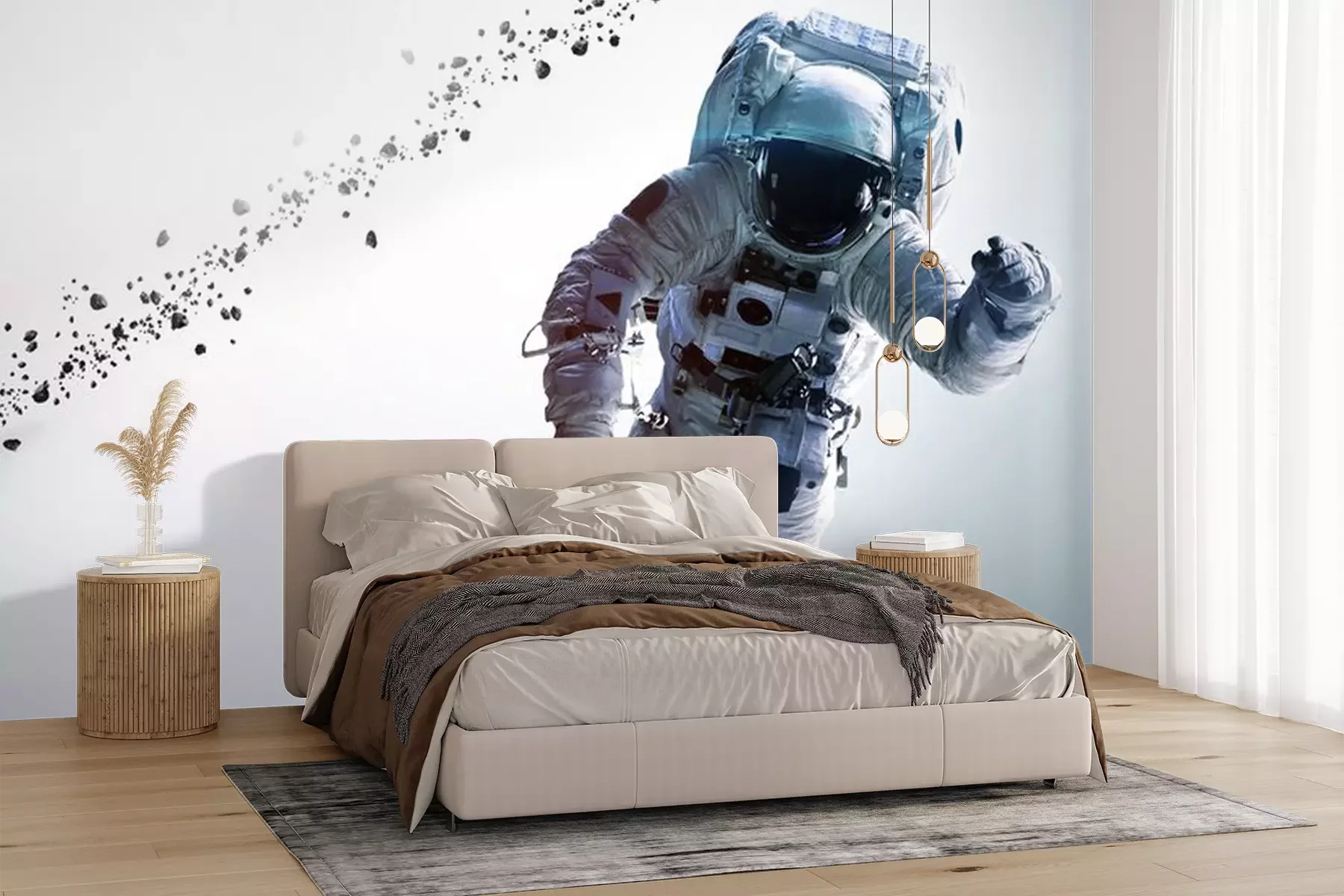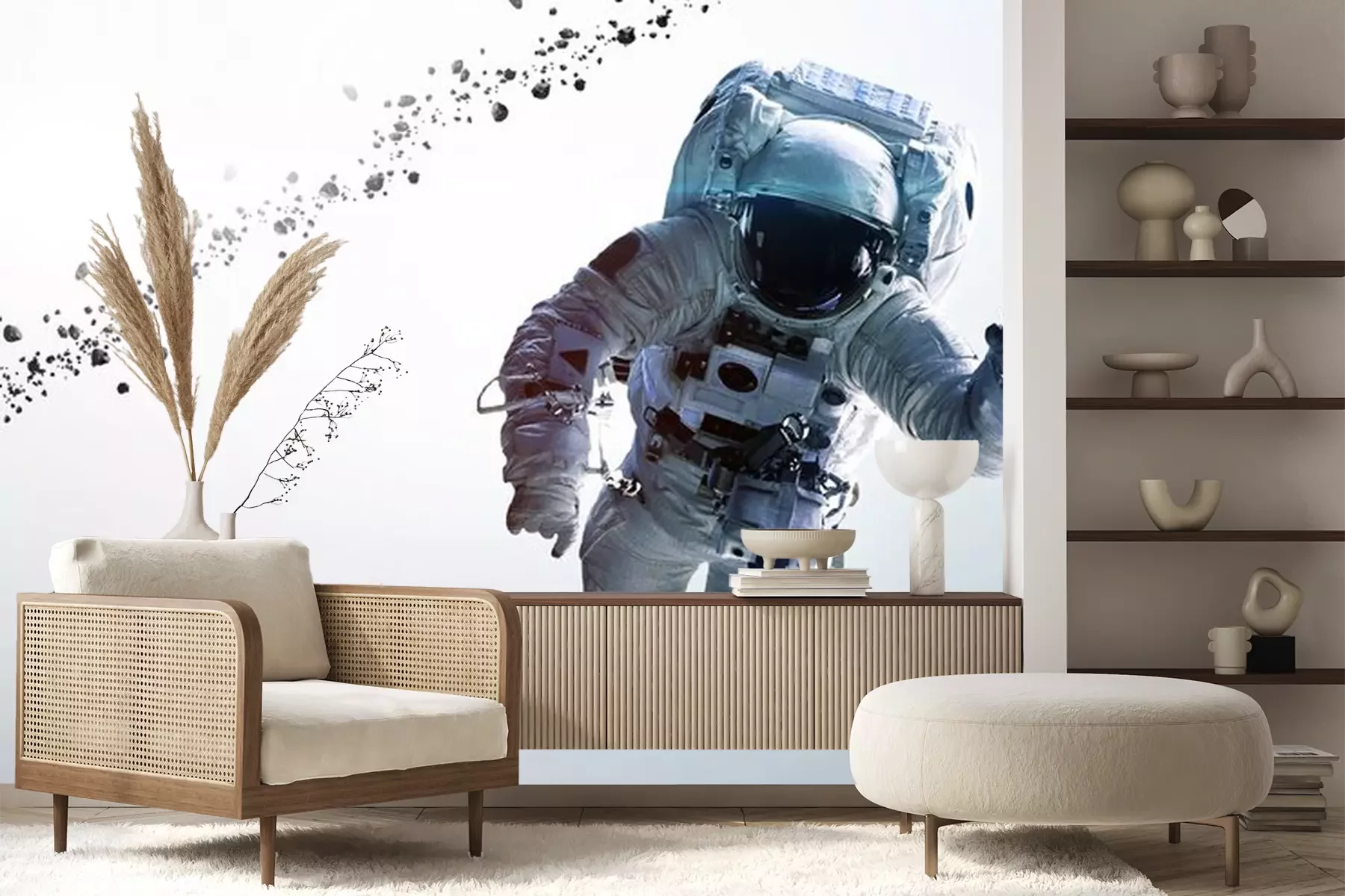 Astronaut reikt naar de maanFotobehang