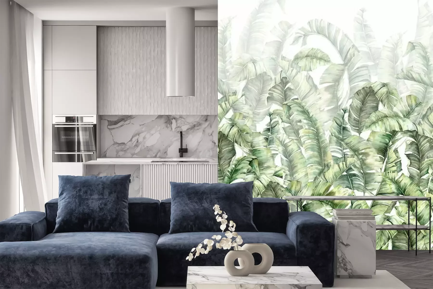 Sticker Bananenbladeren geschilderd in aquarel