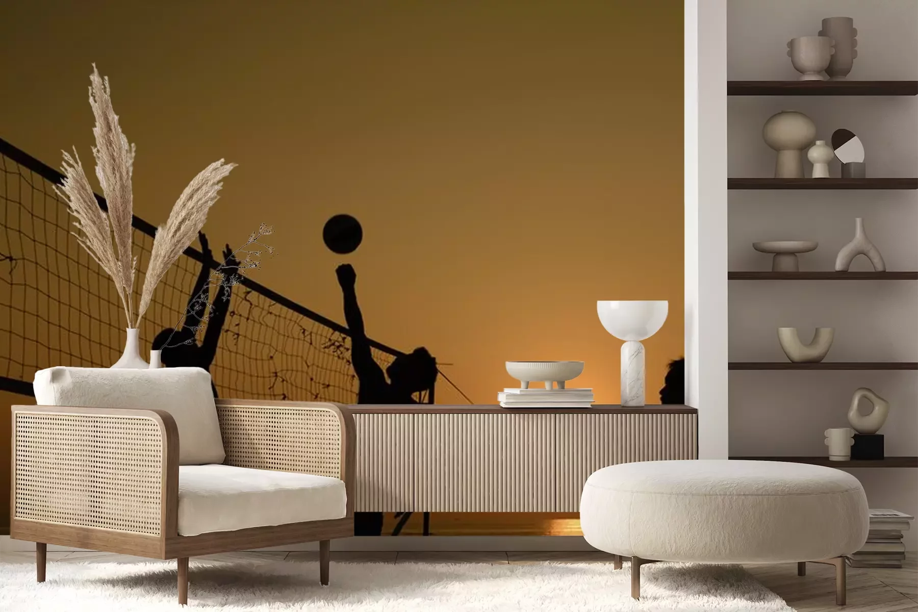 Beachvolleybal silhouetProbleemloze bezorging verzorgd door vertrouwde vervoerders