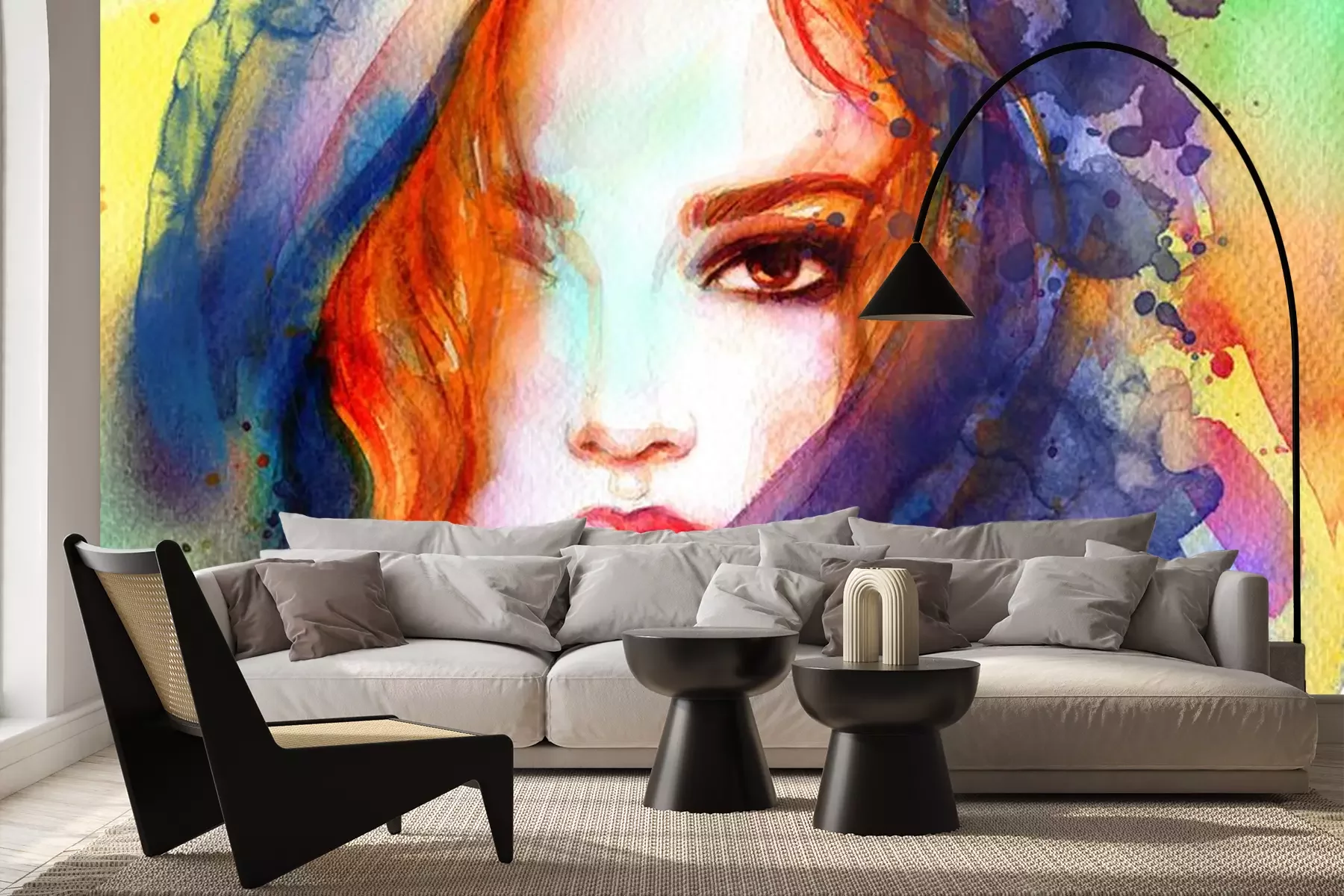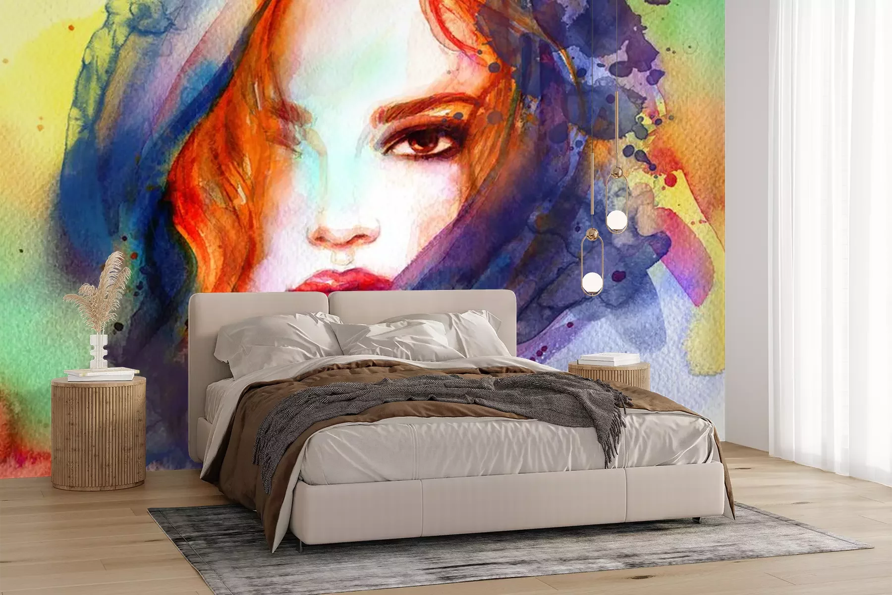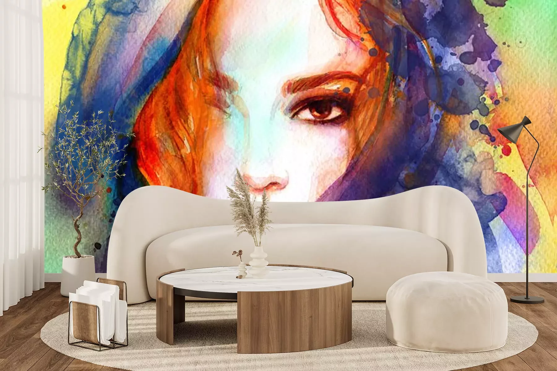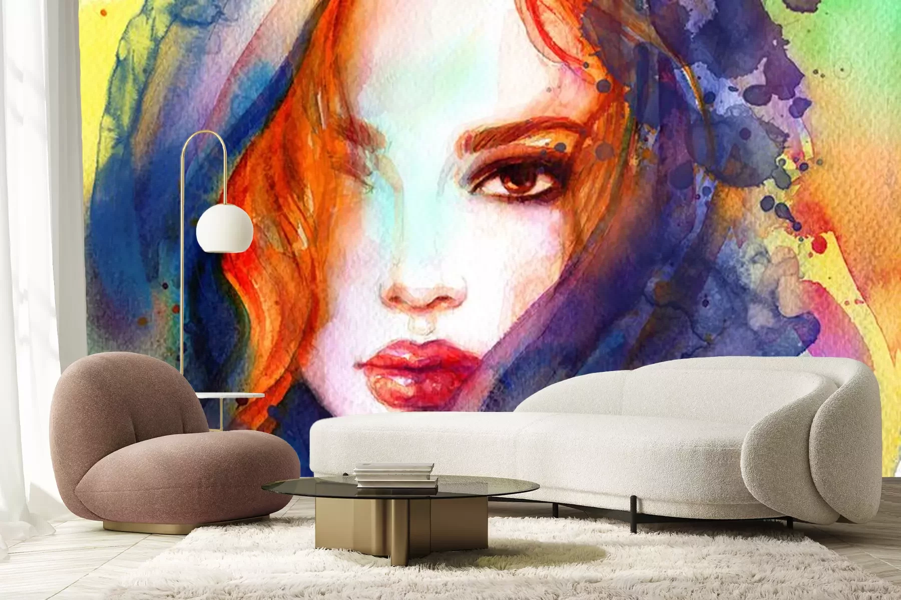Sticker beautiful woman. fashion illustration. contemporary watercolor painting