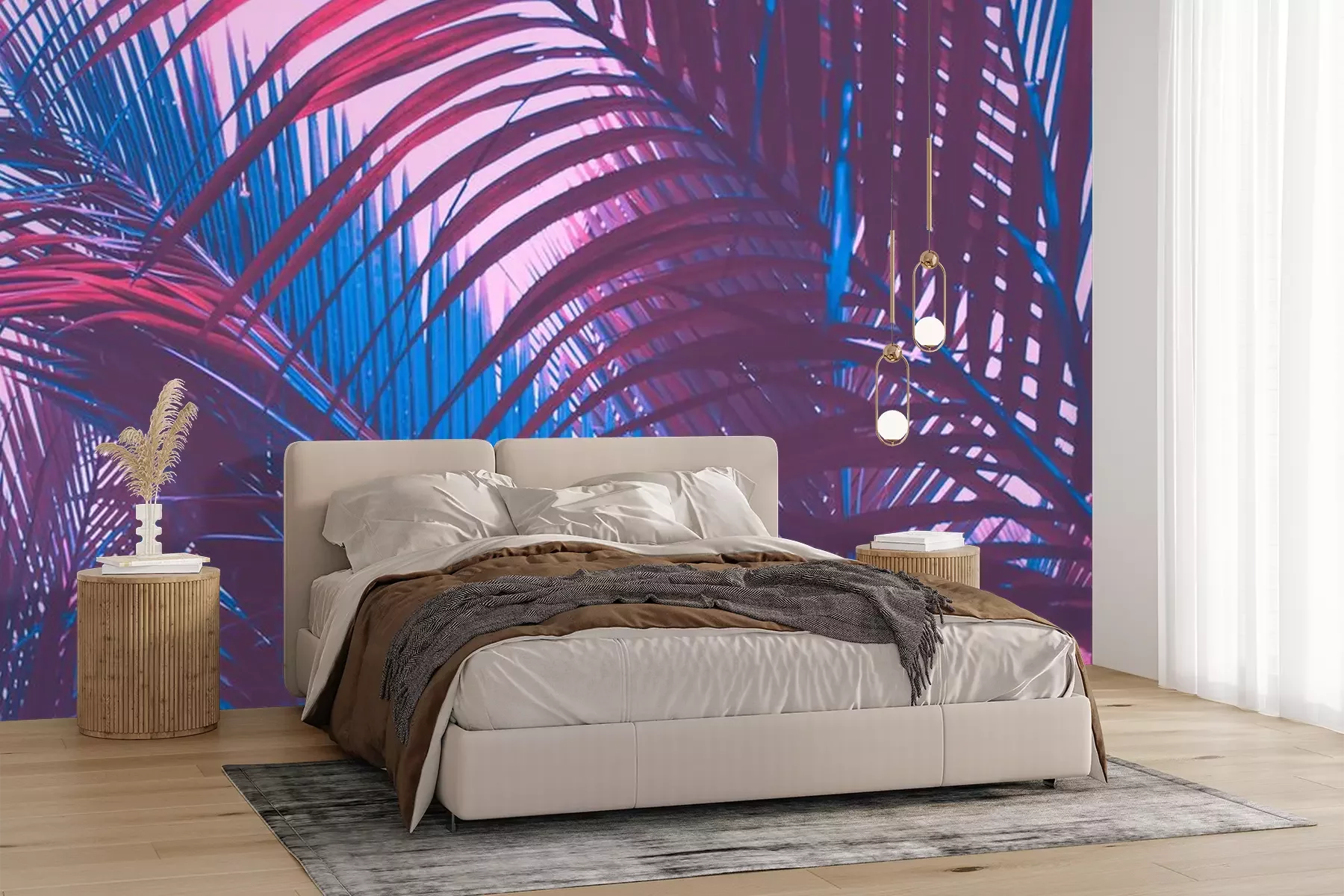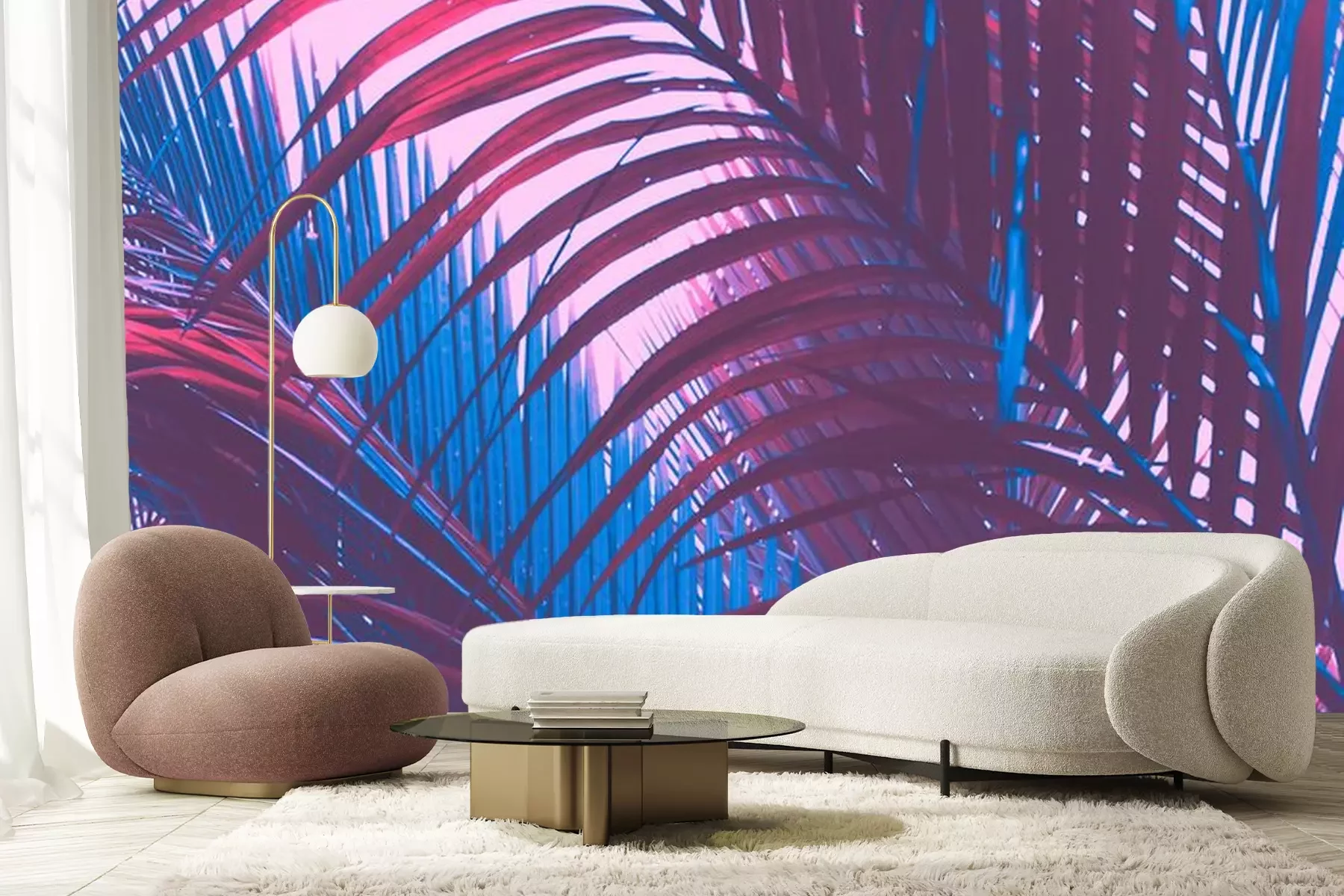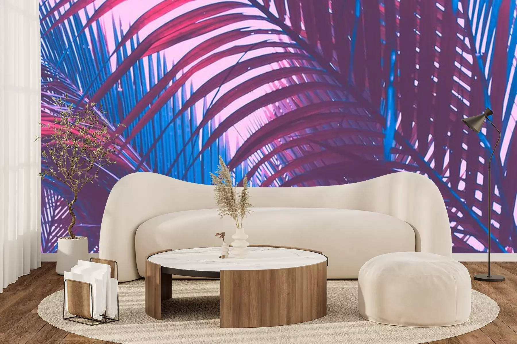 Sticker Bladeren van tropische planten in blauwviolette kleuren