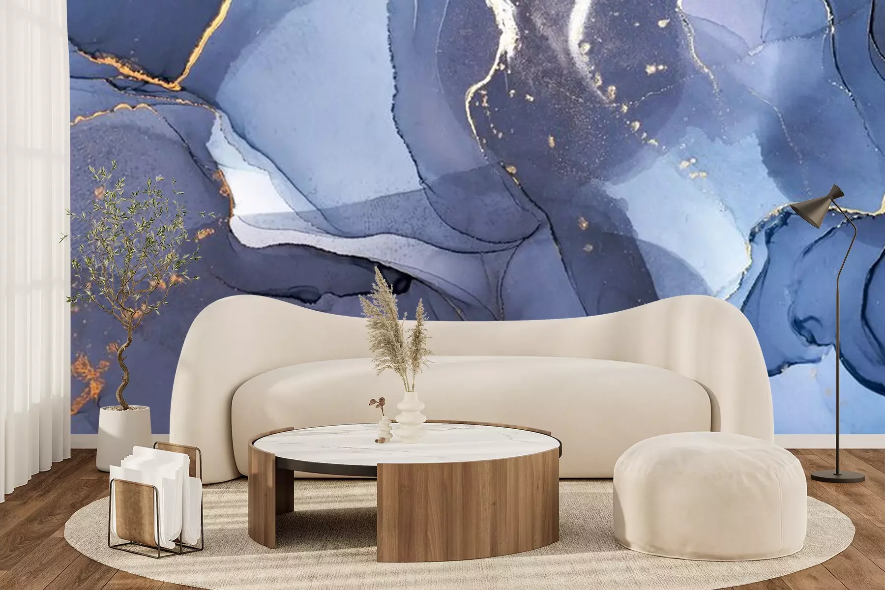 Blauw marmer met imitatiegoudCanvas