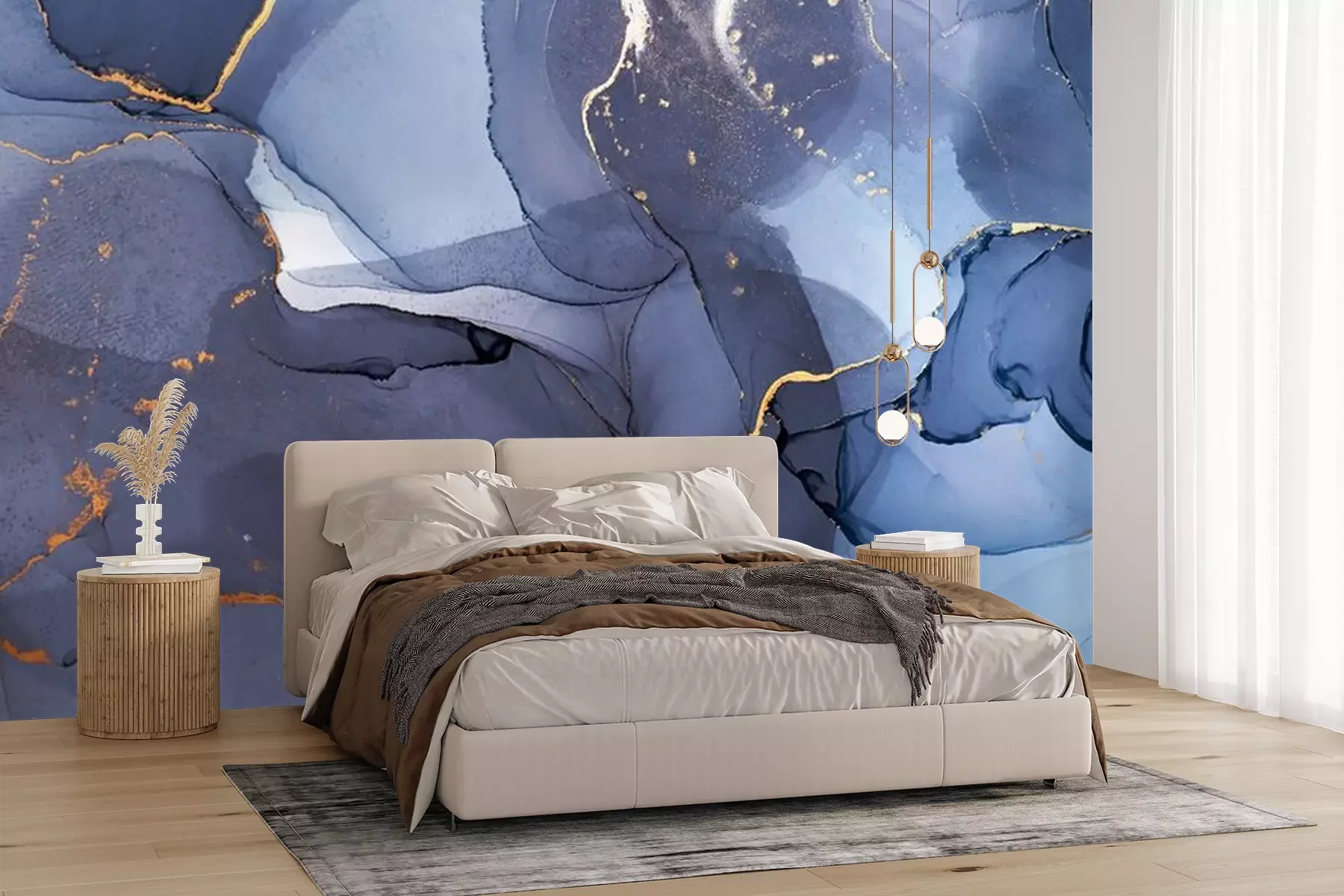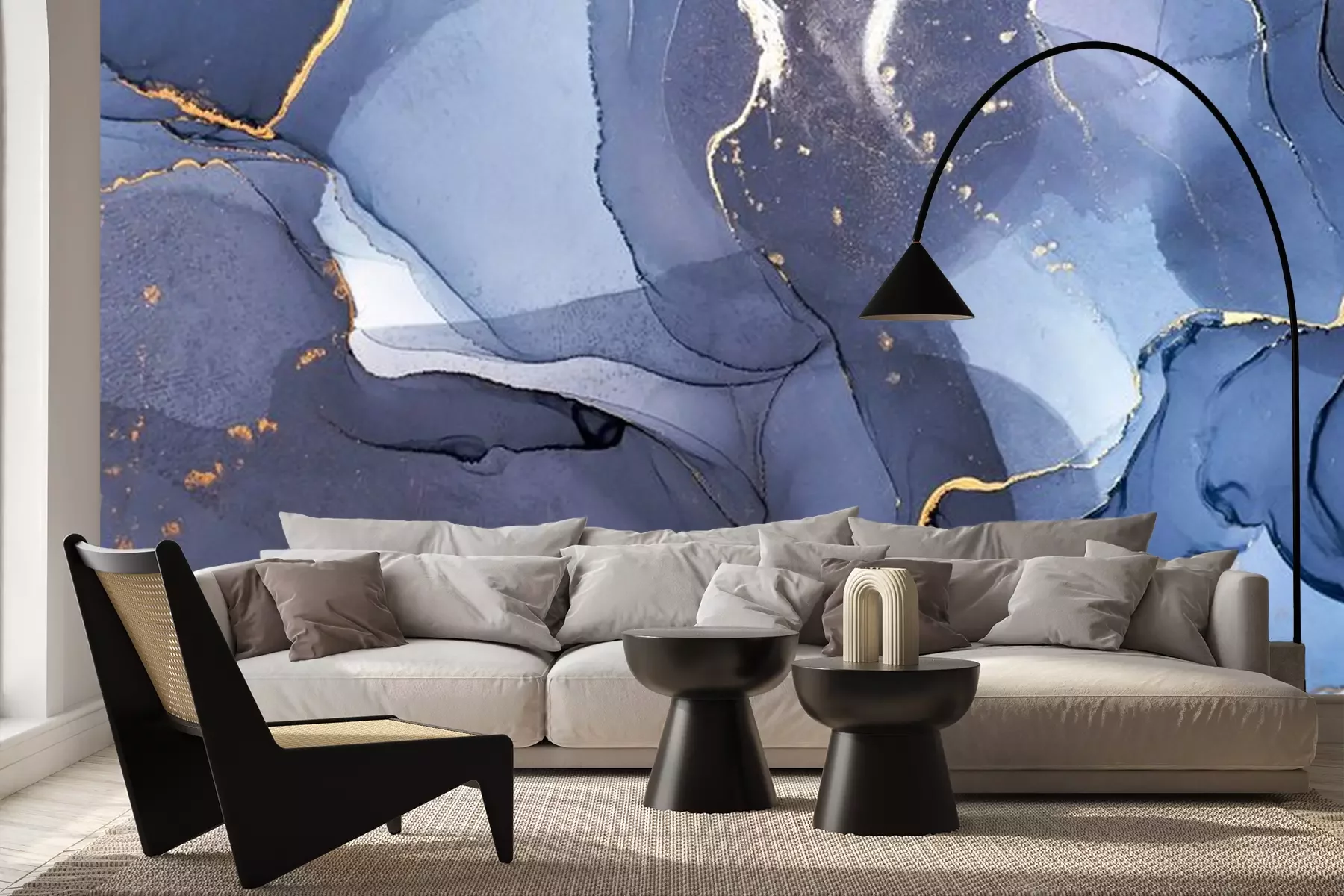 Donkerblauwe tinten verf doordringen elkaarFotobehang