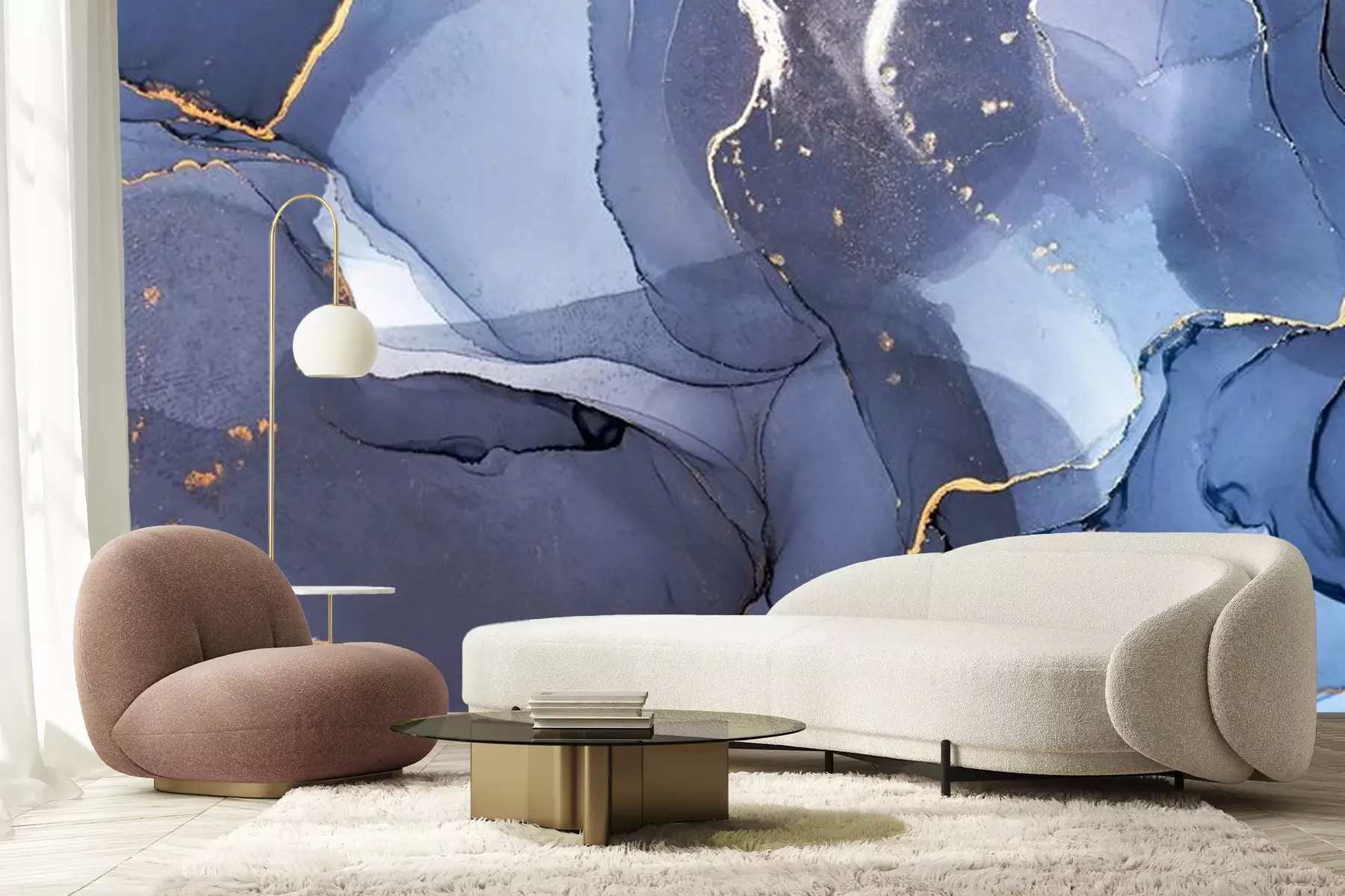 Roze en blauwe marmertextuurFotobehang