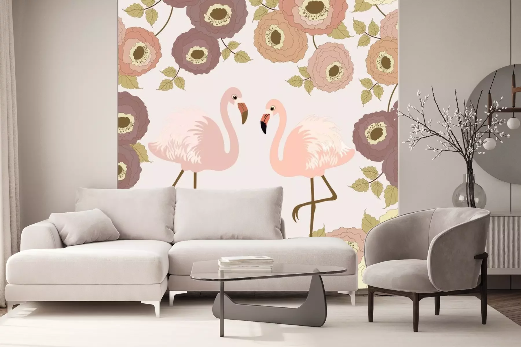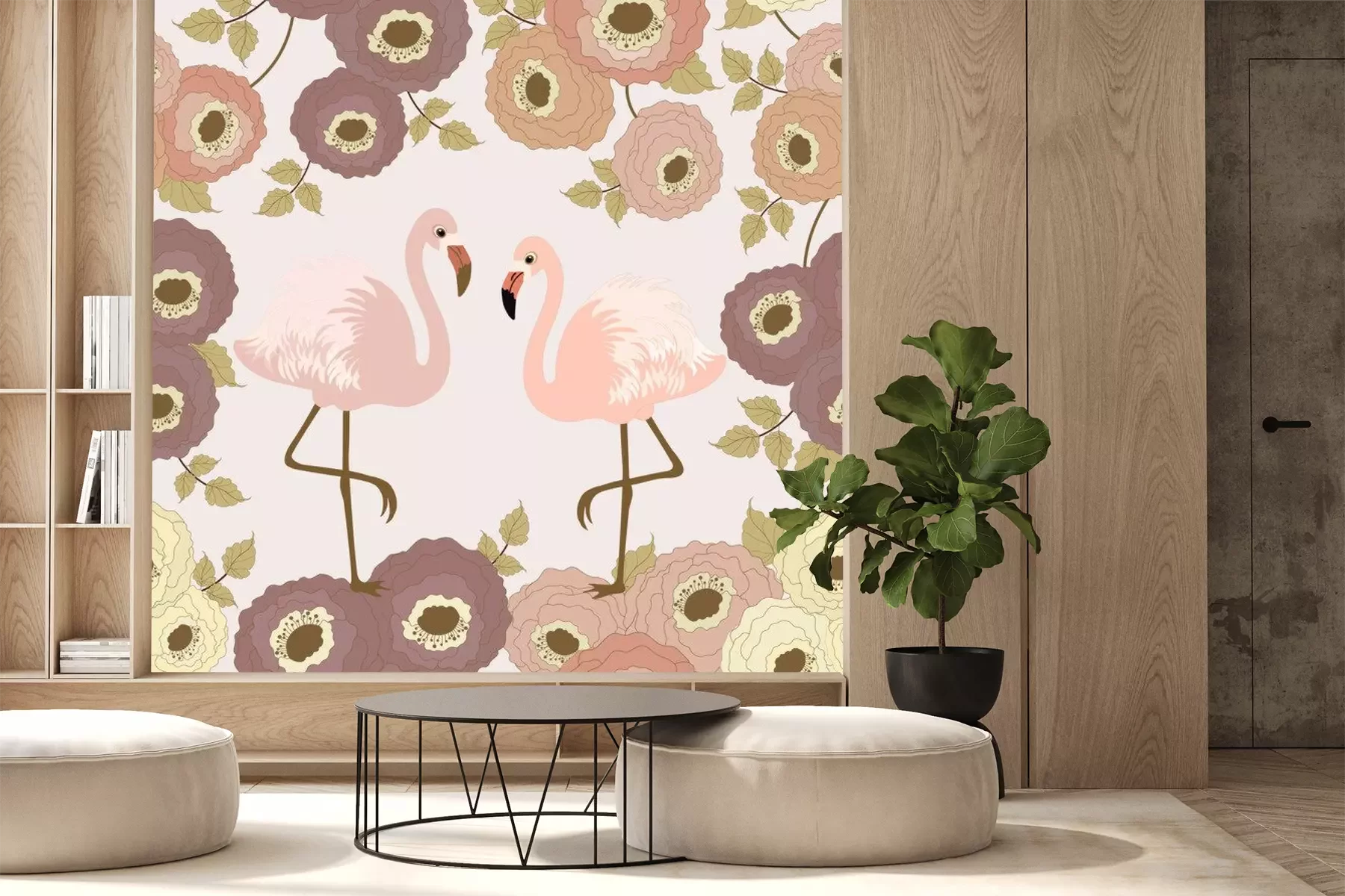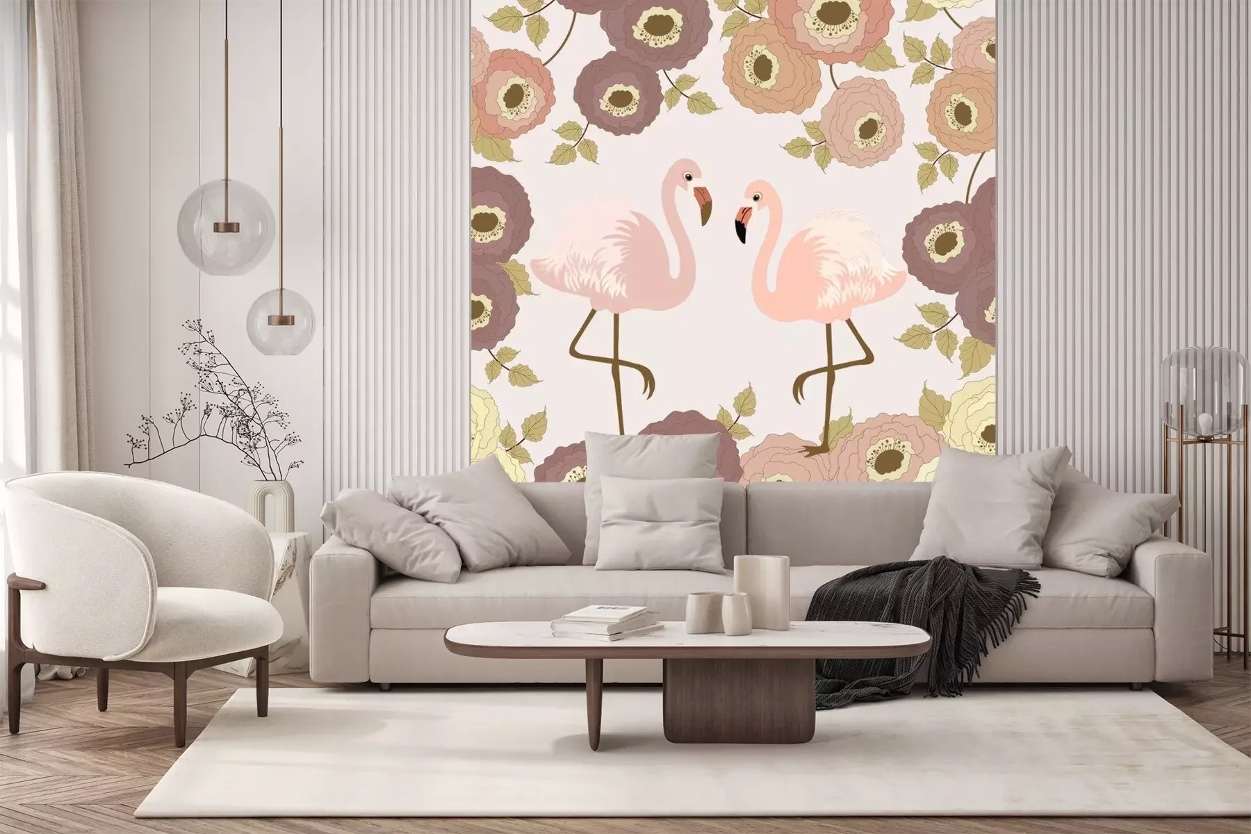 Patroon in roze tint met vogelsProbleemloze bezorging verzorgd door vertrouwde vervoerders