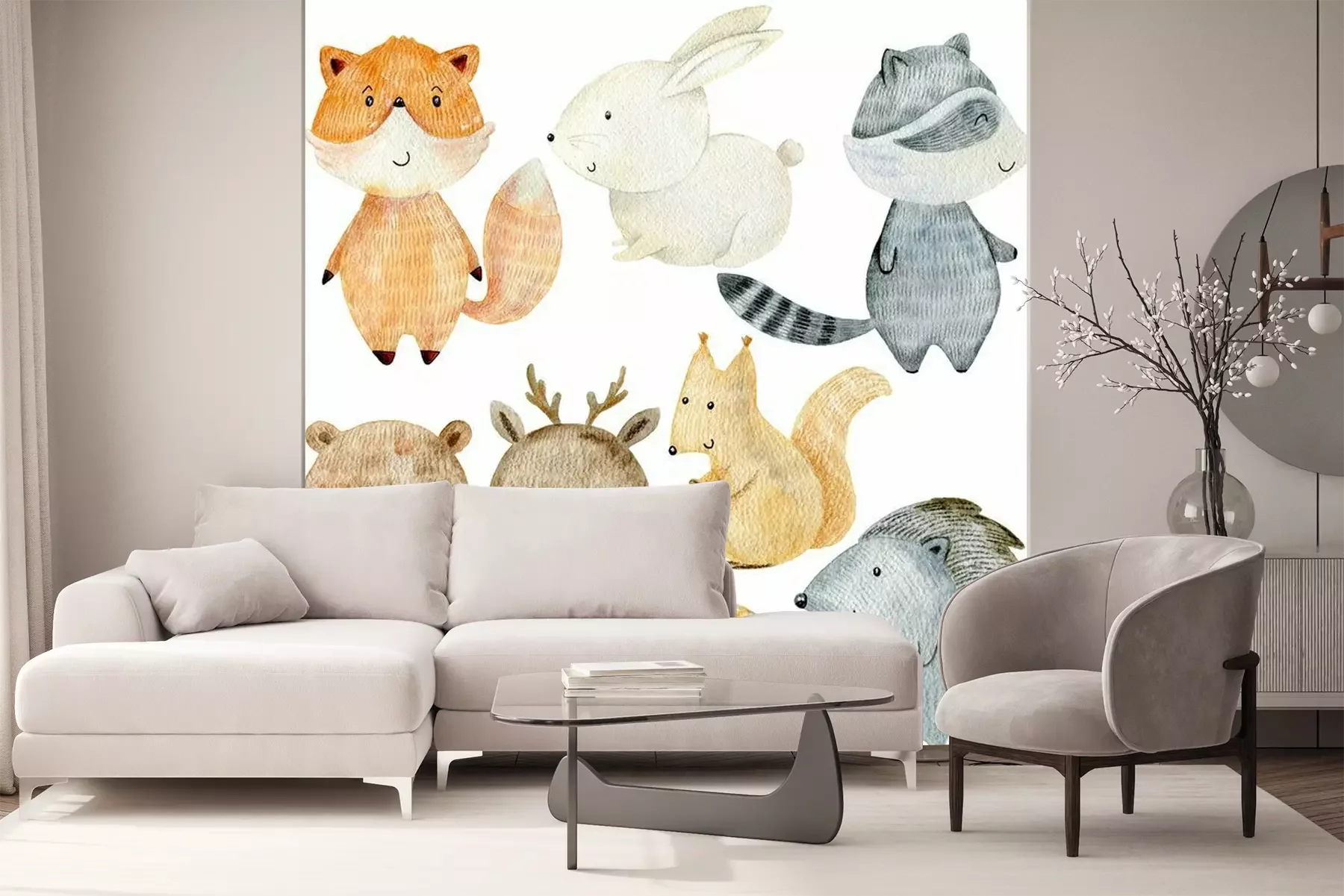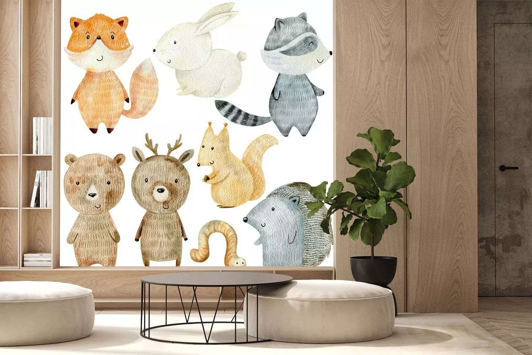 Aquarel bosdieren en plantenBehang