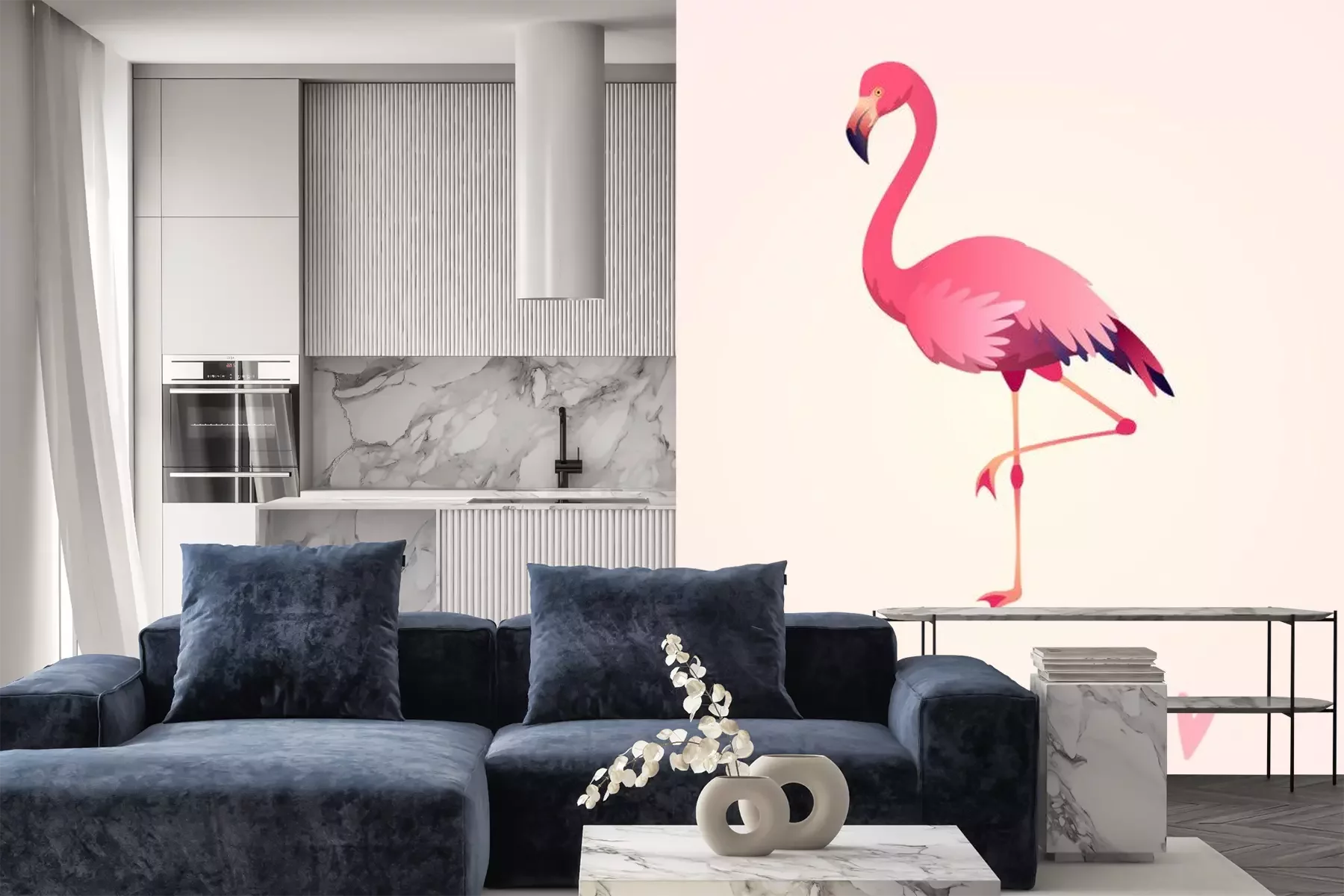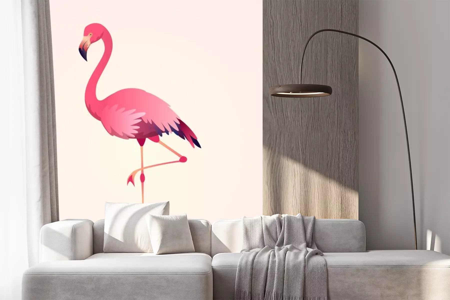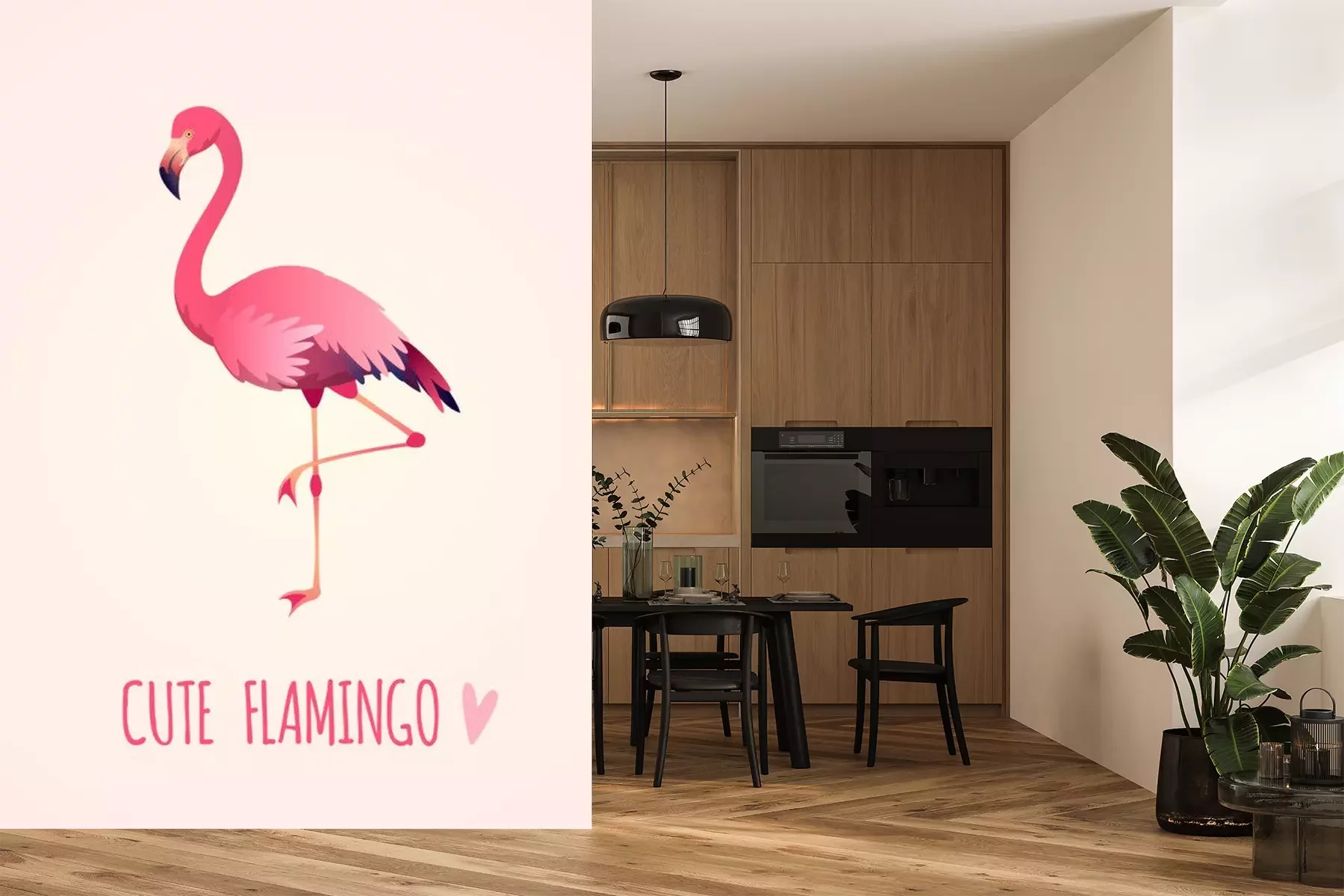 Sticker Cute flamingo. Tropical pink bird, girl card poster exotic wild nature, party beach beauty sticker isolated cartoon