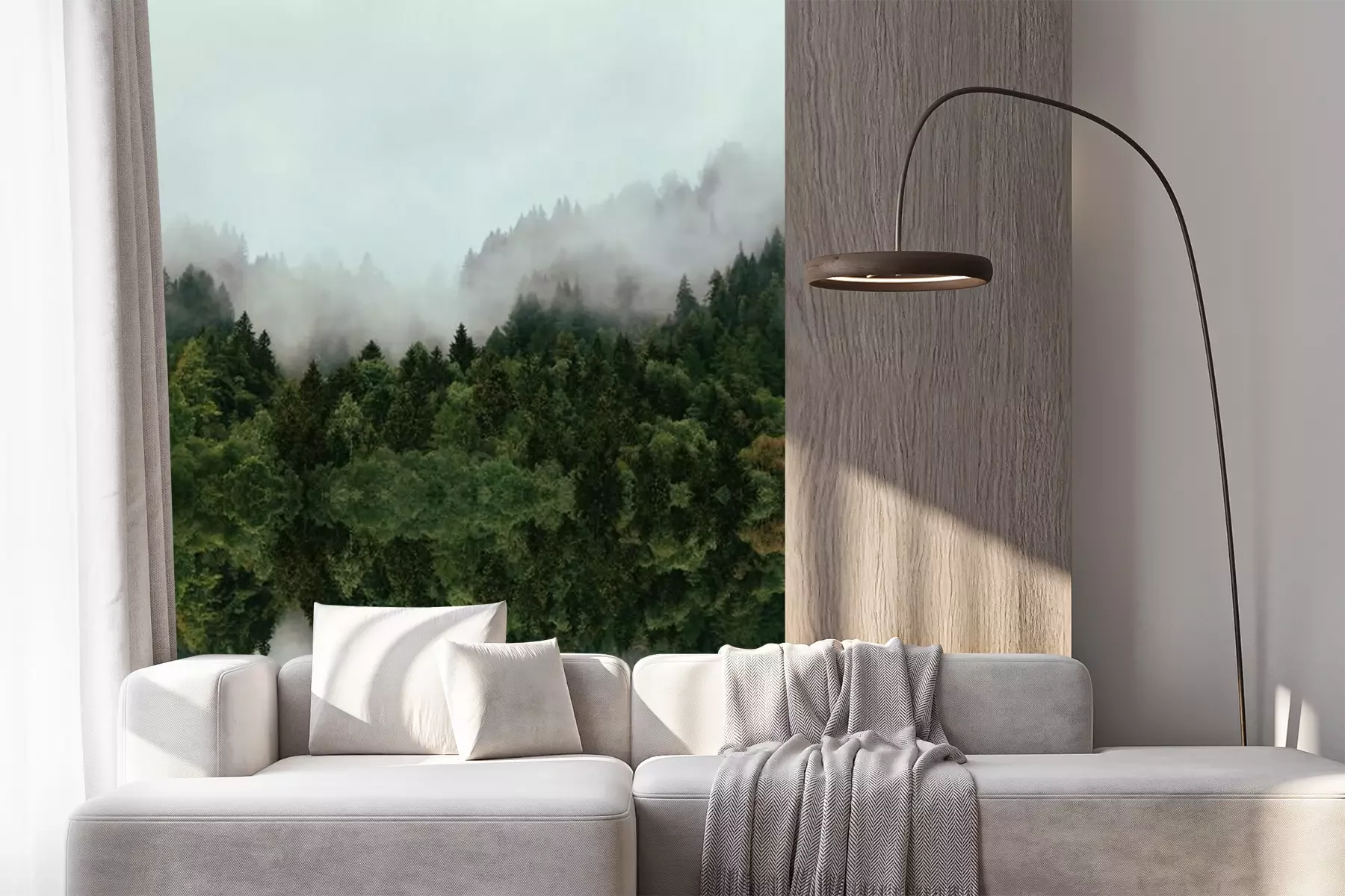 Naaldbos in de mist, herfstlandschapProbleemloze bezorging verzorgd door vertrouwde vervoerders