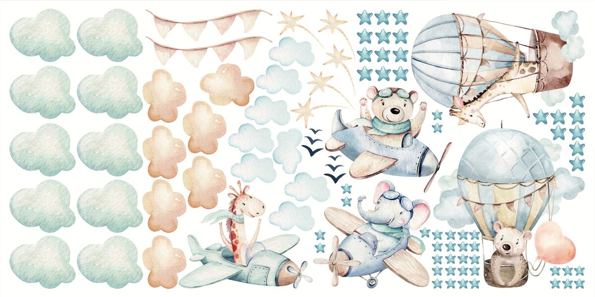 Sticker: Diertjes in vliegtuigen en ballonnen