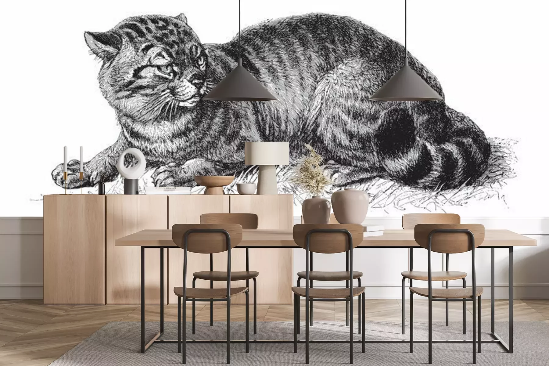 Sticker domestic cat (Felis catus) / vintage illustration from Meyers Konversations-Lexikon 1897