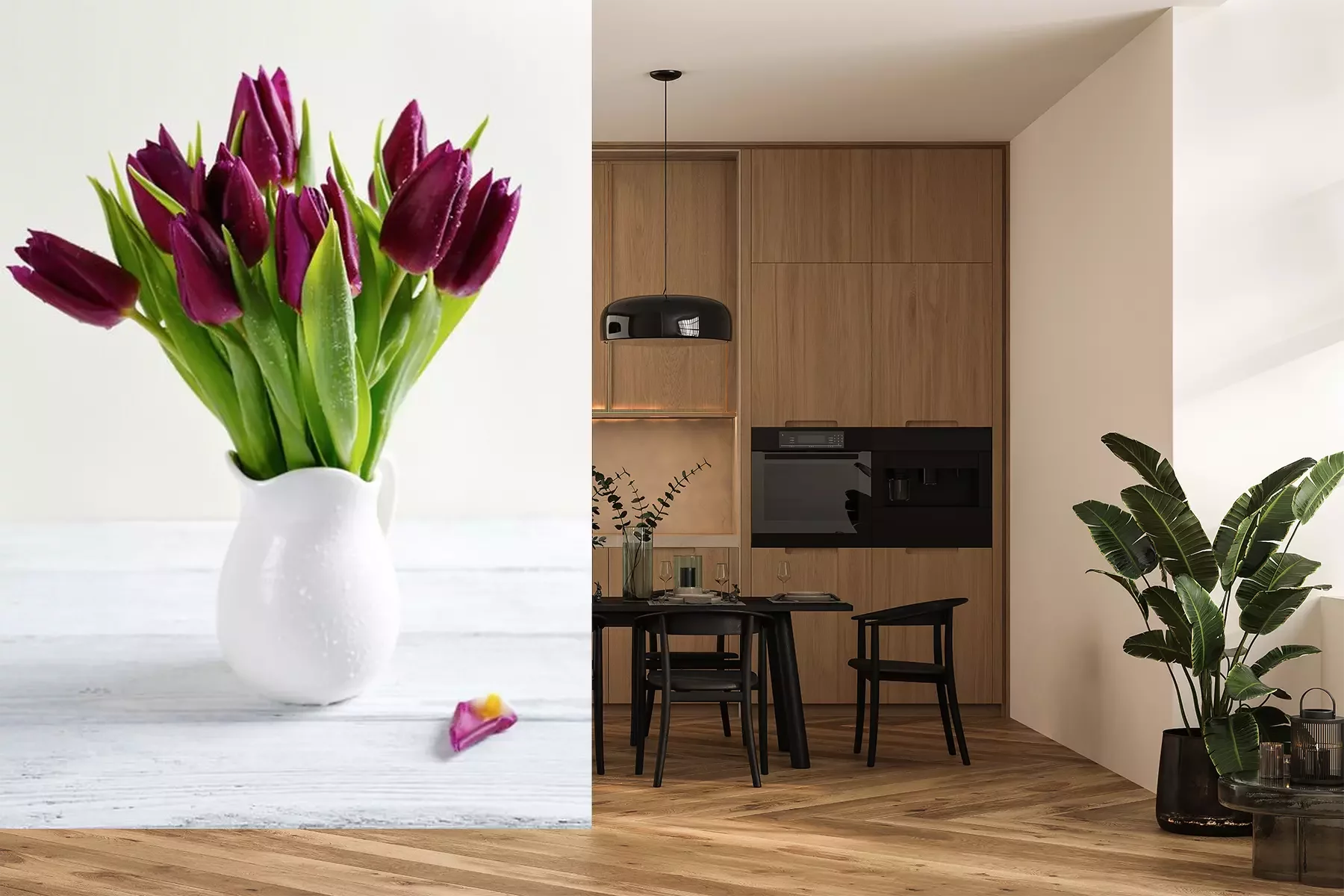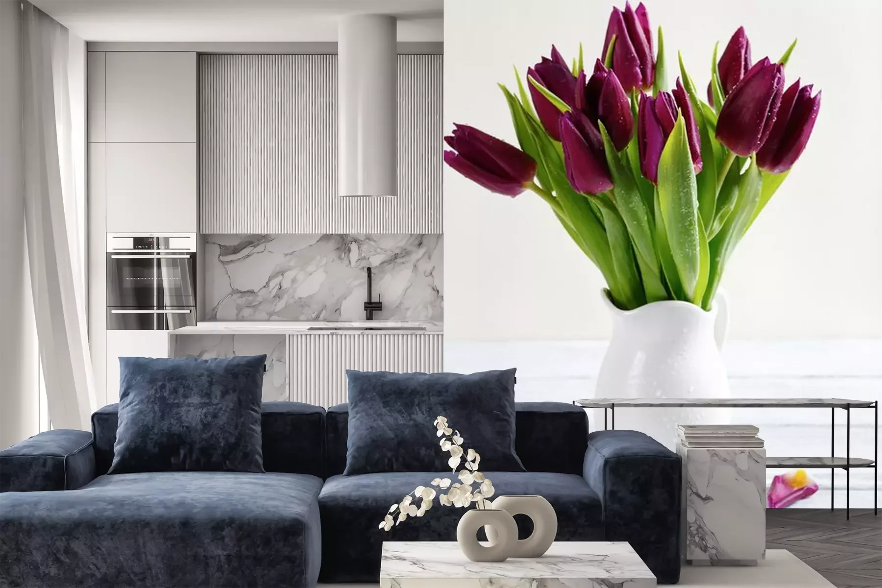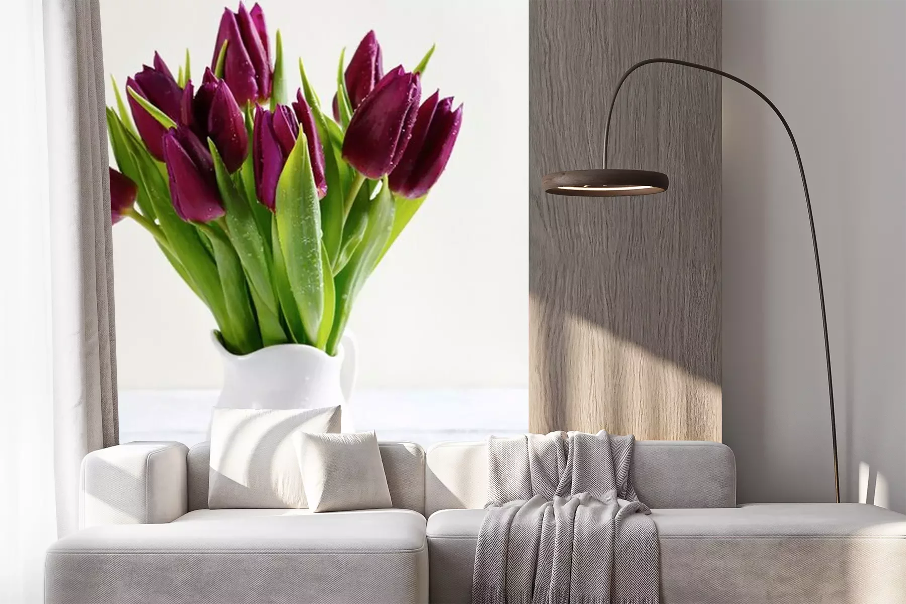 Tulpen in een vaas met een lintProbleemloze bezorging verzorgd door vertrouwde vervoerders