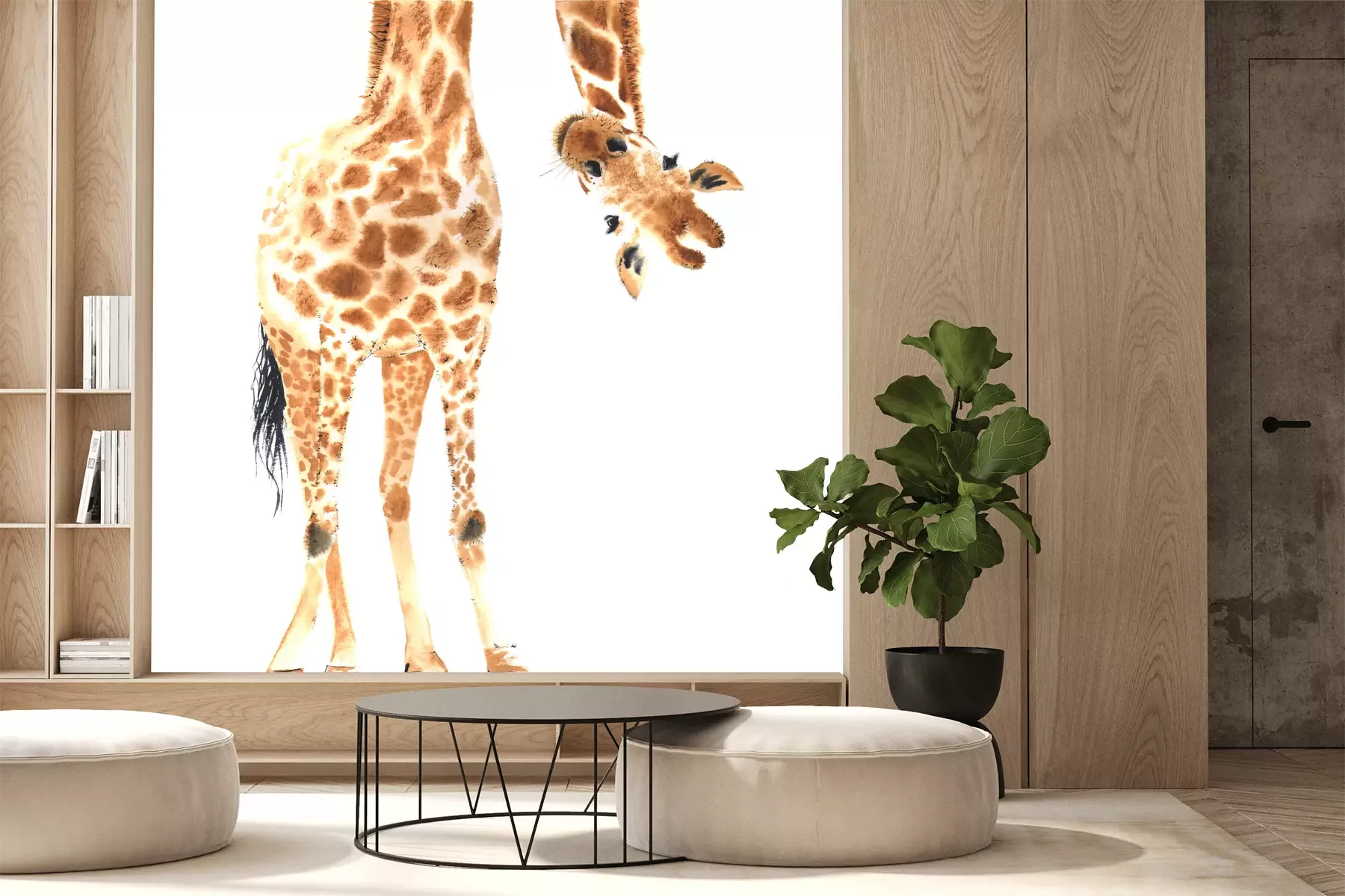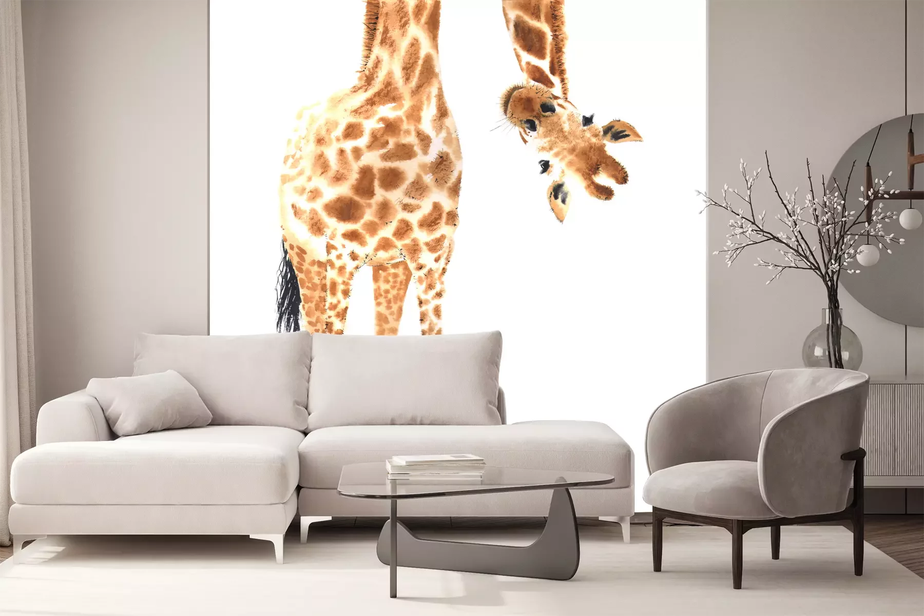 Sticker Een afbeelding van een giraffe op een witte achtergrond in aquarel-stijl.