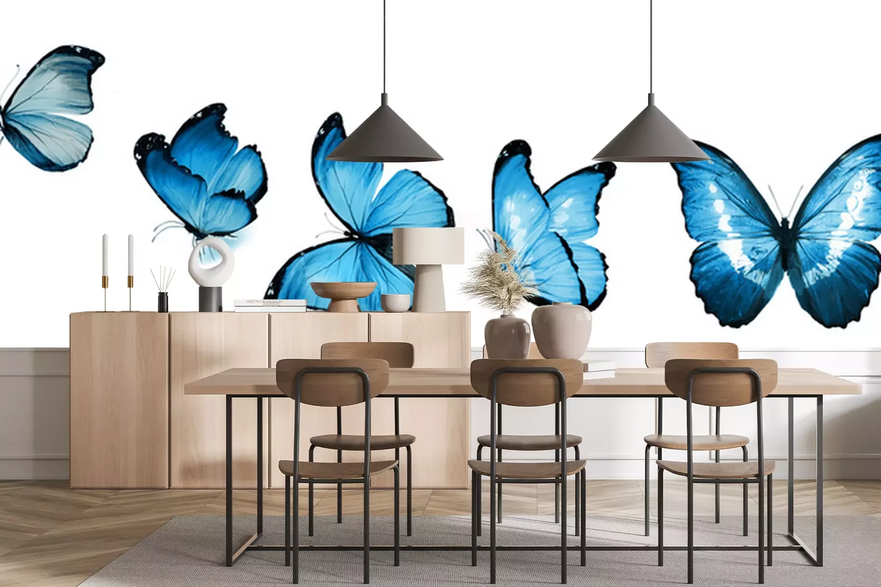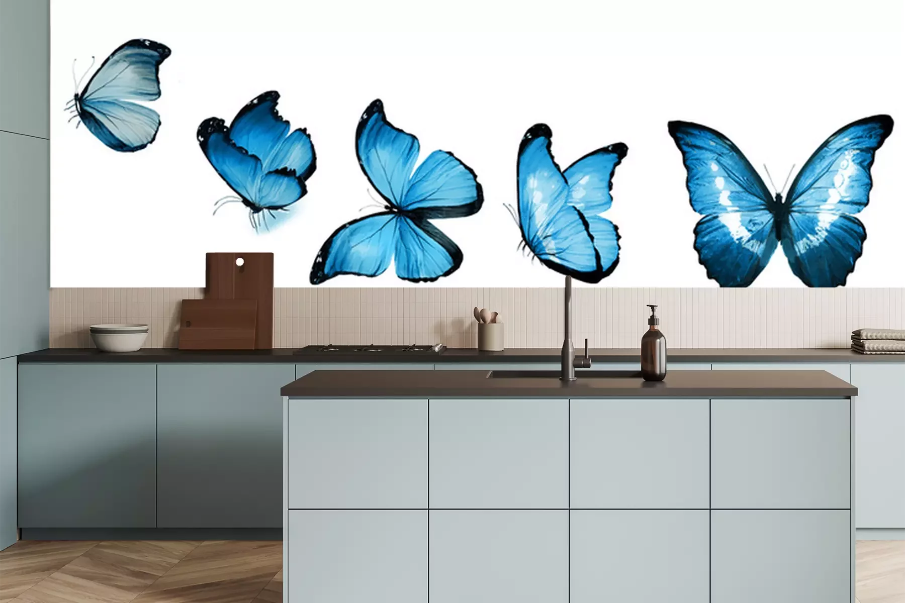 Sticker Een blauwe vlinder gevangen in verschillende posities