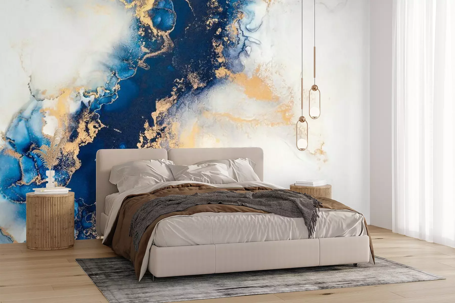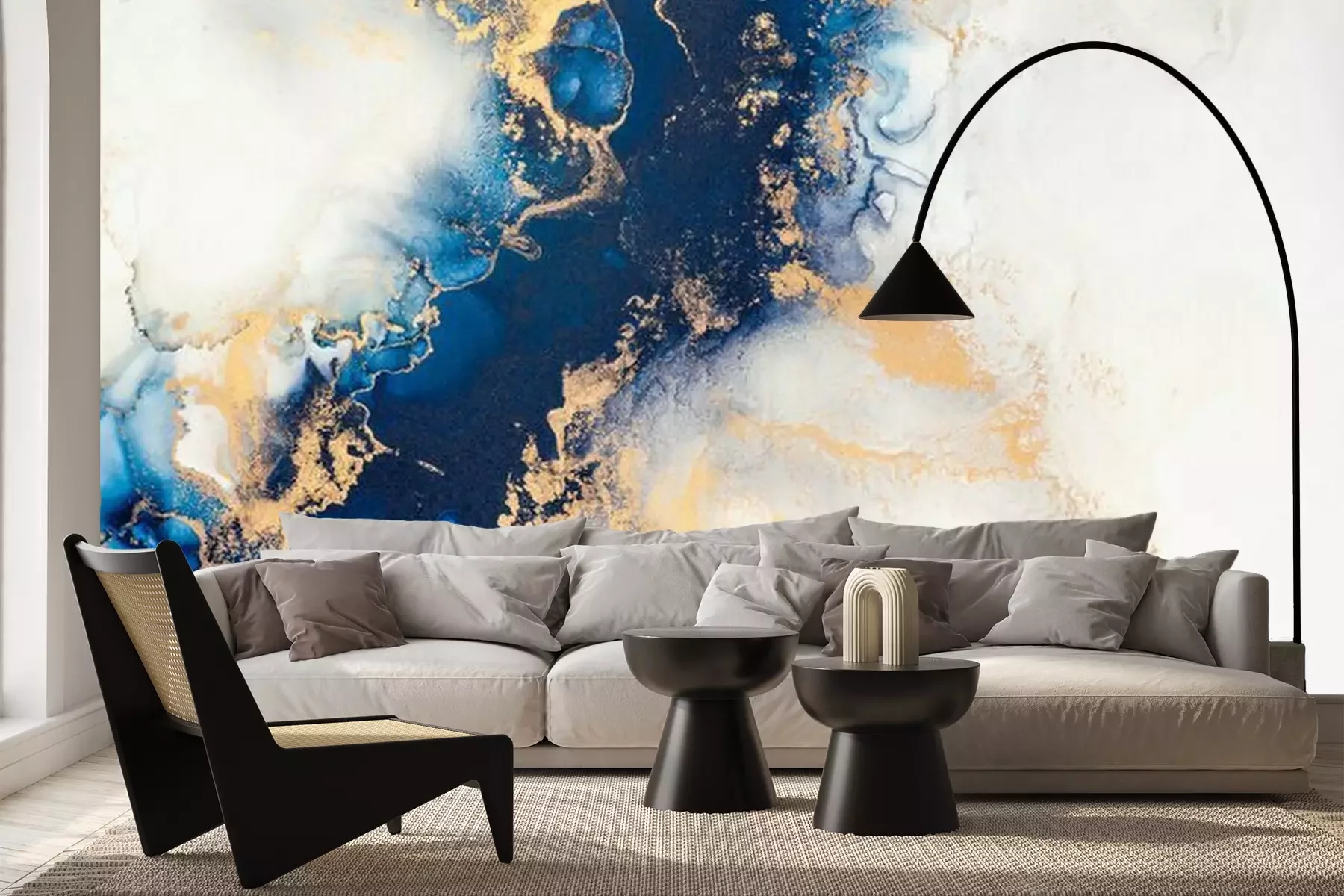 Aquarelmarmer met zwarte en gouden kleurFotobehang