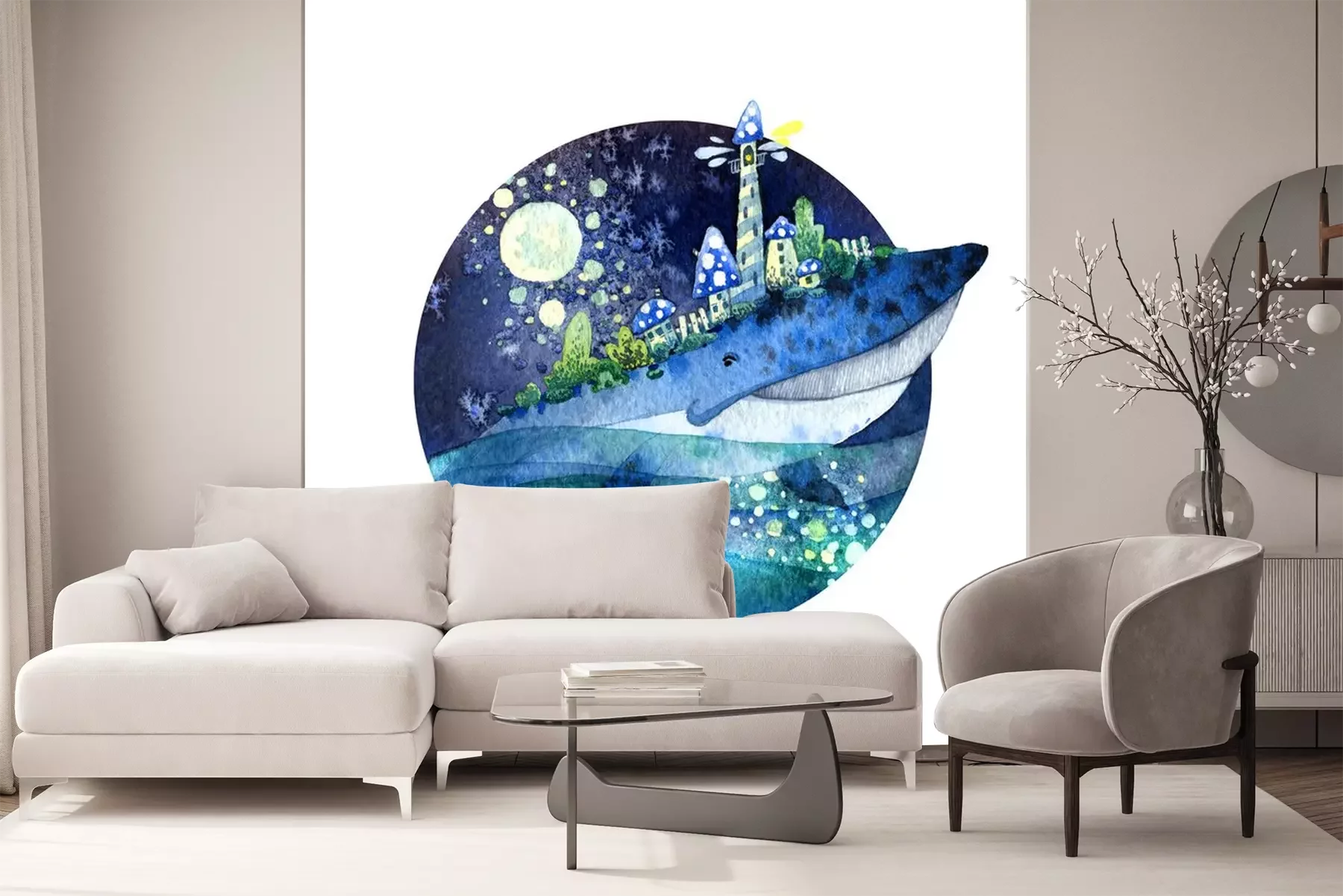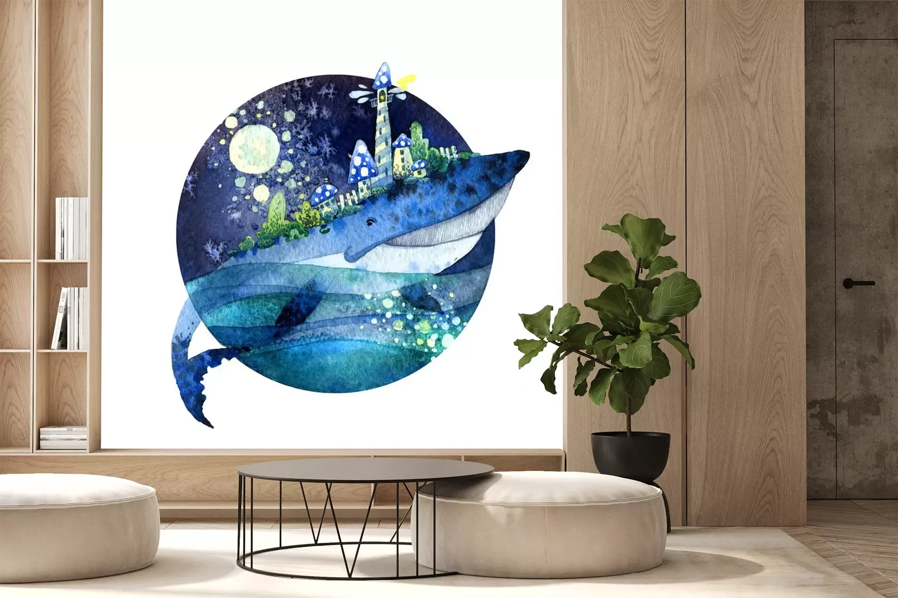 Sticker Een walvis die een stad op zijn rug draagt