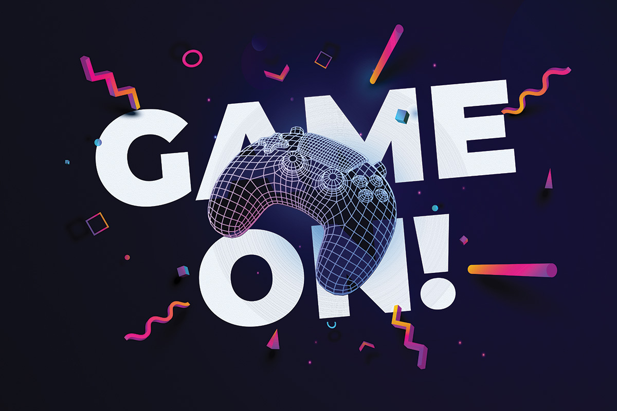 Gamecontroller en de tekst game on