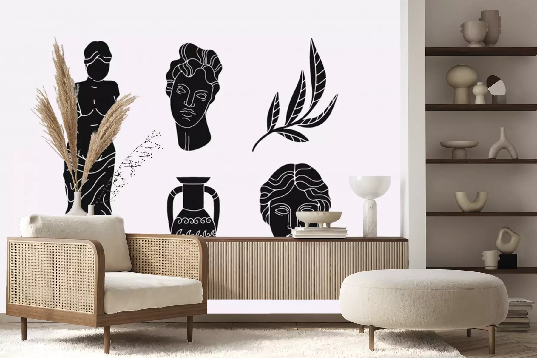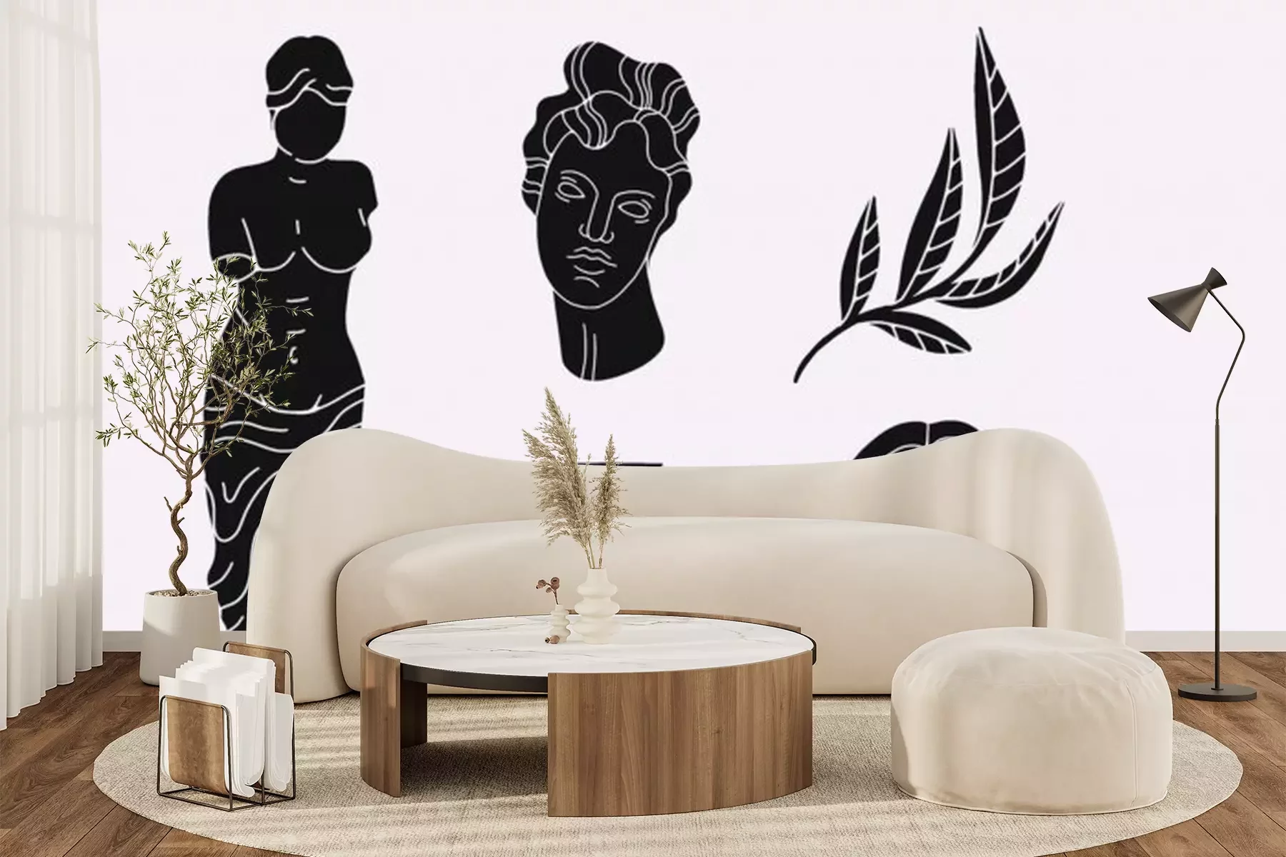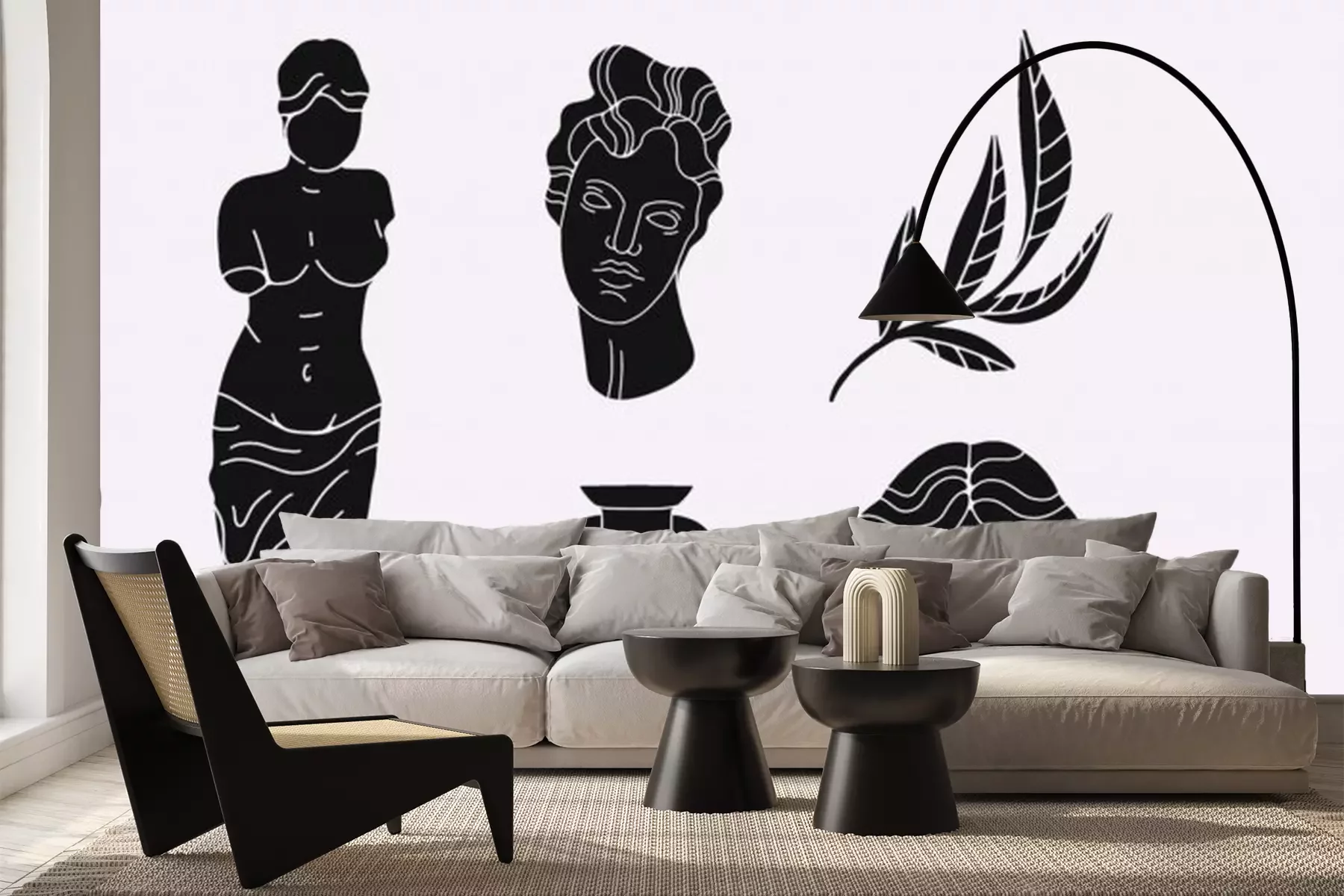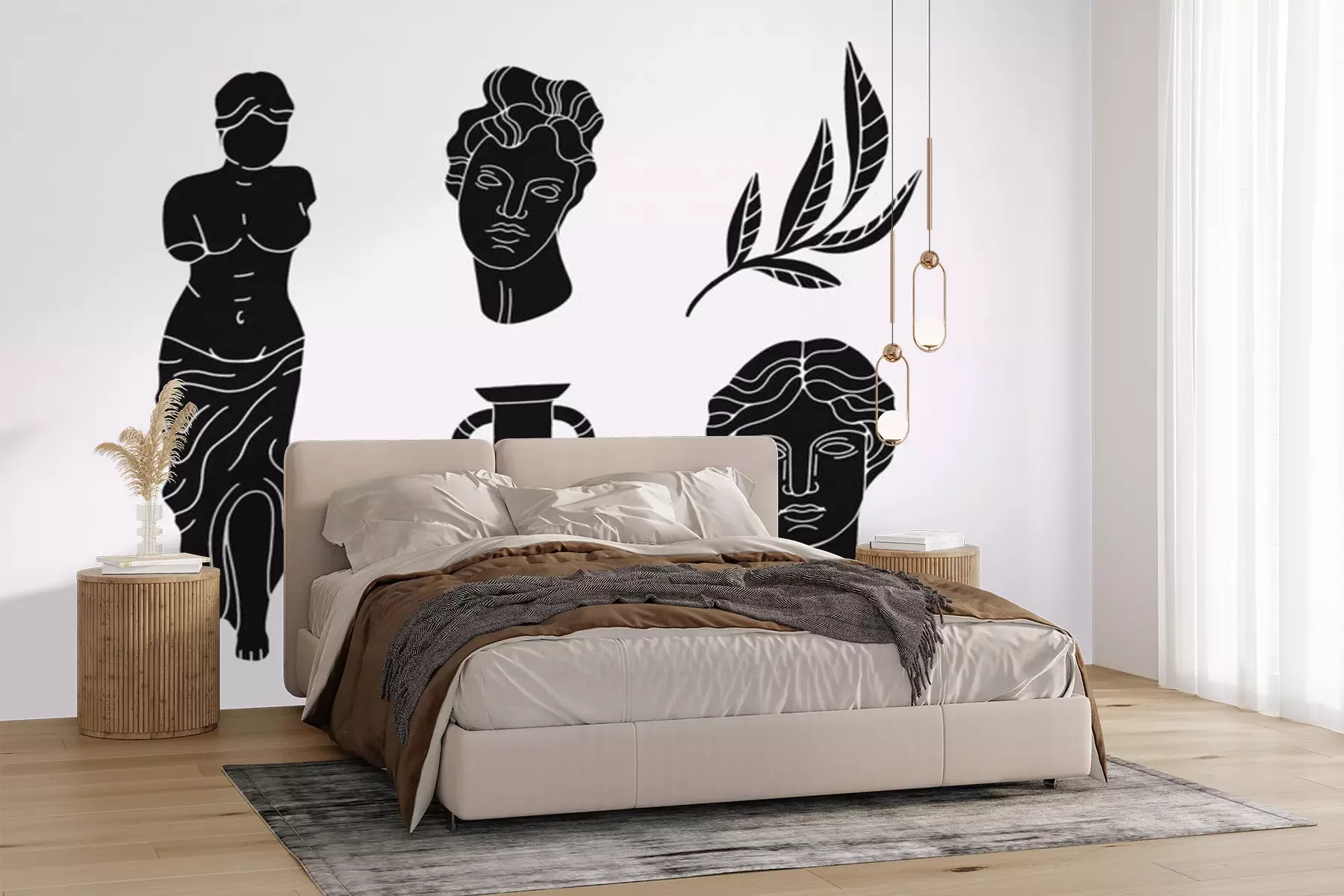Sticker Greek marble statues aesthetic vector hand drawn illustration set. sculptures of human body and architectural elements. greek gods and mythology, ancient greece graphic design elements.