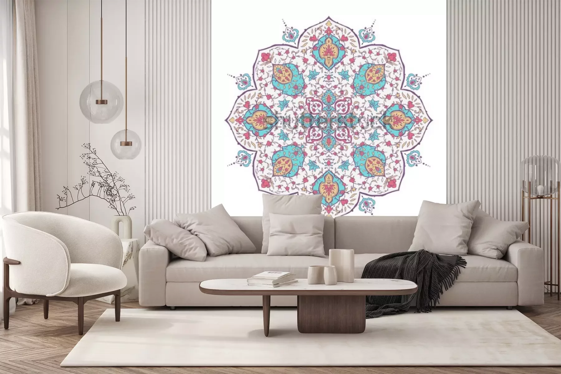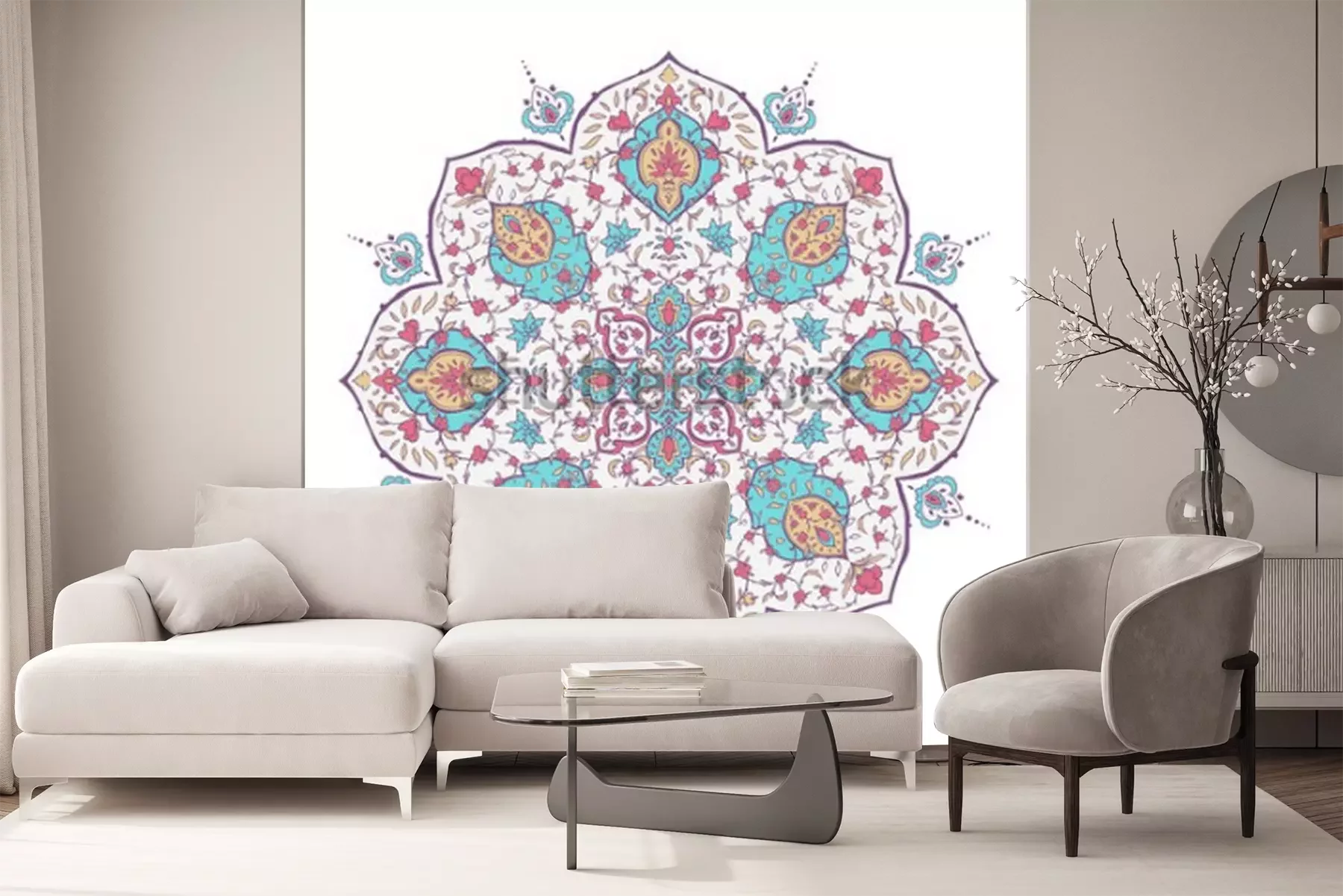 Sticker Islamitisch bloemenpatroon in Victoriaanse stijl. Decoratief voor kaart voor café, winkel, print, banner, bruiloft uitnodiging, boekomslag, certificaat. Bewaar de datum. India, Arabische Dubai Turkse