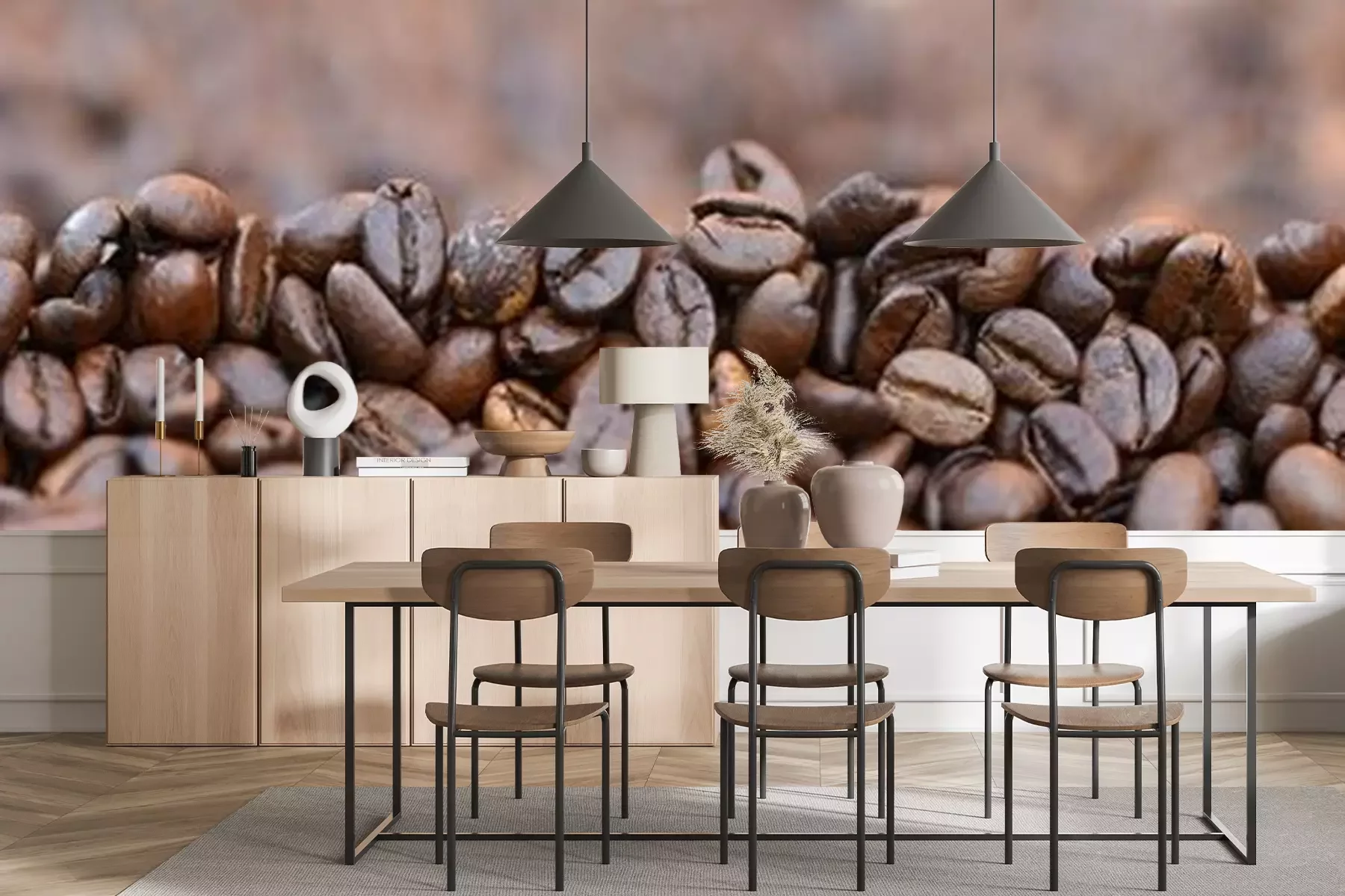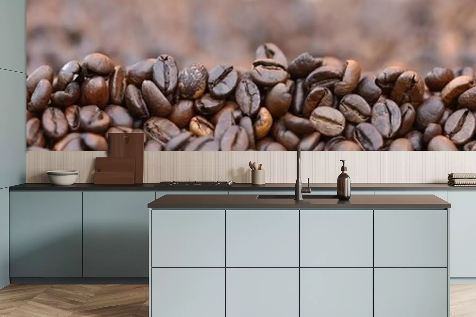Een kopje hete koffie en verspreide bonenProbleemloze bezorging verzorgd door vertrouwde vervoerders