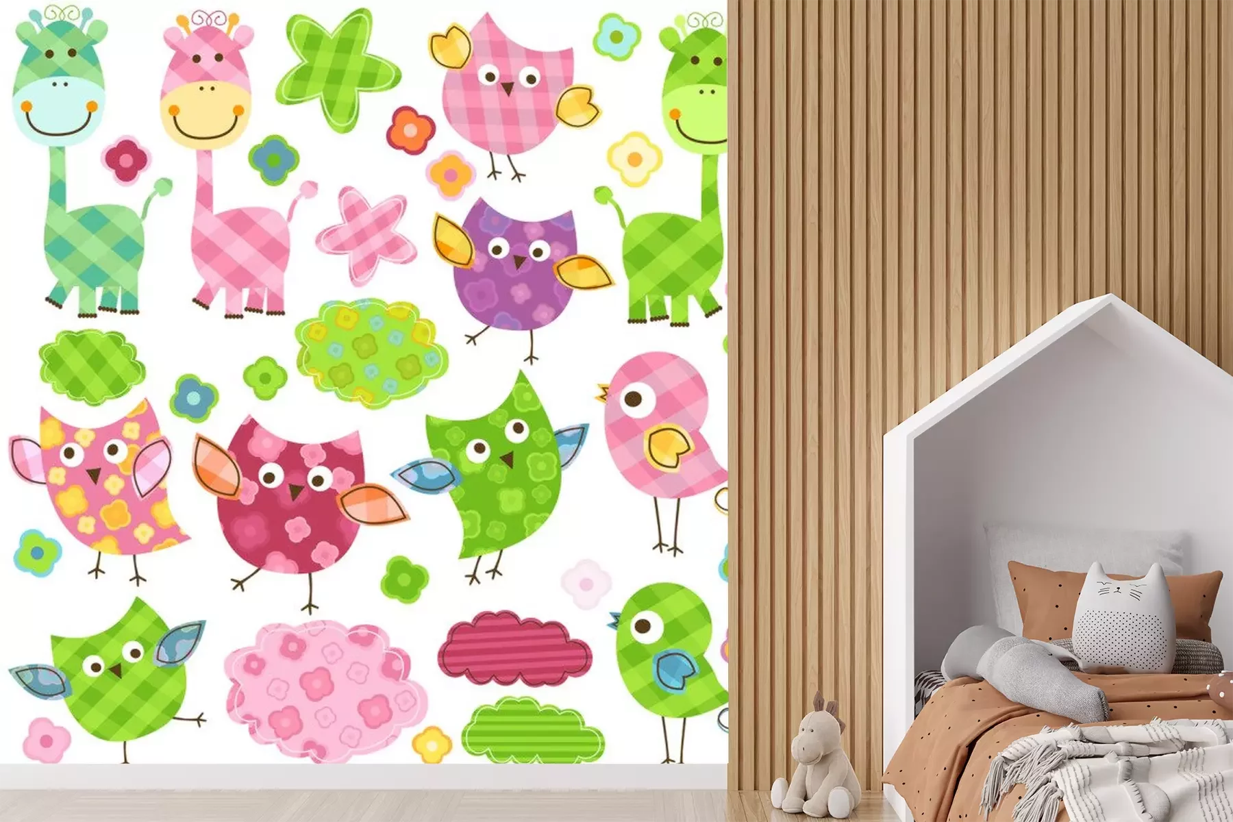Gele geruite giraf onder vogelsProbleemloze bezorging verzorgd door vertrouwde vervoerders