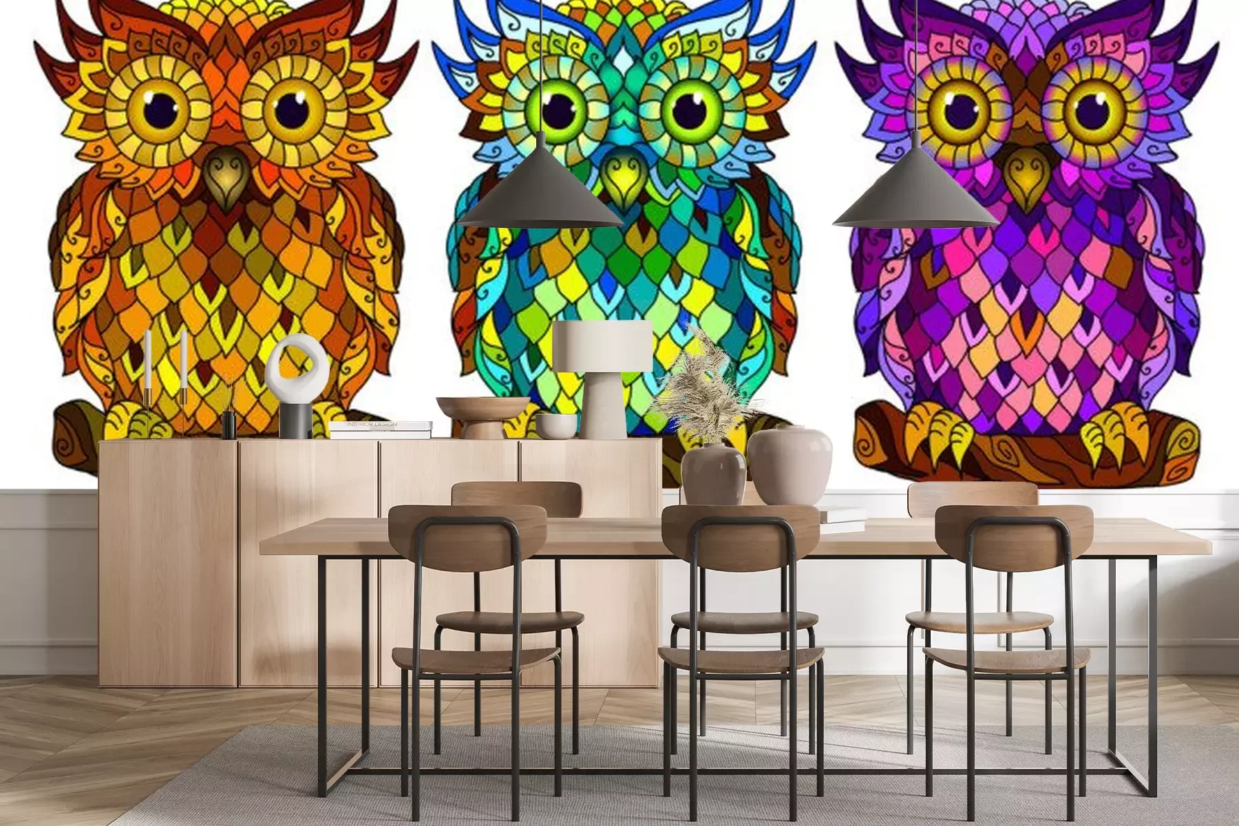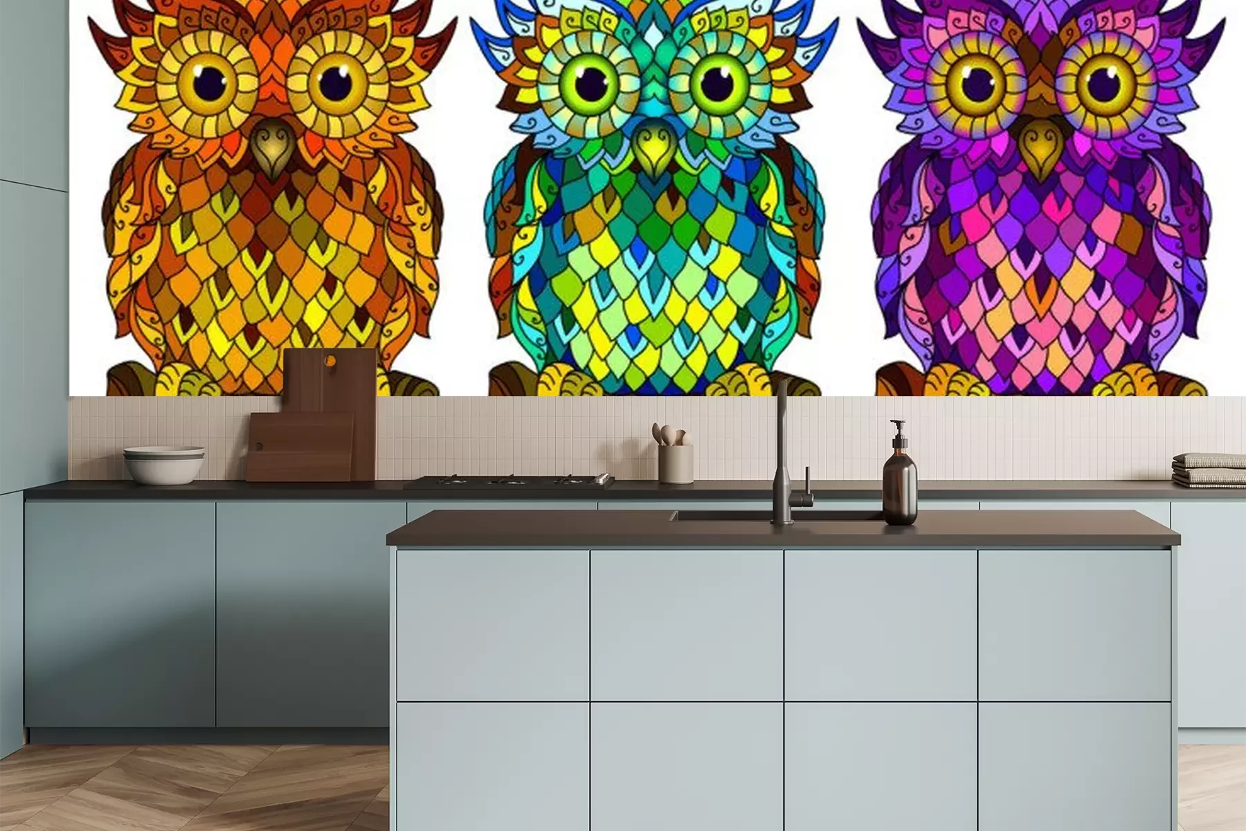 Uilen met kleurrijke verenSticker