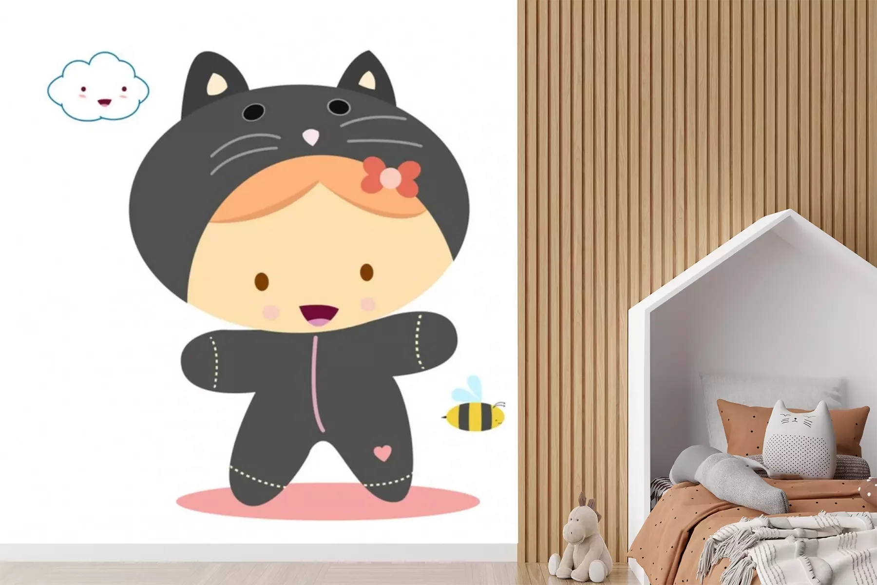 Een klein kind verkleed als bijProbleemloze bezorging verzorgd door vertrouwde vervoerders