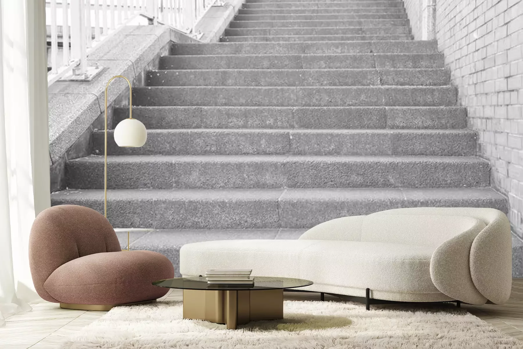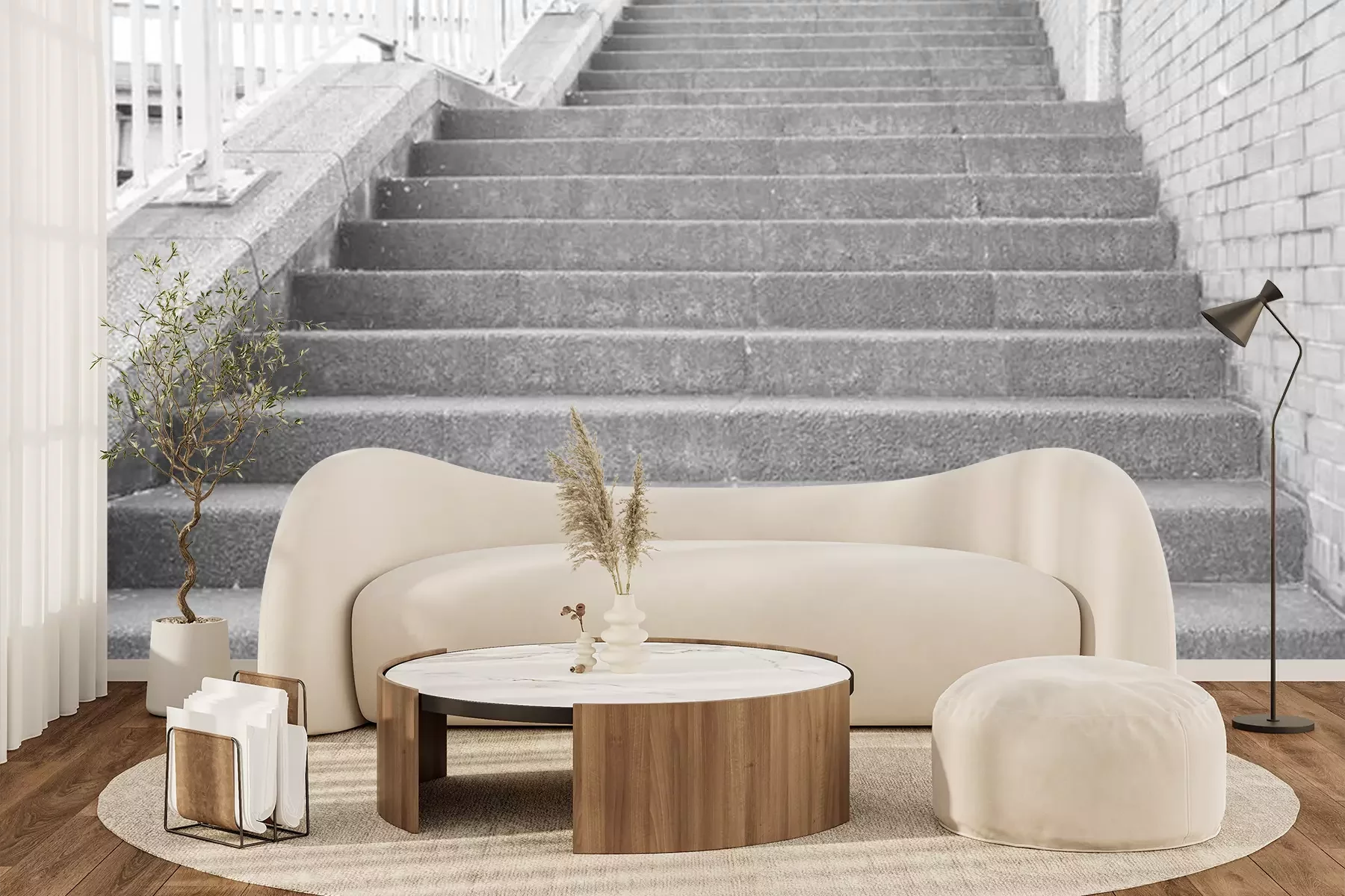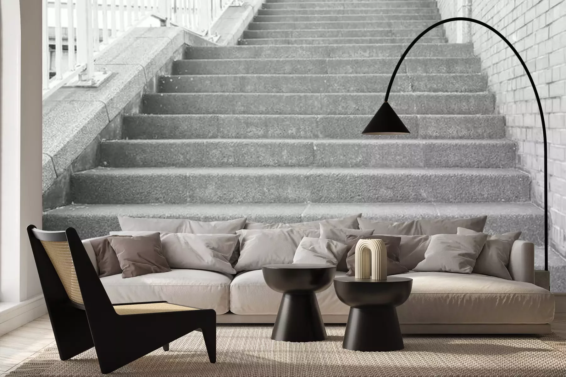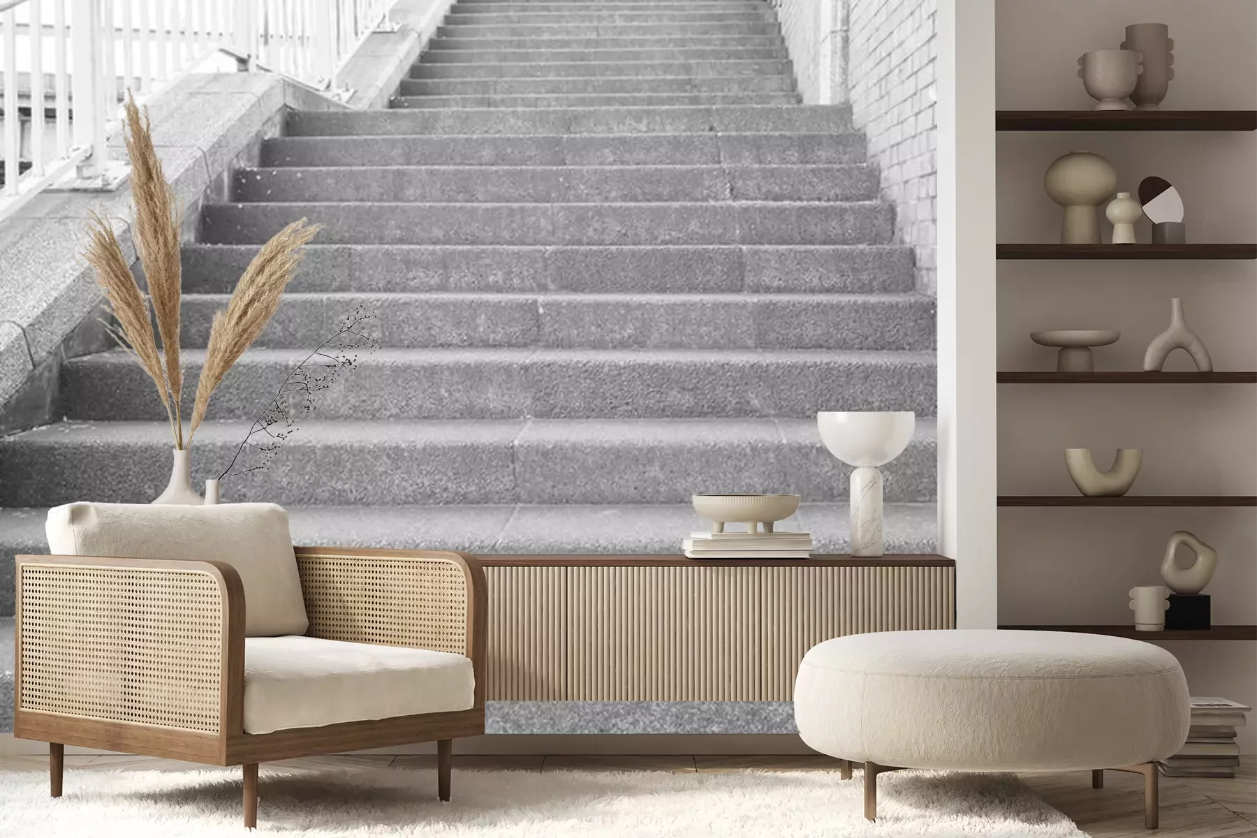 Sticker Lange outdoor betonnen trap in het openbare park ..